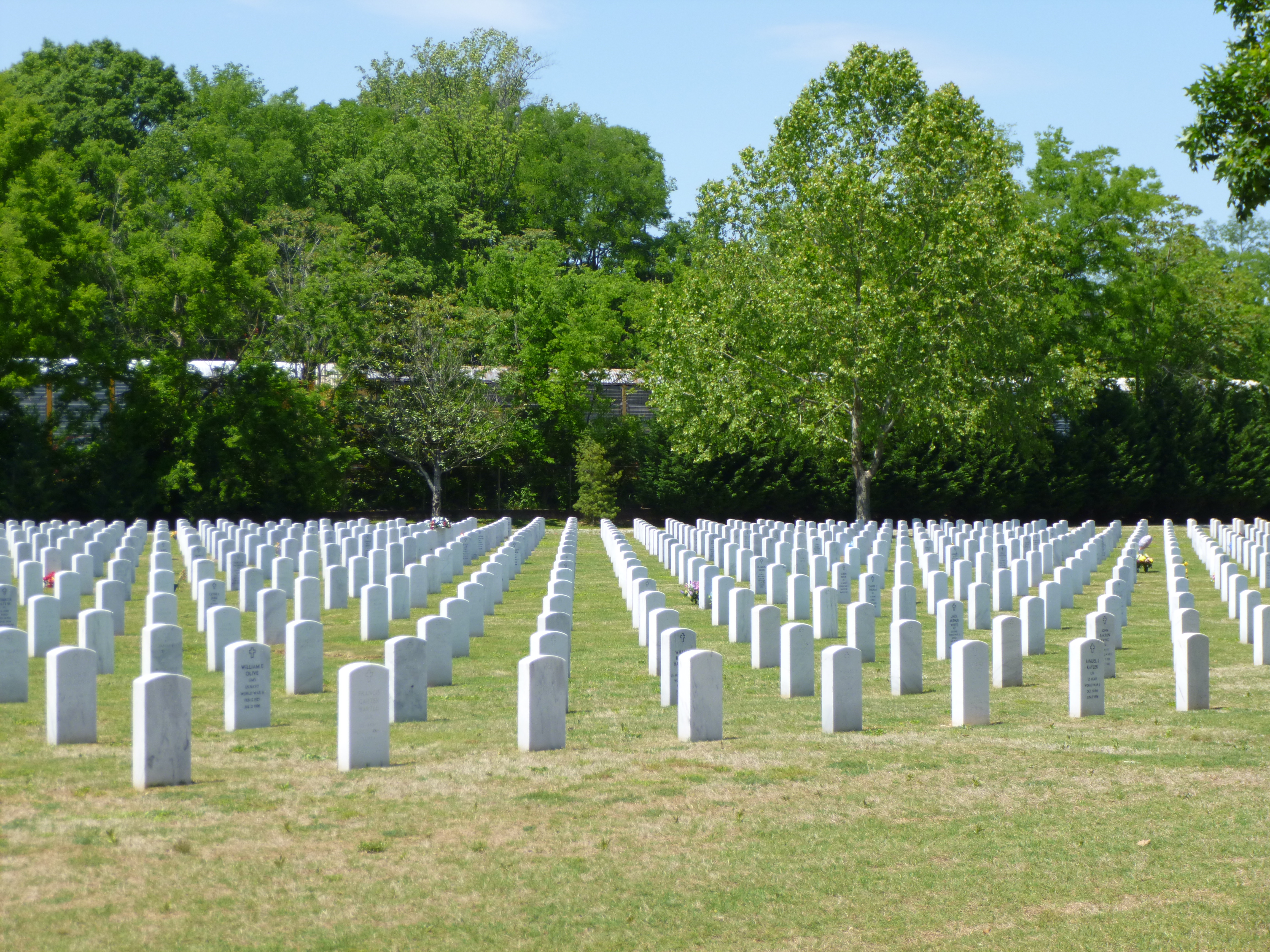 The soup kitchen was only a couple blocks away from the Chattanooga Veteran’s Cemetery, so after I made my donation, I started my Tennessee walking there in the shade of trees. There were lots of workers out – I imagine they’re sprucing the place up for Memorial Day remembrances.