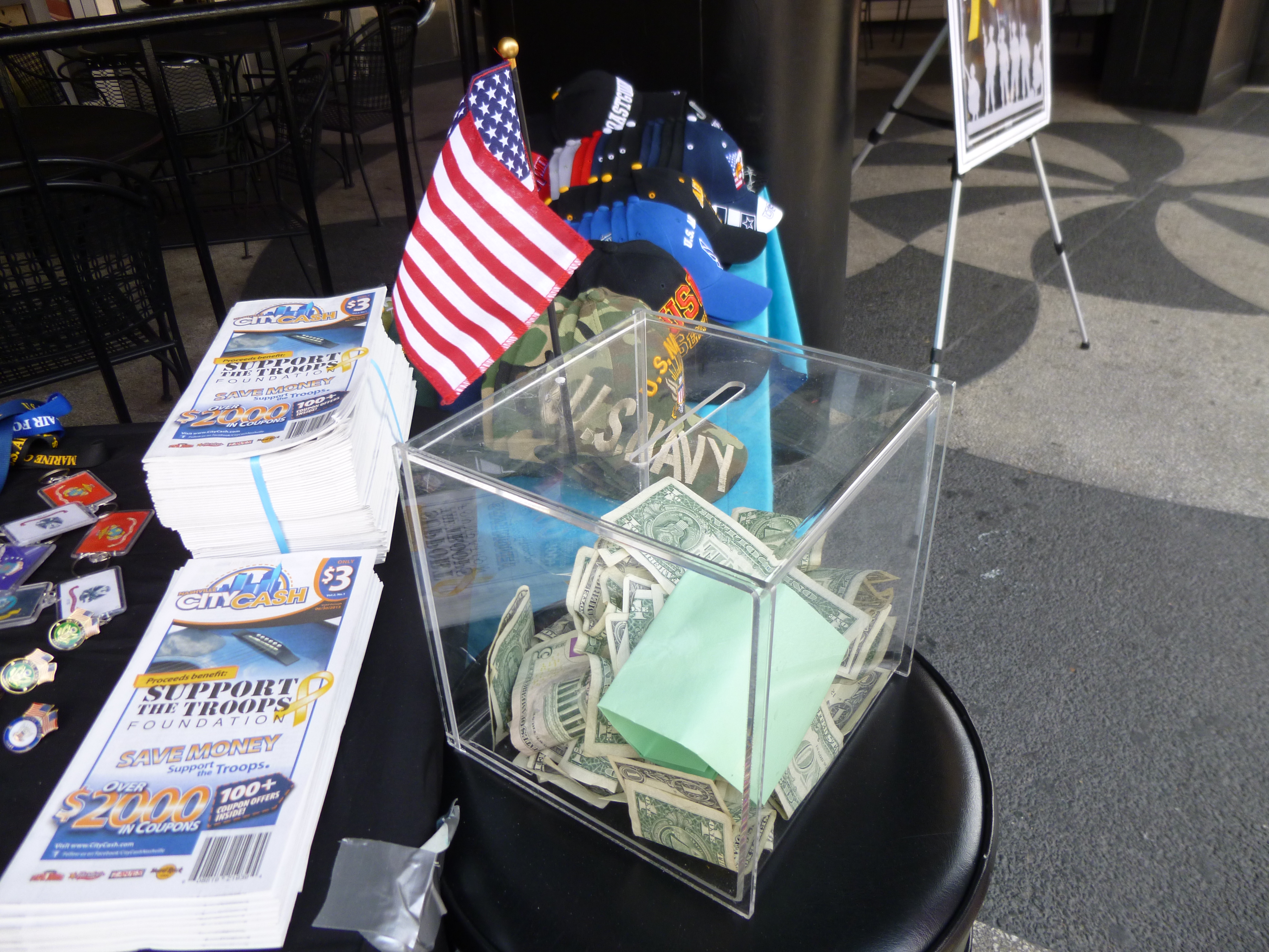 As we were walking back, we passed a big “Support our Troops” display table, with various things for sale to support the troops, and a donation box with quite a few donations already in it. One of the things I had been thinking about doing today was taking care of my military donation at the USO which was at the Nashville airport (nowhere near us). But this was a very nice Nashville-based organization, so I made my donation to them instead. It was an unexpected find, and those are always fun to run across. And then, there was another new donation opportunity which I had never seen before. Linda had pointed out several old parking meters which were painted blue and set off the street. Those meters were used to collect money for the homeless – an organization called The Key Alliance collects the money and uses it to link homeless people to organizations which can help them. I hadn’t seen anything like the before, and we had to go find a bank so I couple get a roll of quarters – I was going to use the extra $8 from friends’ contributions to put some quarters in those meters!