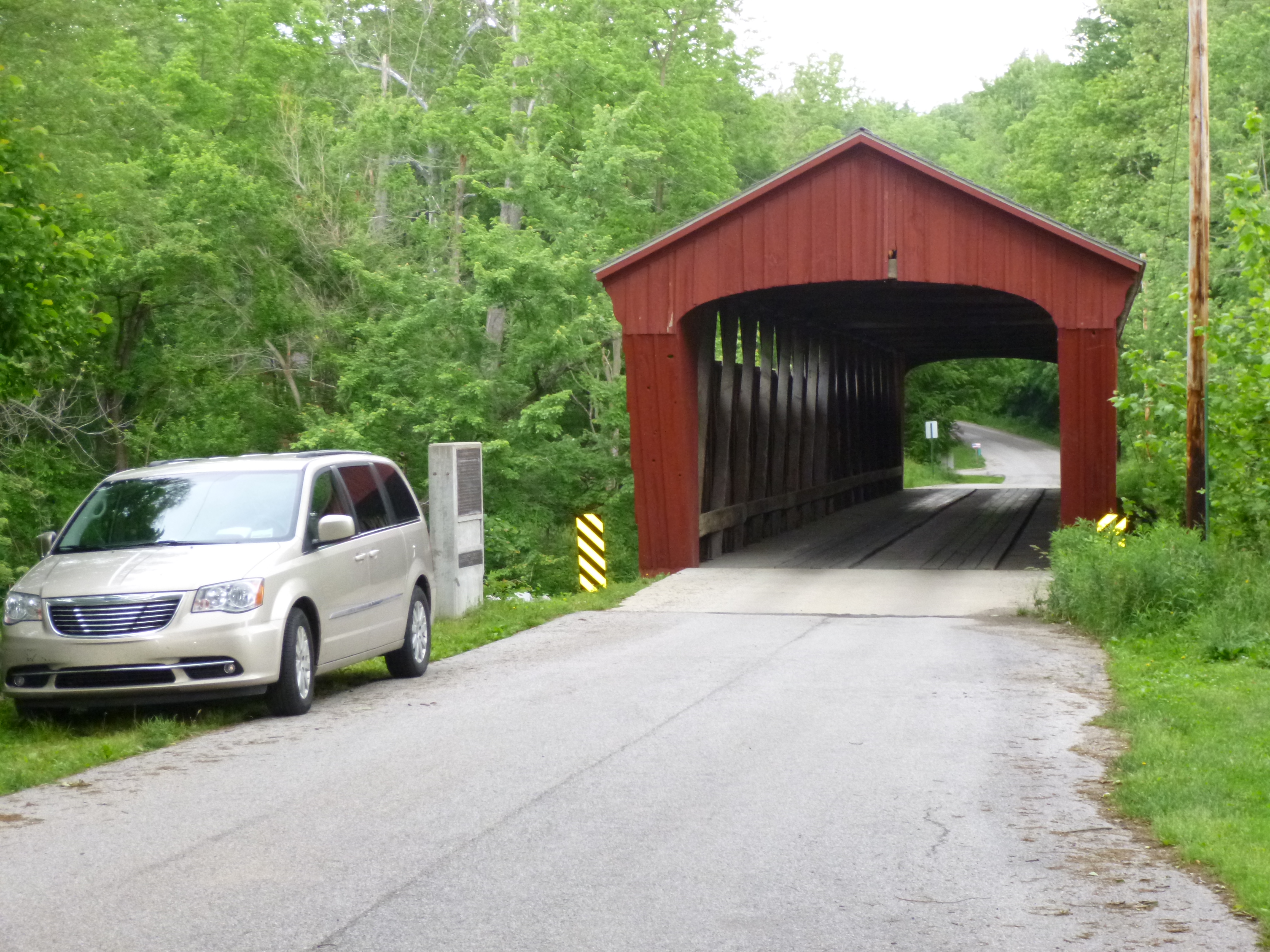 I got kind of a late start today, but at least the weather looked relatively clear. Originally I had thoughts of heading northeast to Amish country, but yesterday I had read something about a canal park in Delphi, which I discovered was a little to my northwest, so that’s the direction I went instead. I took a detour to see one of Indiana’s covered bridges. The drive took a while, but it was really pretty going through the rolling green farmland of central Indiana. I found the Wabash and Erie Canal Park and Interpretive Center and was really happy I came this way. I went into the museum/visitor center, and found out that they offer boat rides on a reproduction of an original canal boat, and I had 5 minutes to get down to the dock to catch the next tour. The canal history was really interesting – the Wabash and Erie Canal was over 400 miles long in its heyday. It was the longest canal in the US, and the second longest canal in the world. It was all dug by hand by Irish and German immigrants, and was about 40 feet wide and 4 feet deep. But just because the canal was only 4 feet deep didn’t mean the digging was only through 4 feet of dirt. The laborers had to dig through stones, rocks, tree roots and snake dens. The water flowing through some of the limestone was acidic, and mosquitoes didn’t like that, so that kept the bugs under control in parts of the canal, and the acidic water was also said to be a good remedy for snakebites. We passed one of the old lime kilns. The water in the canal was pretty high today, and the boat barely made it under the bridge – it cleared the bridge by mere inches, and only because the boat had filled its ballast tanks with water. Our boat was powered by an electric motor, but back in the day teams of mules often pulled the canal boats instead of horses – mules were smarter, stronger and easier to train. A typical work session for a mule was 15 miles, and the mules often knew exactly when they had covered those 15 miles. The big companies who frequently shipped freight by canal built mule barns every 15 miles and they would trade the tired mules for fresh ones, and usually cover 60 miles in a day. They didn’t travel at night. Private canal boats would often have room on their boats for a couple extra mules and rotate them every 15 miles. There were different kinds of canal boats, and the passenger-only ones could be quite luxurious – a comfortable and very reasonable way to travel. The Wabash and Erie Canal is mostly dry now – but a short segment of it has enough water in it for the boats, thanks to the limestone quarry that releases about 3 million gallons a day into it. Trains made the canals obsolete after only 30-40 years of use.