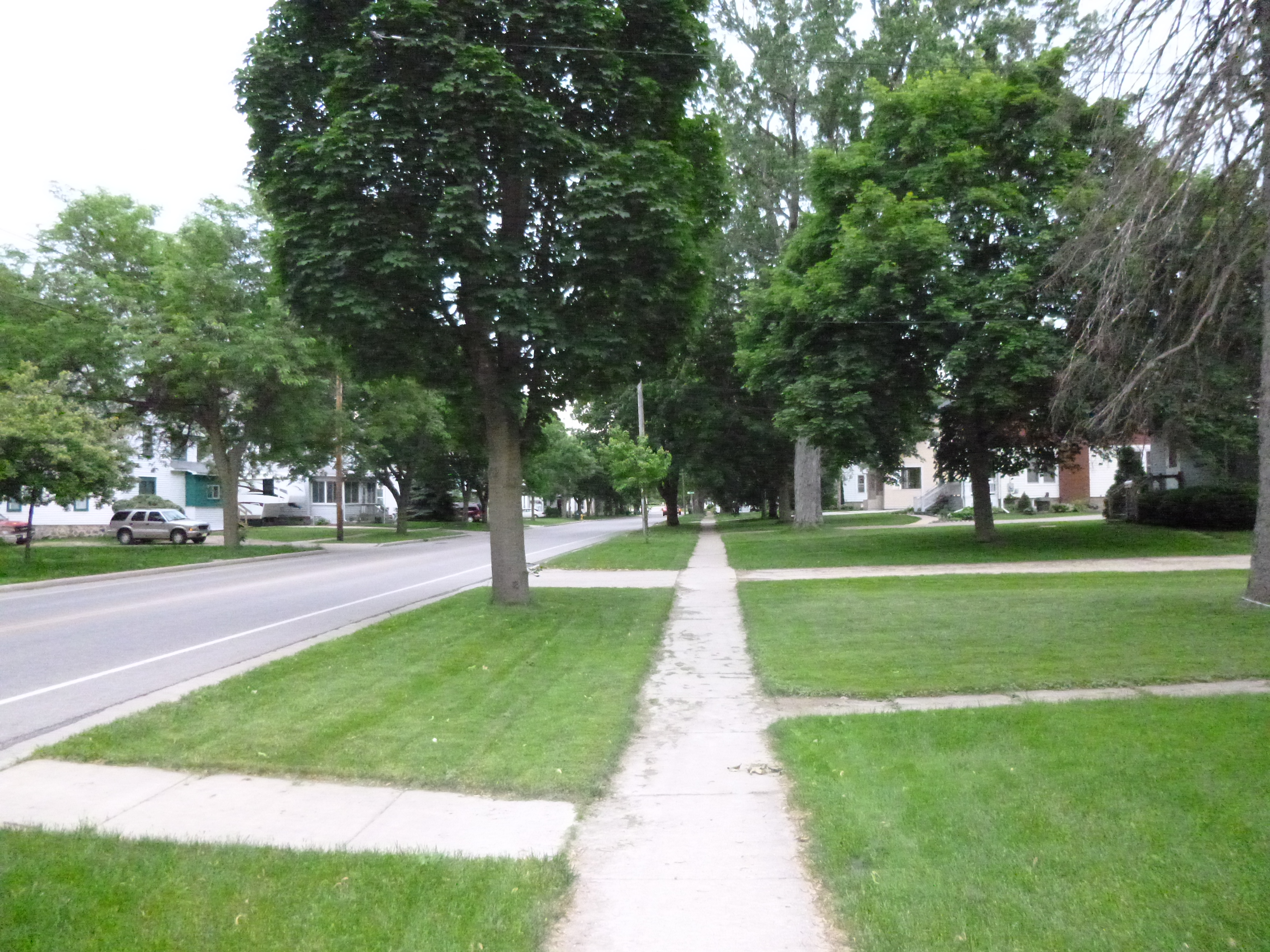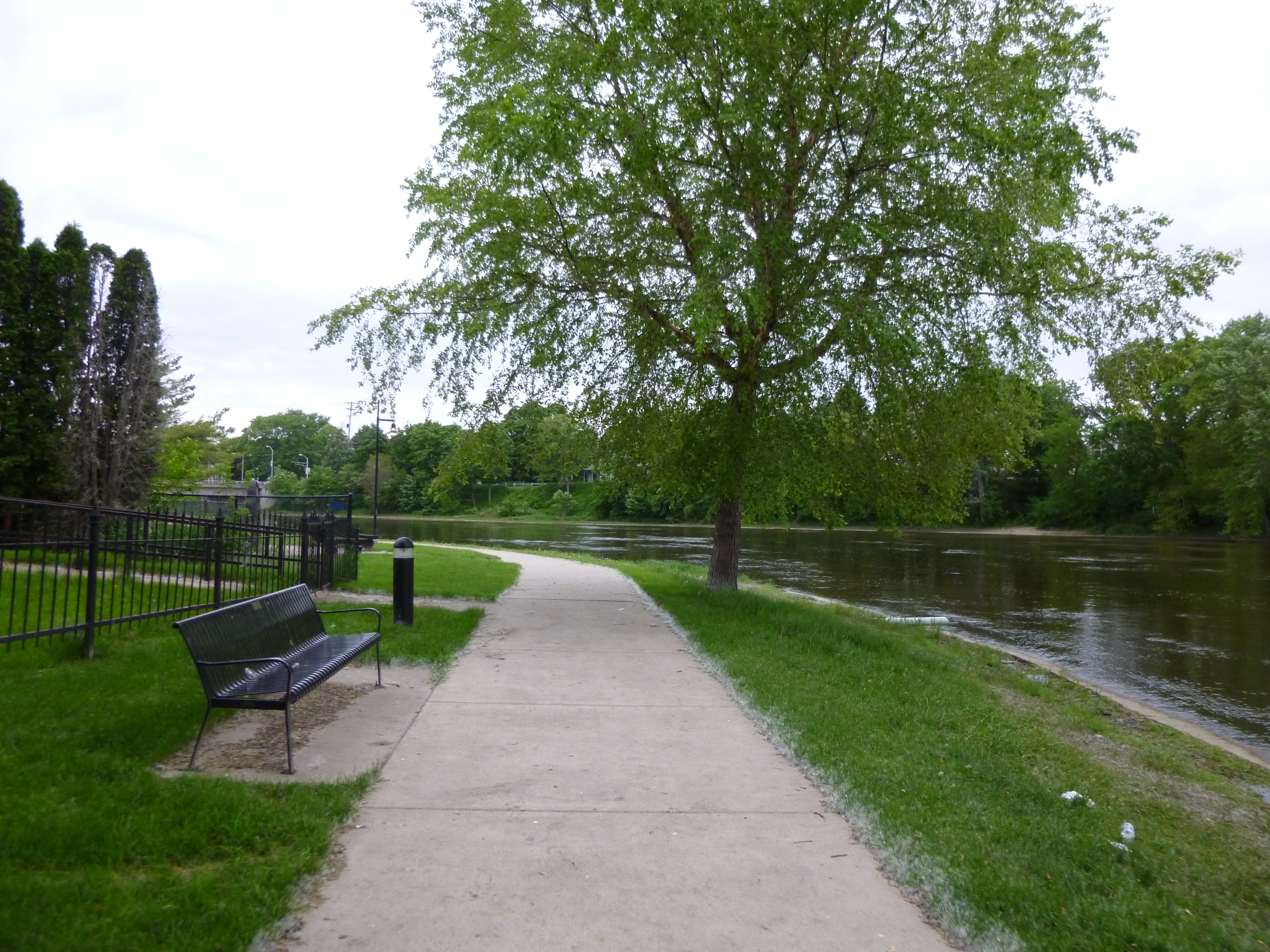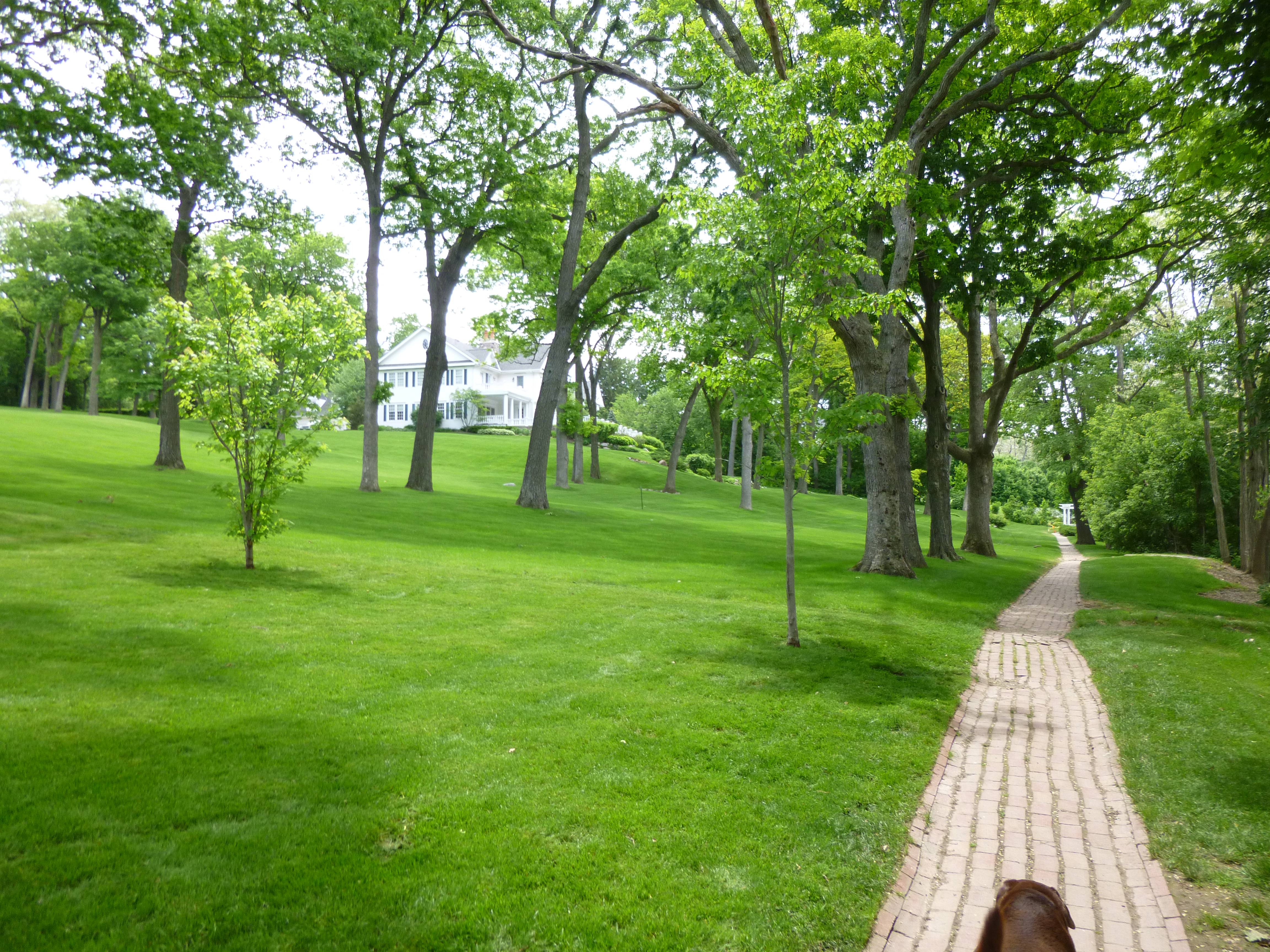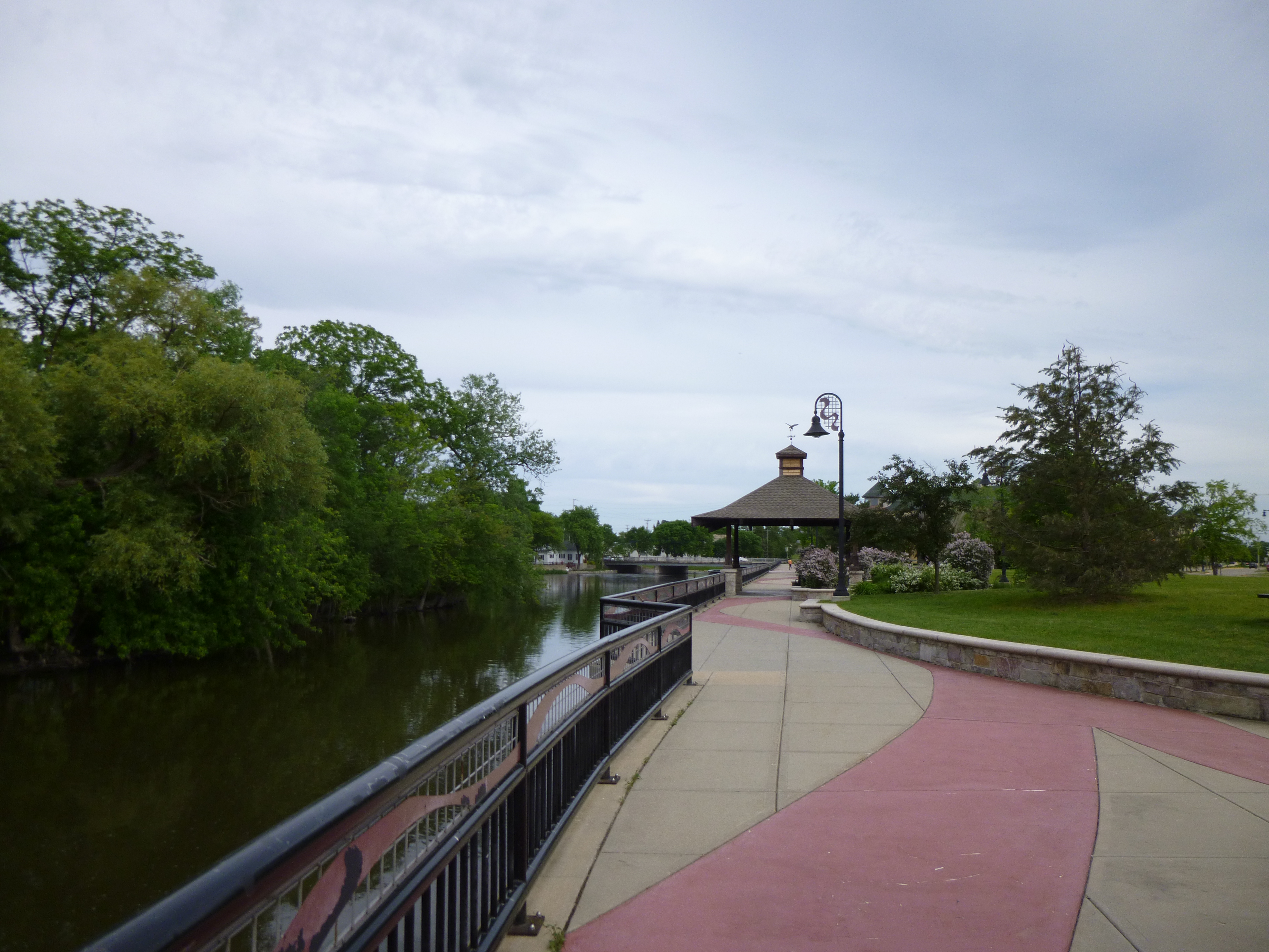 Along the way I stopped in Fort Atkinson so I could walk on the Glacial River Trail, and it was a beautiful evening out for walk. Tula stayed put in the car while I enjoyed a 3 mile walk along the bike trail. As I crossed a bridge back into town there were a lot of firemen and numerous firetrucks down by the river – either filling tanks with water or doing some sort of exercise with the hoses. I wanted to get Tula out for a short walk before driving a bit more, and she was happy out walking in the pretty neighborhood, so we did another mile and a half. So I did a total of 10 1/2 miles of walking for my first day in Wisconsin!