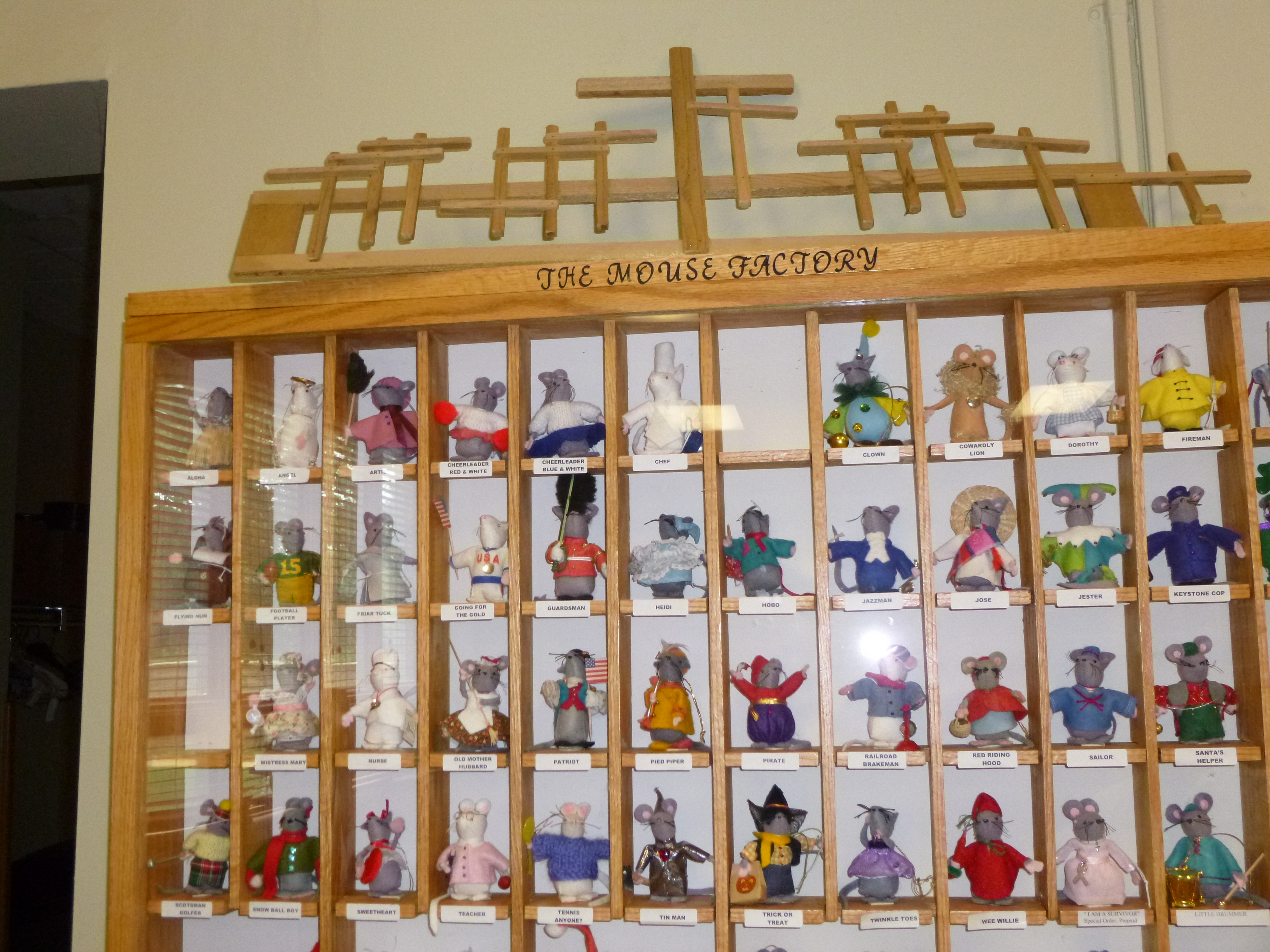 I got in to Fond du Lac late last night, so I didn’t mind a late start this morning, plus I was waiting for my mom to finish an eye doctor appointment so she could join me for the day. We met up at a grocery store to shop for the Food for Thought program which is part of the Fondy Food Pantry; and their motto is “Fighting Hunger, Feeding Hope.” They’ve been helping people for 40 years. Food for Thought is a children’s nutrition program where 475 local students from 4 schools discreetly receive a weekly bag of healthy food and snacks to help provide better nutrition during the weekends. We shopped for peanut butter crackers, microwave popcorn, fruit snacks, pudding cups, granola bars, applesauce and raisins. Then we drove over to St. Paul’s Cathedral, which was where the food pantry was located. We went inside and met Linda, who is on the Board of Directors, and she showed us where to carry in our food. Linda was a wonderful lady who took an hour to show us all around, and she told us about the many different programs that are offered. In addition to the Food for Thought children’s program, they also have a large food pantry, and a weekly meal in the church which is open to anyone who is hungry. They also sell handmade cards to benefit the programs, and have a very unusual “Mouse Factory” program, where the ladies of the church sew intricate costumes for stuffed mice, and they sell a lot of these mice all over the country, and all the proceeds go to the Fondy Food Pantry programs. There are many volunteers to keep the programs running, and they even have children coming in to help other children, so that they can start learning at a young age what it’s like to help out. School groups, junior football players and special ed kids all come in at various times to help sort and pack food, and she says they all enjoy it! Even while we were there, a volunteer was in the process of loading food in her car for deliveries, and she had so many she had to make 2 trips. My mom and I both really enjoyed hearing about everything, and appreciated the time Linda took with us.