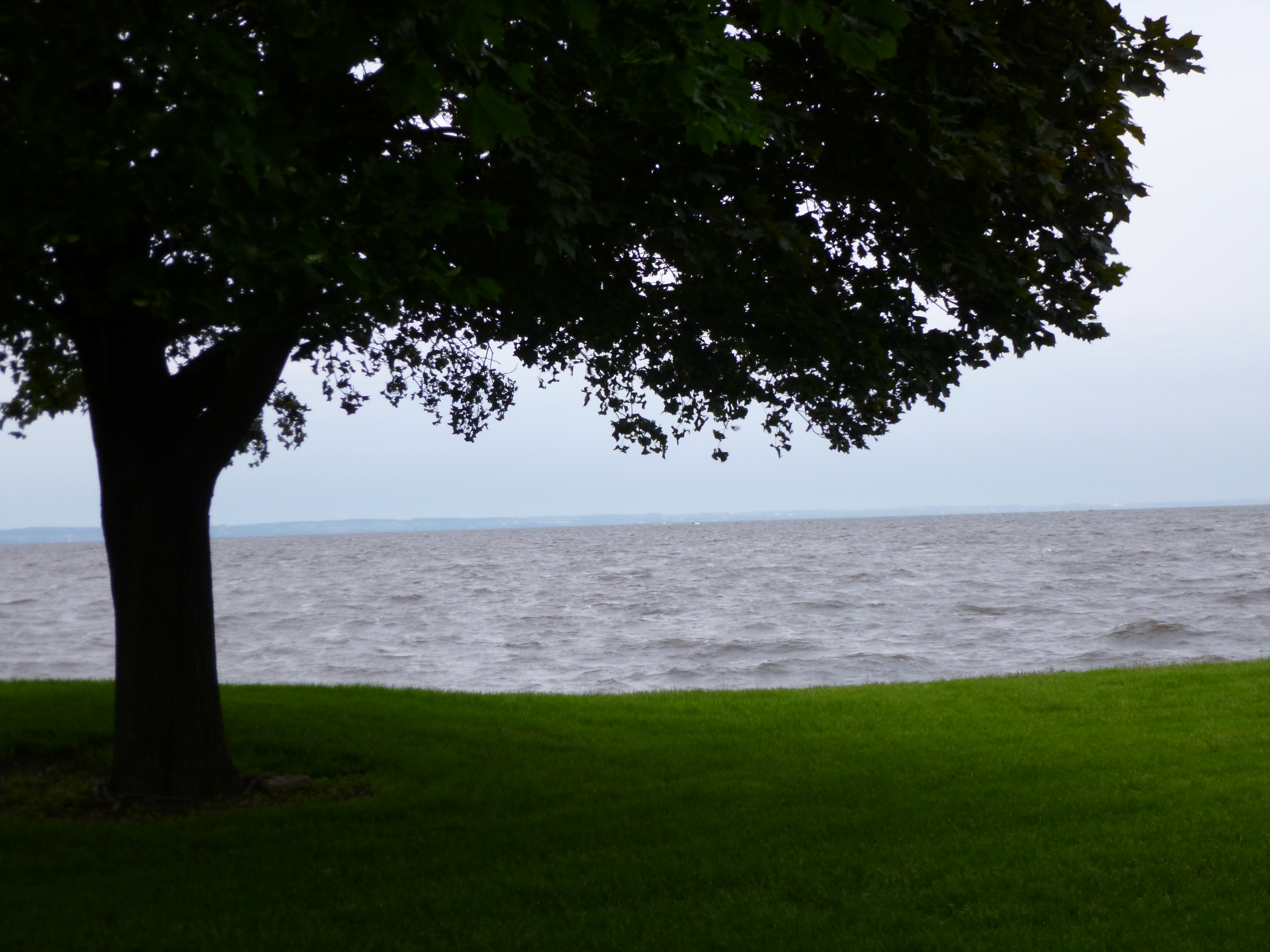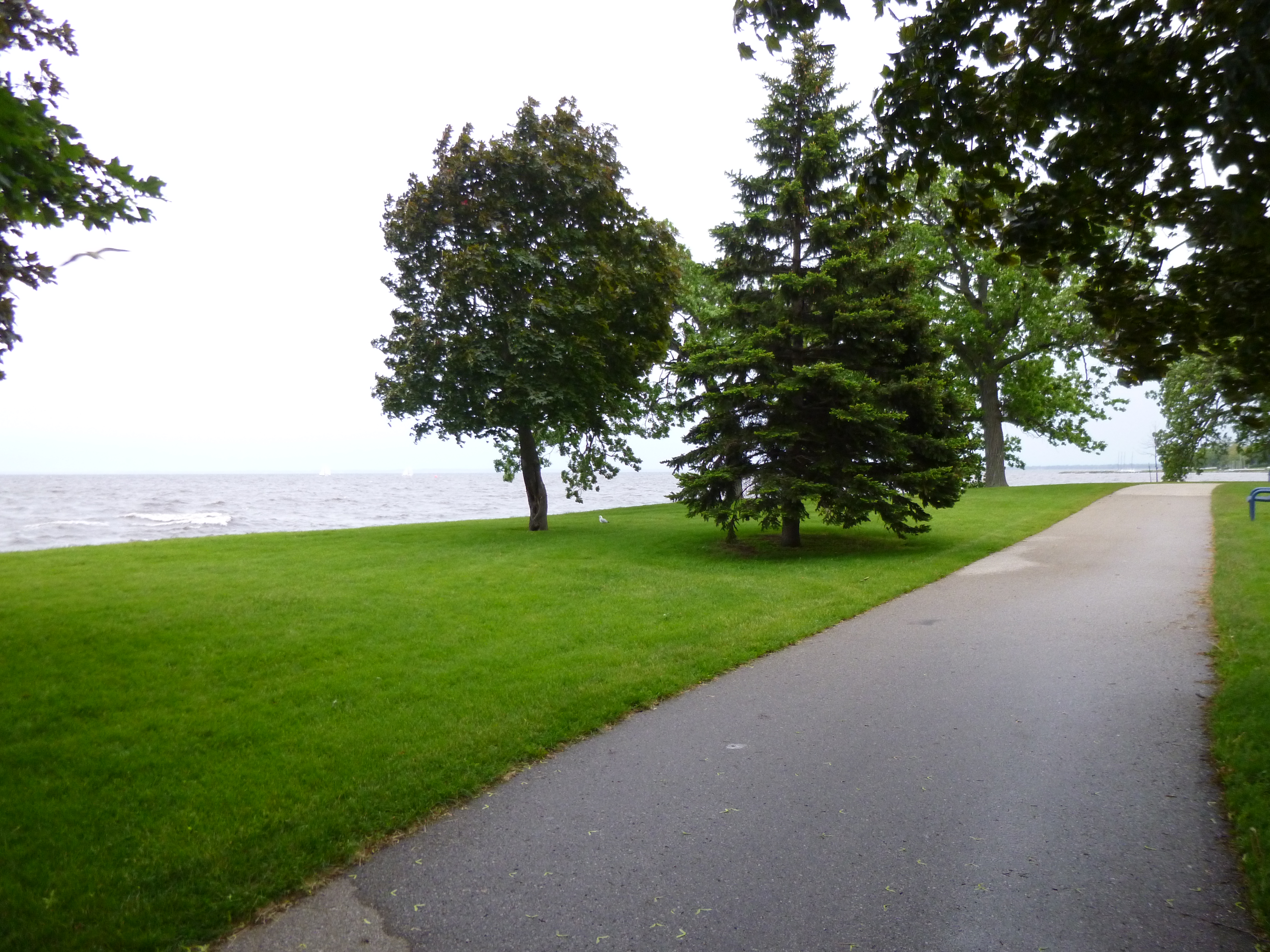 Then we started driving to Waupaca, but we stopped in Oshkosh at a big park by Lake Winnebago so I could finish my other 3 miles of walking. The path went by the lake for a while, then circled around by soccer fields and a little zoo. It still sprinkled off and on, and the wind was pretty gusty by the lake. There were several sailboats out near the shore in the stiff breezes, and it sort of looked like they were in a class or something. Once my walking was done, my mom treated me to a late, yummy perch dinner. We looked at some photos on my computer and called it a day.