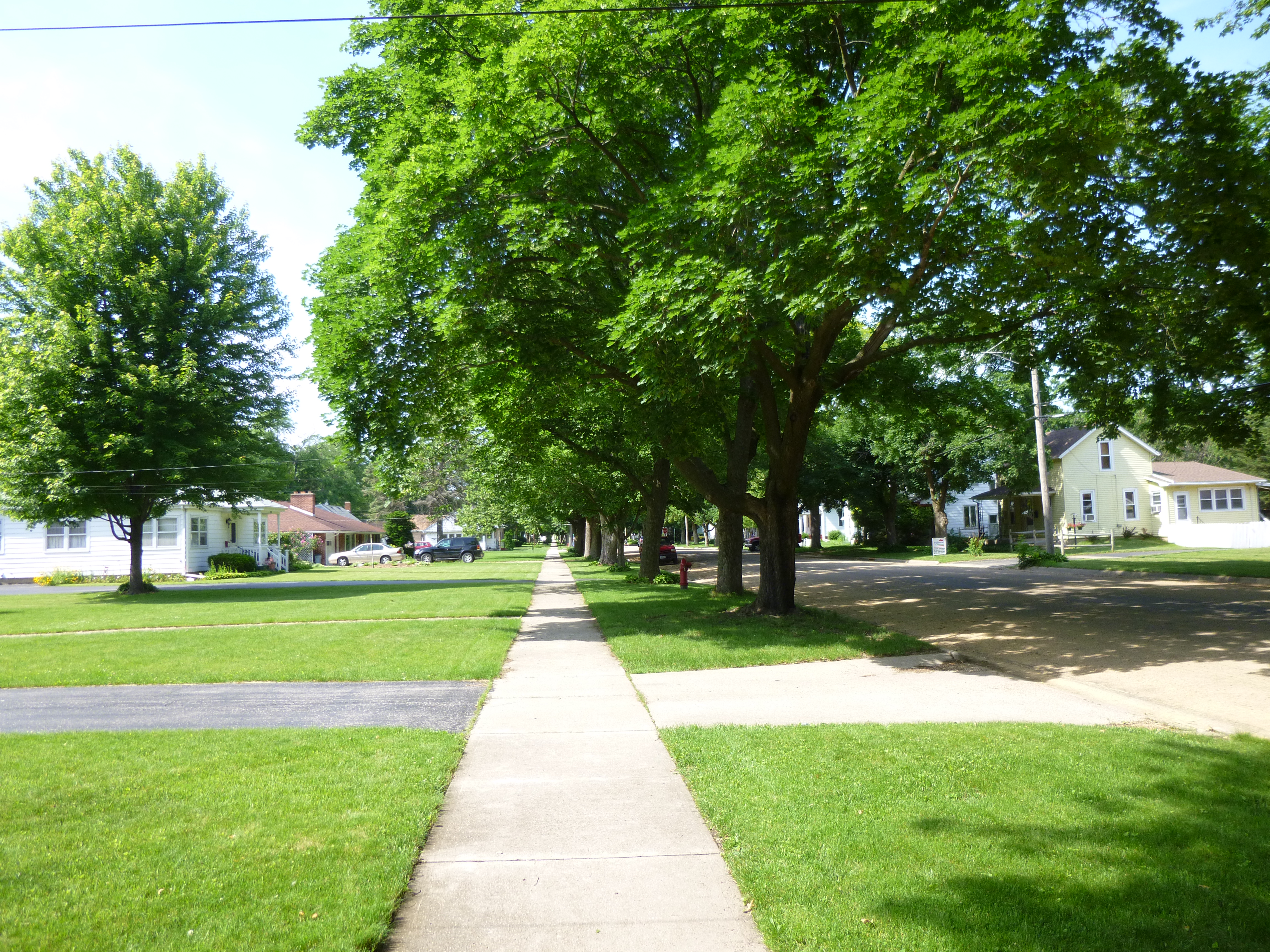 Since I stayed in Rockford, I headed down to the riverfront first, and found a river trail, and got my first 2 1/2 miles of walking done. From there I decided to take the scenic route southwest toward Dixon, and it was absolutely beautiful following the meandering Rock River. After a while I came to the town of Oregon and it looked like a great place for some walking. Tula and I set off along Batwing Boulevard through town and did a mile and a half together, and then she waited in the car while I walked another 3 miles around the wonderful old neighborhoods adjoining town. The neighborhoods seemed to have a timeless feel to them – generations of families being raised in big, white, wooden, 2-story homes with front porches, and they’ve been well taken care of for decades. Kids were out riding bikes on wide streets; pretty trees lined the streets; people were out mowing and gardening; and kids were running around. It could have been the 60s, the ’70s or any other generation. And then an old station wagon turned a corner and I almost wondered if I had time-traveled back to the ’60s! It’s just hard to put into words – all the walking gives me time to soak up a lot of atmosphere, and this was classic small-town America. And I’m really enjoying being back in the midwest in all the summer greenery!