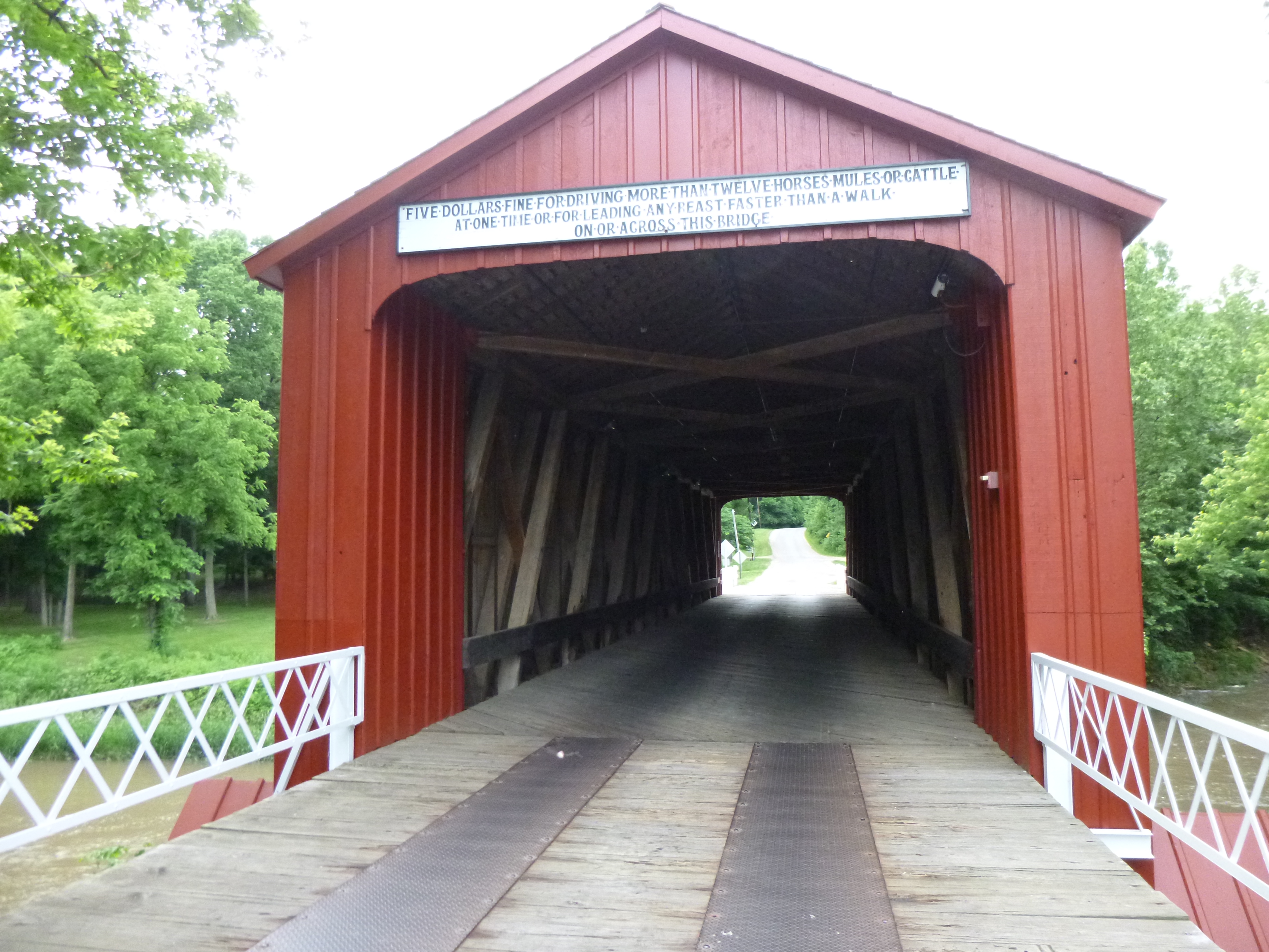 With all my walking done for the day, I was happy to get in the car for a little driving. It was a pretty time of day to drive past the endless cornfields and big farms, and I also passed a wind farm with the big turbines. I took a detour to visit another covered bridge – this one stated there was a $5 fine for driving more than 12 horses, mules or cattle across at one time, or for leading any beast faster than a walk. i wonder how many fines were collected back in the day!