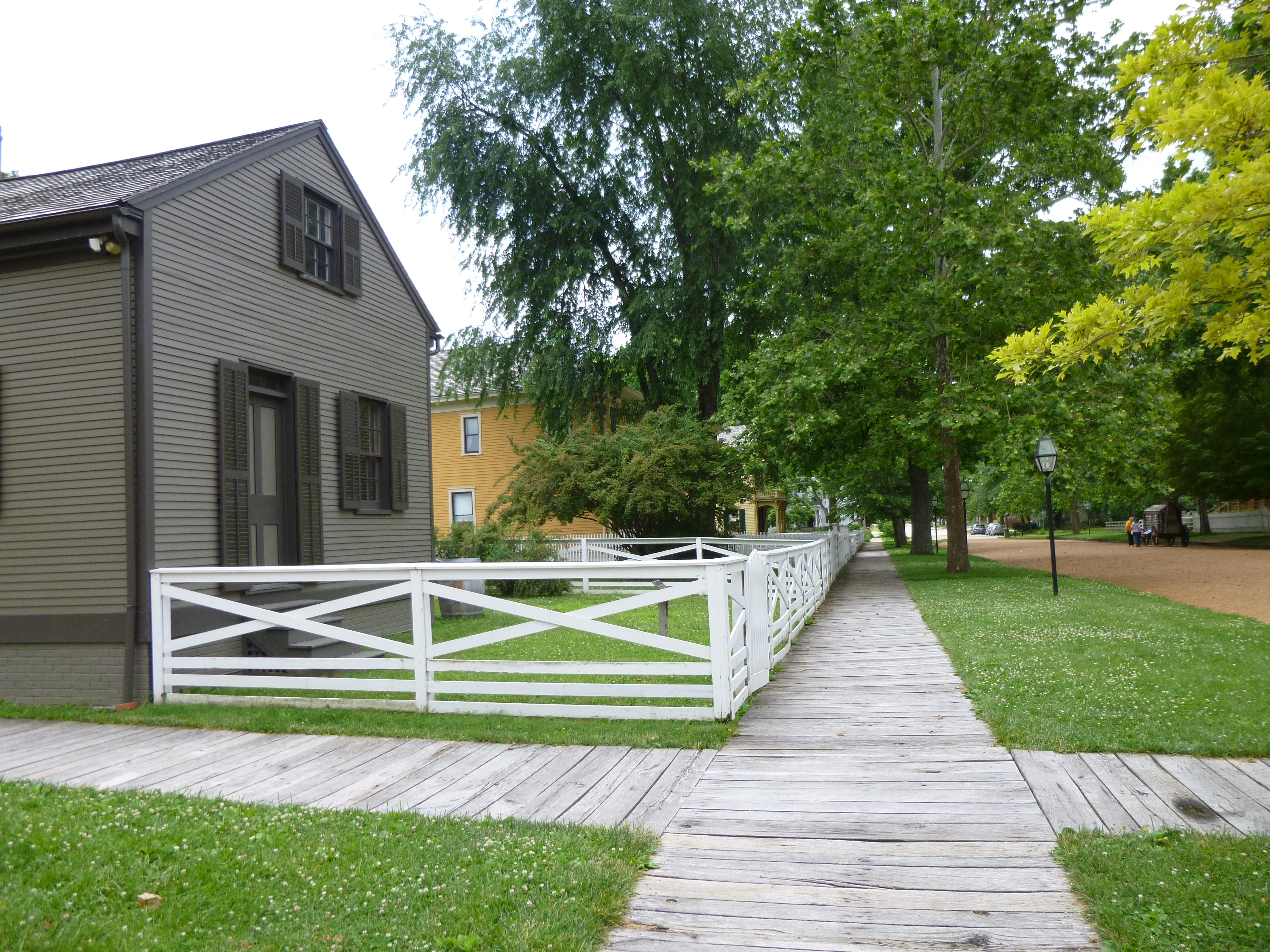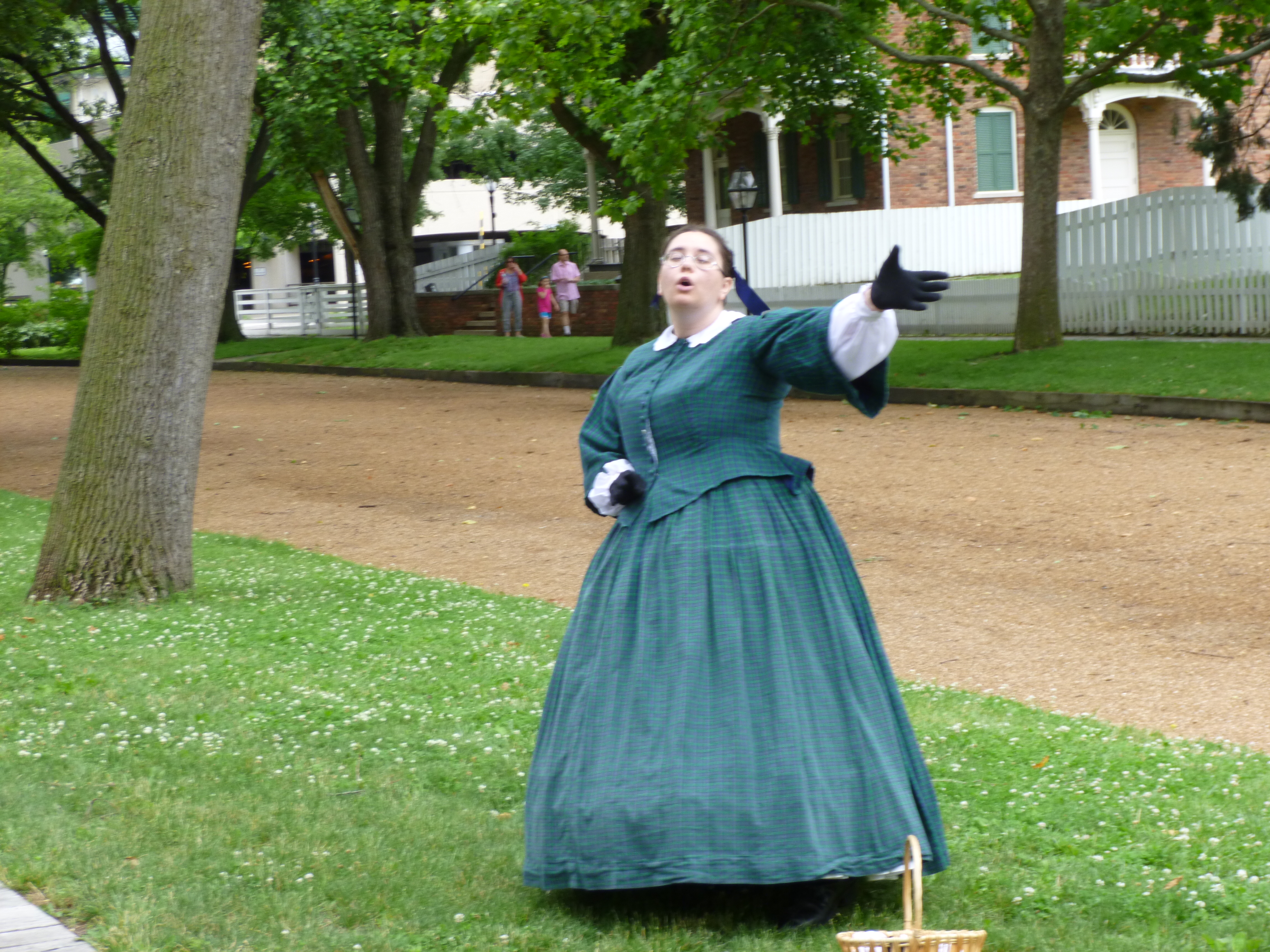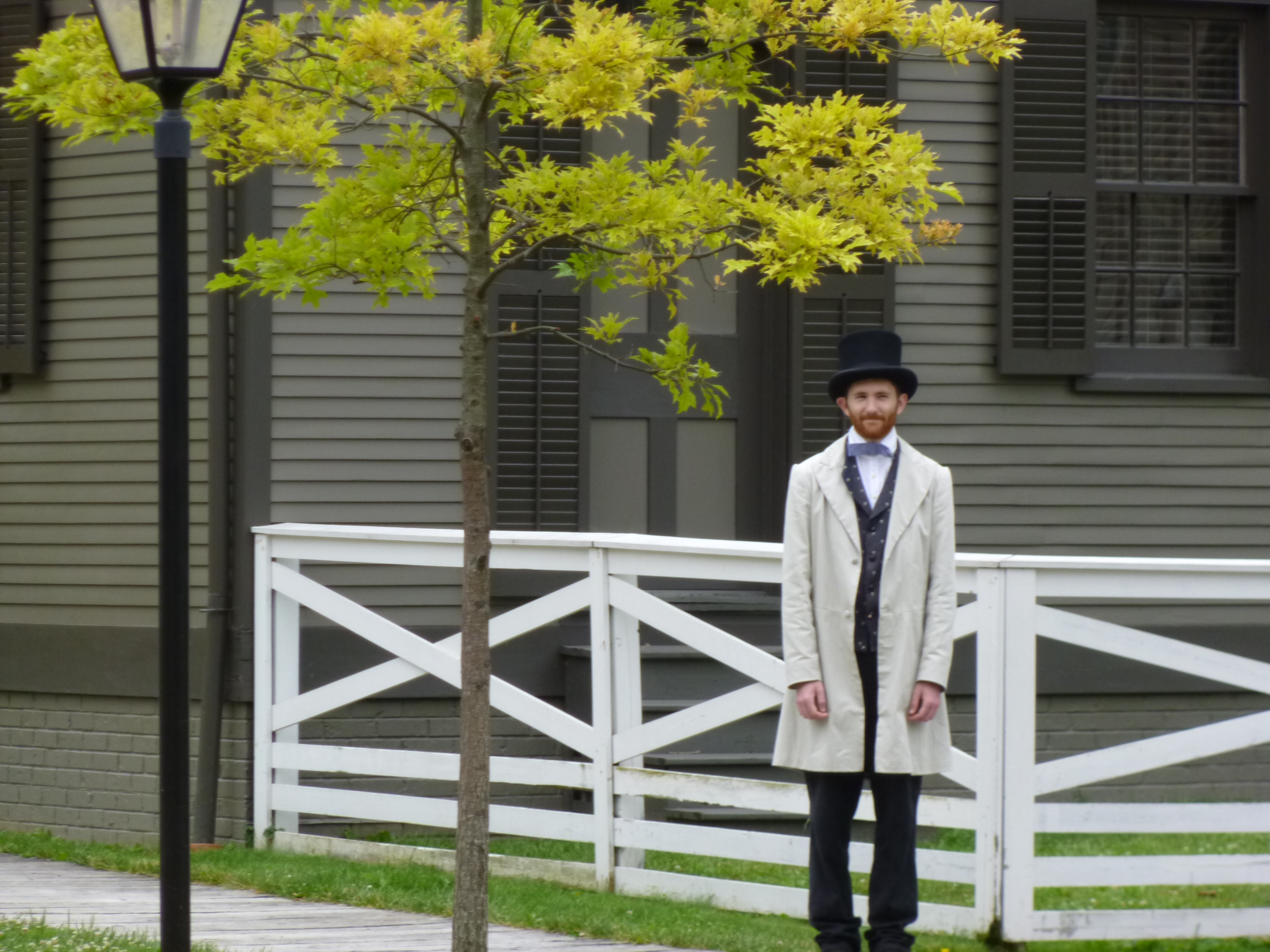 My first stop today was the Lincoln Home National Historic Site, which was only a short drive away. It’s like a step back in time – there’s about 9 city blocks right smack in the middle of Springfield which have been restored to Lincoln’s era as far as building appearance and streets and lamps and all. No vehicle traffic is allowed, and it’s a refreshing oasis in the middle of a big city. Abraham Lincoln and his wife Mary and their 4 young sons all lived in the home that is now the centerpiece of the historic site. It has been restored to the condition it was in when they lived there, and some of the pieces of furniture, such as black horsehair chairs, a bookcase, a curio shelf, Mary’s sewing box and the cast iron stove are all original. The bannister by the stairs going up to the second floor is also original, and the park ranger told us it’s about the only thing that Lincoln touched that we could also all touch without getting in trouble! This is the house Lincoln was living in when he got word that he was the Republican party’s Presidential nominee in 1860, although it took him 4 days to consider his decision before he agreed to run for president.