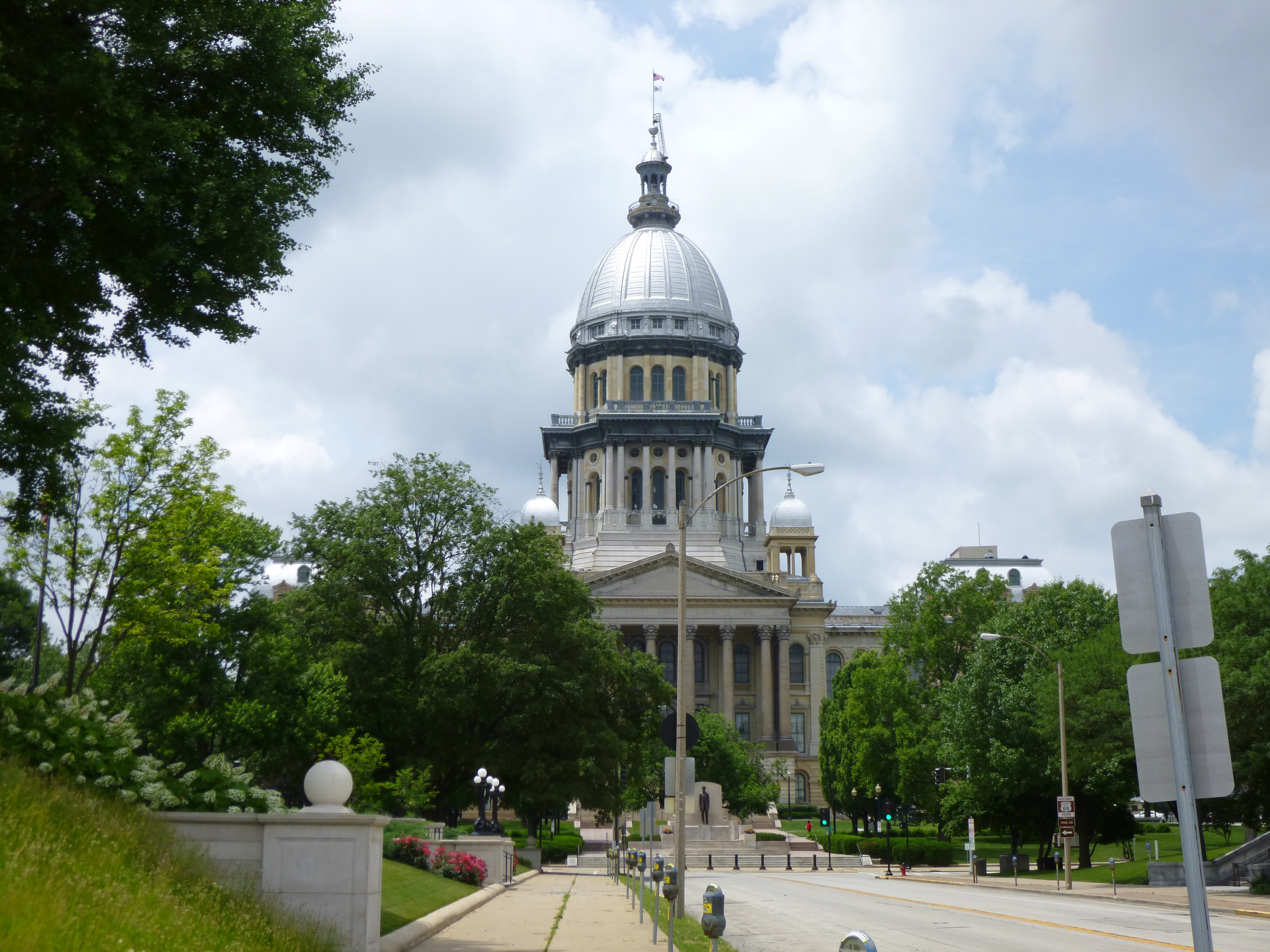 After I had toured the house, I got Tula out and we wandered around the rest of the historic site. There were some people dressed in costume to add to the historic appearances. And then we returned to reality and walked around part of Springfield too, and saw the state capitol building. From there I headed to Lake Springfield which was right outside of town, thinking there would probably be some good walking trails by the water, but it was mostly a wild goose chase – there just seemed to be a lot of boat ramps and fishing docks, although we did get one mile of walking done by a lakeside park.