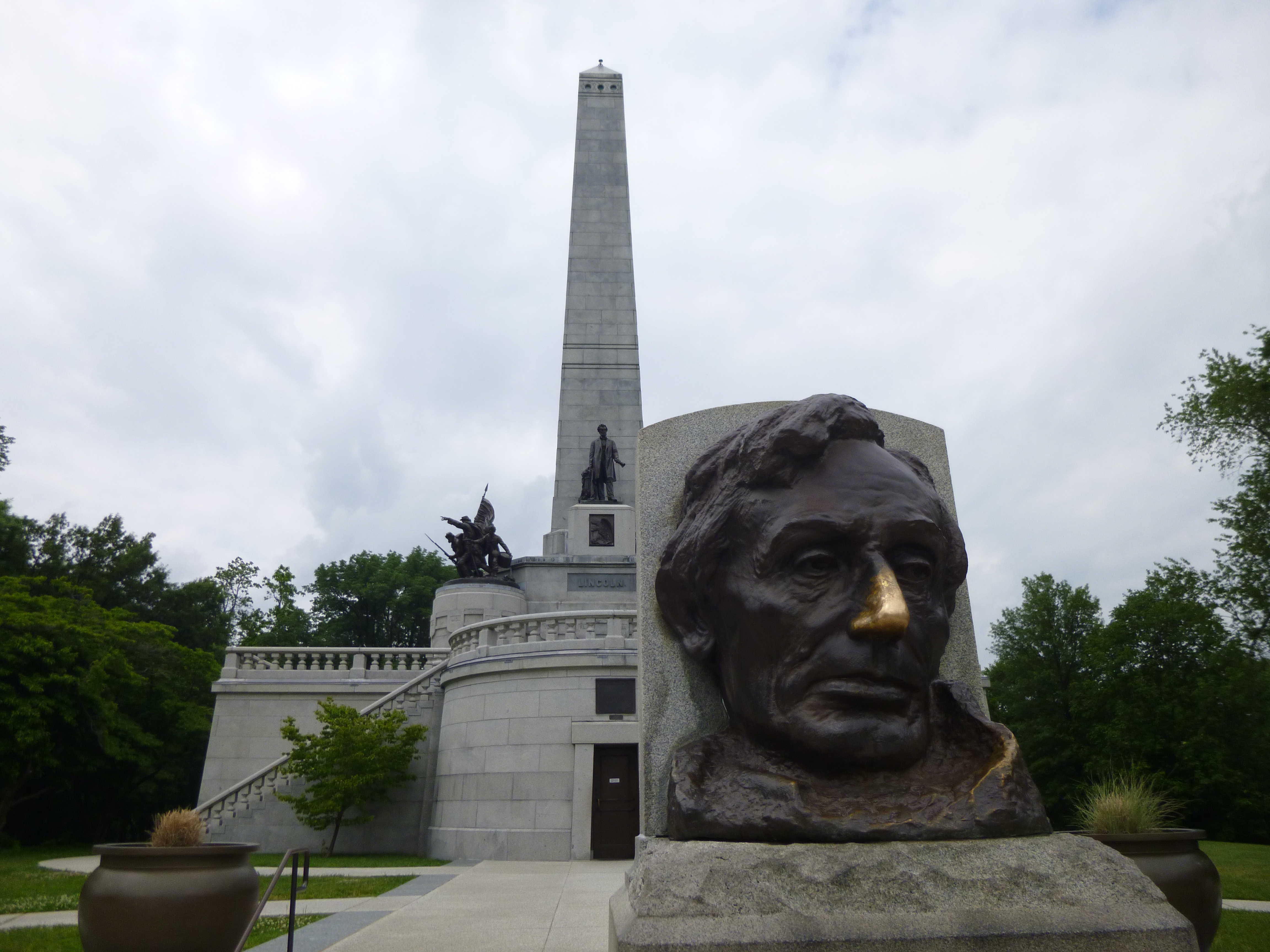 Before leaving Springfield, I returned to the Lincoln Tomb, so that I could go inside and see what was there. There was a big granite gravestone to mark the spot where Lincoln is buried, and a security guard keeps an eye on things. Mary and 3 of the sons are in a crypt across the aisle, and the oldest son was buried in Arlington due to his wife’s wishes (so she’s buried there too) instead of in Springfield with the rest of his family.