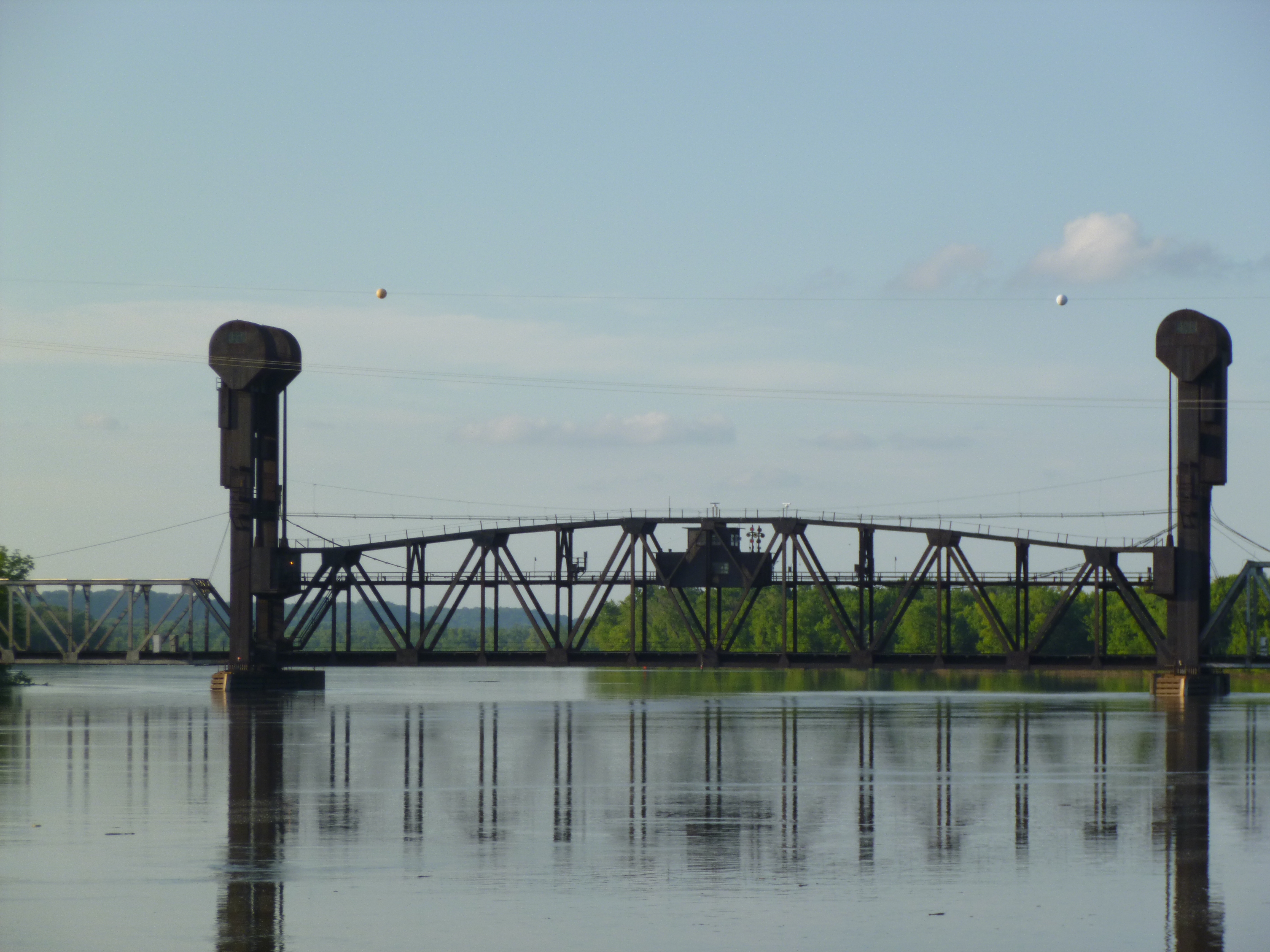 I continued driving west toward the Mississippi River, and the farmland between the Illinois River and the Mississippi River must be some of the most low-lying land in Illinois, and it was apparent there had been a lot of water – there were big “ponds” in some of the fields, and other fields simply looked too muddy to get equipment out into it, and other fields looked like they had only recently been planted. There were dry fields too, where corn was well on its way, but that only made the wet fields more noticeable. And there’s not much the farmers can do about flooding and too much rain. Despite all of that, it was still a very scenic drive.