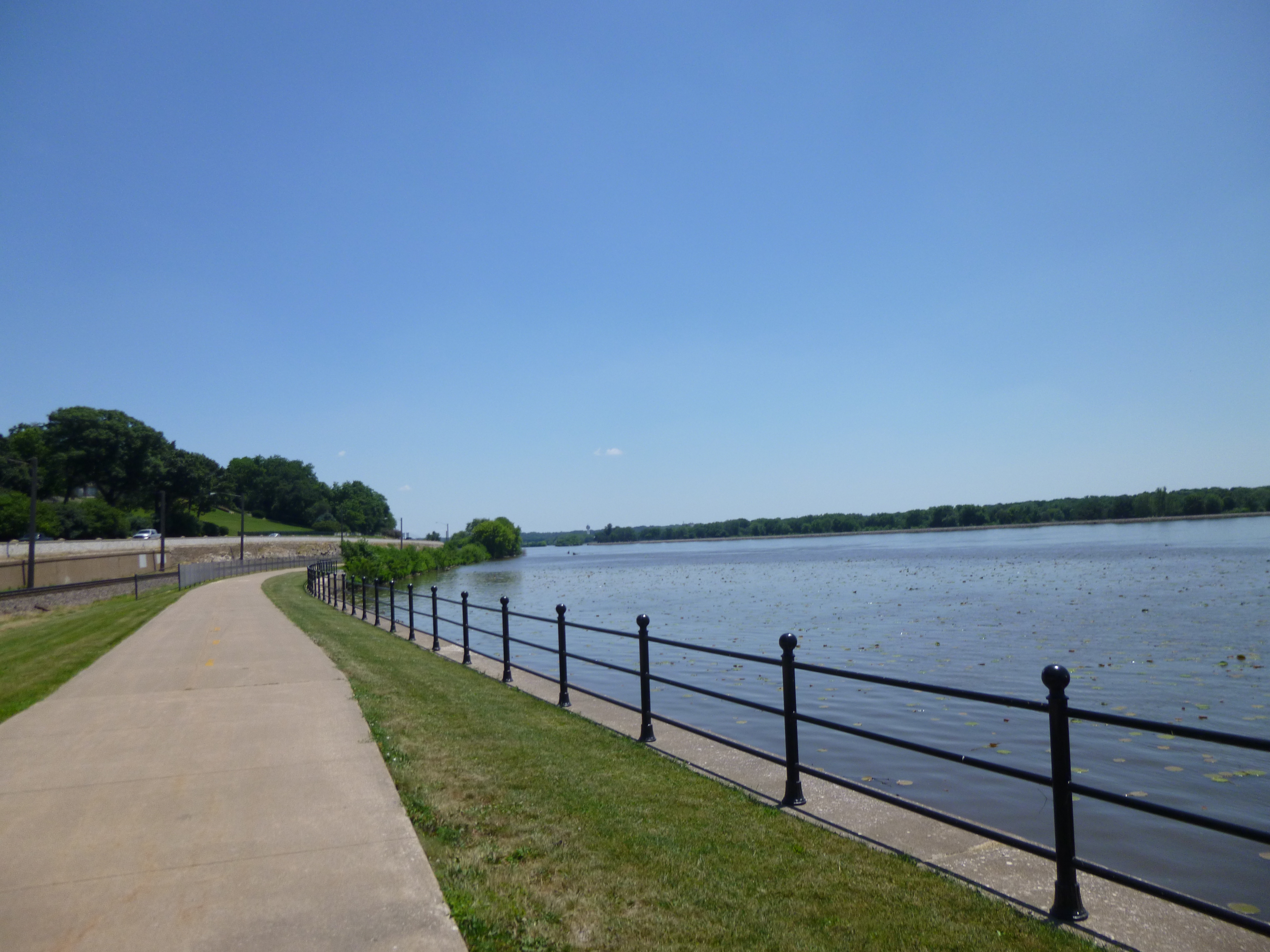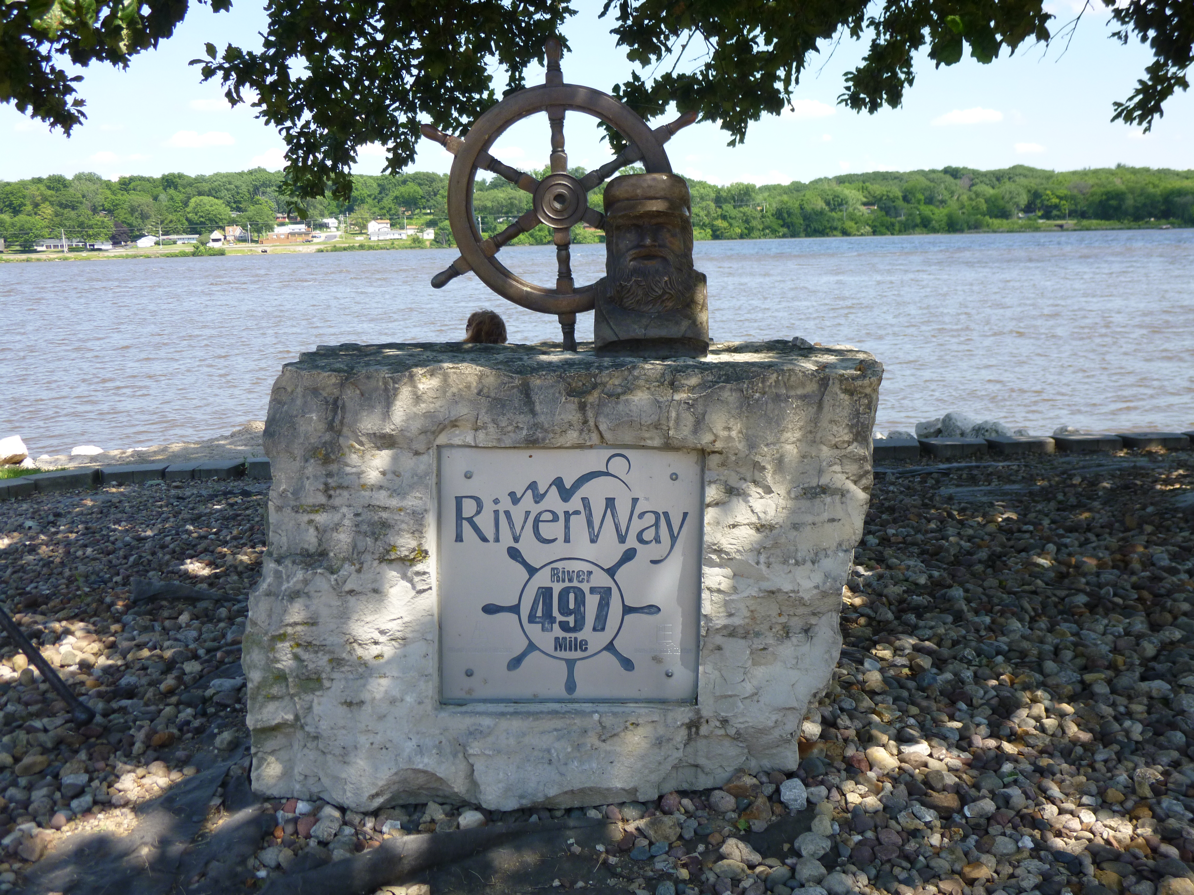 I did some more walking in the town of Le Claire – Buffalo Bill was born near here, and became America’s first “superstar”. Then I drove up to Clinton where I got another couple miles in along their riverfront. It got up to the mid-90s today, but the riverfront walks have been nice and breezy. Then I went to the little island town of Sabula, and walked another mile there. This was a day of relatively short river walks in a variety of towns along the Mississippi, and I really enjoyed soaking up the atmosphere in all these places. The island of Sabula is clearly in duck-hunting territory. I saw so many duck boats in driveways, some still adorned with grassy camouflage, that I began to wonder if there had just recently been a duck-hunting season, but that’s very unlikely this time of year. They must just be ready to go the moment a season opens!