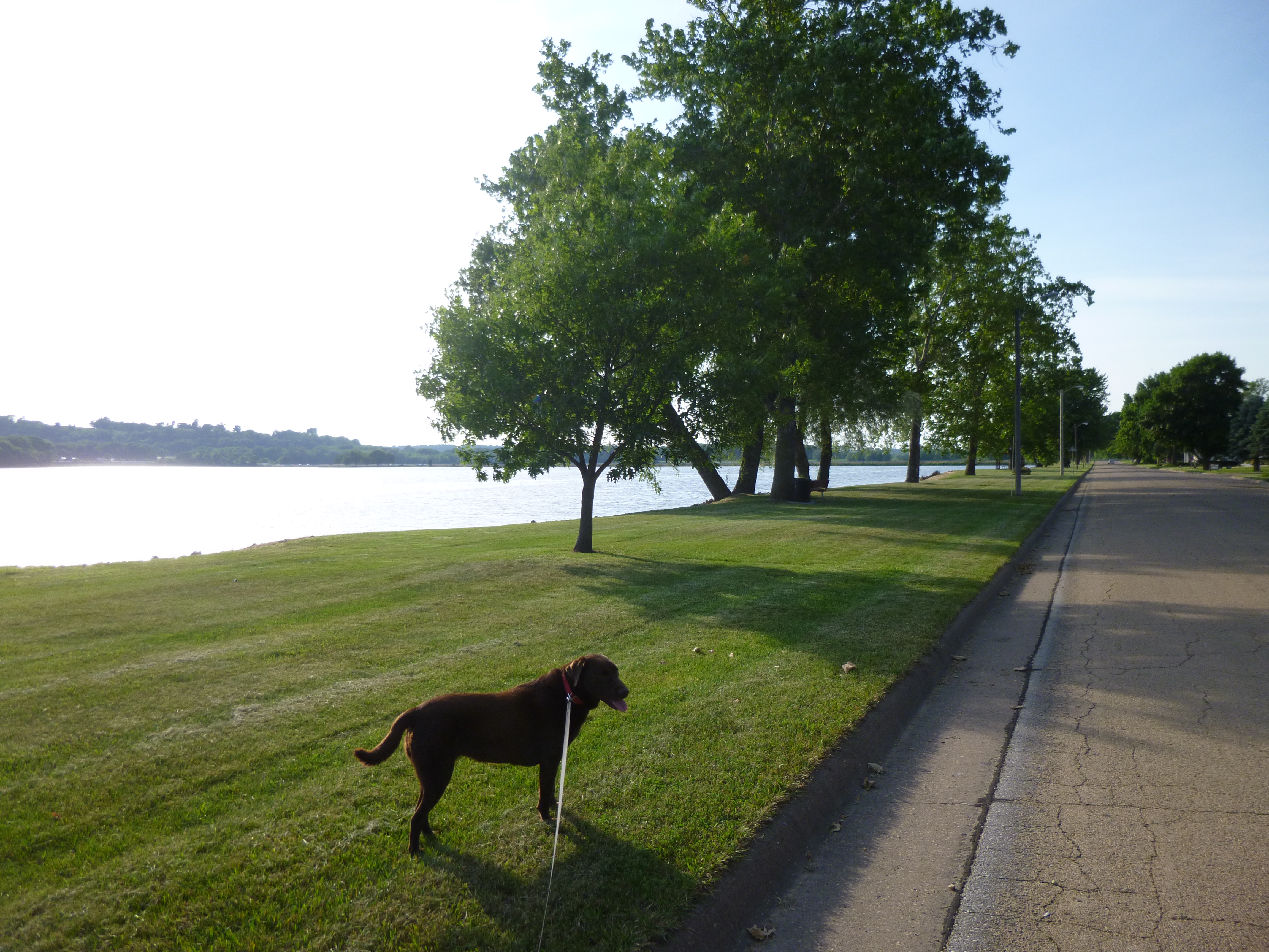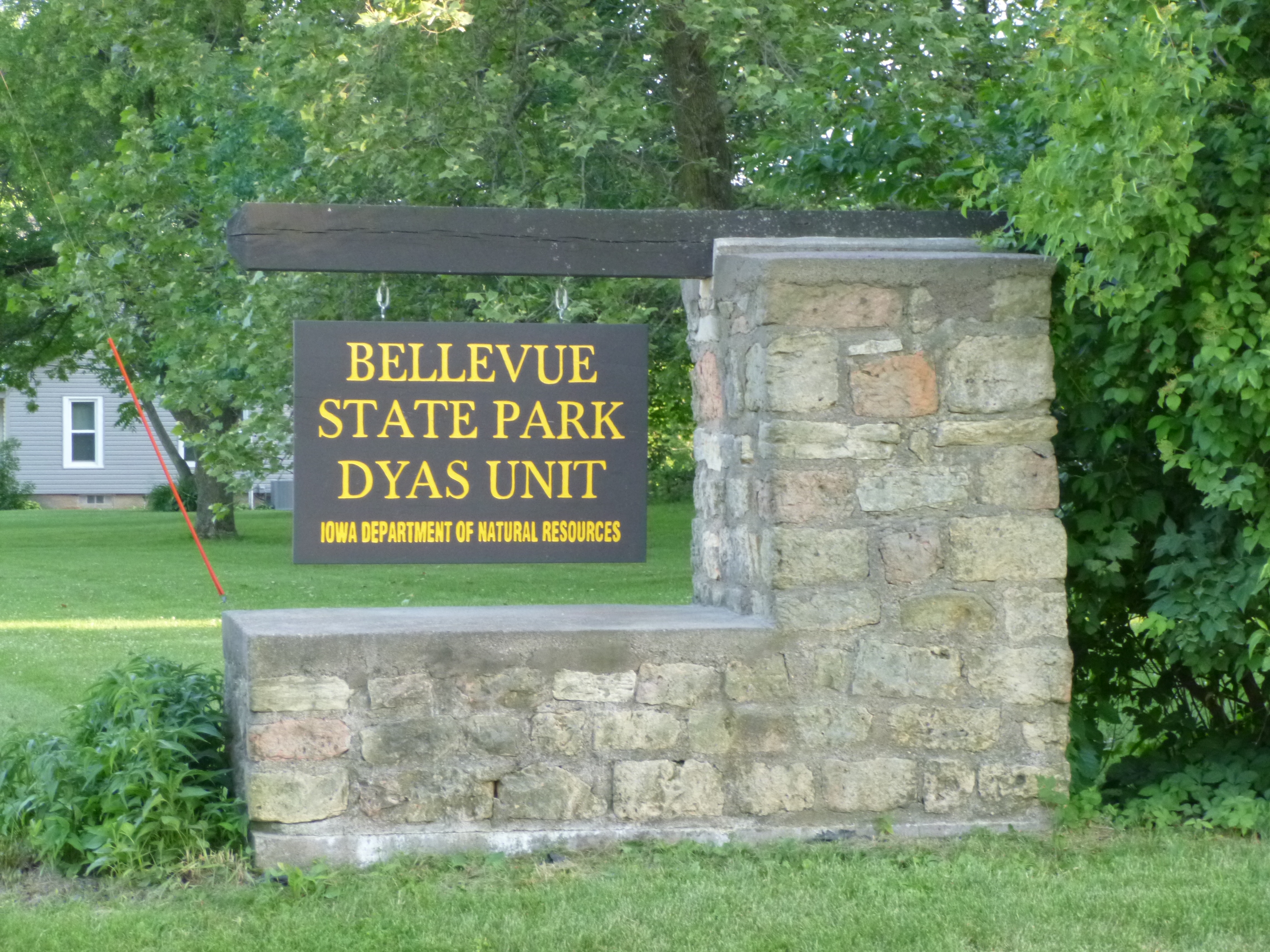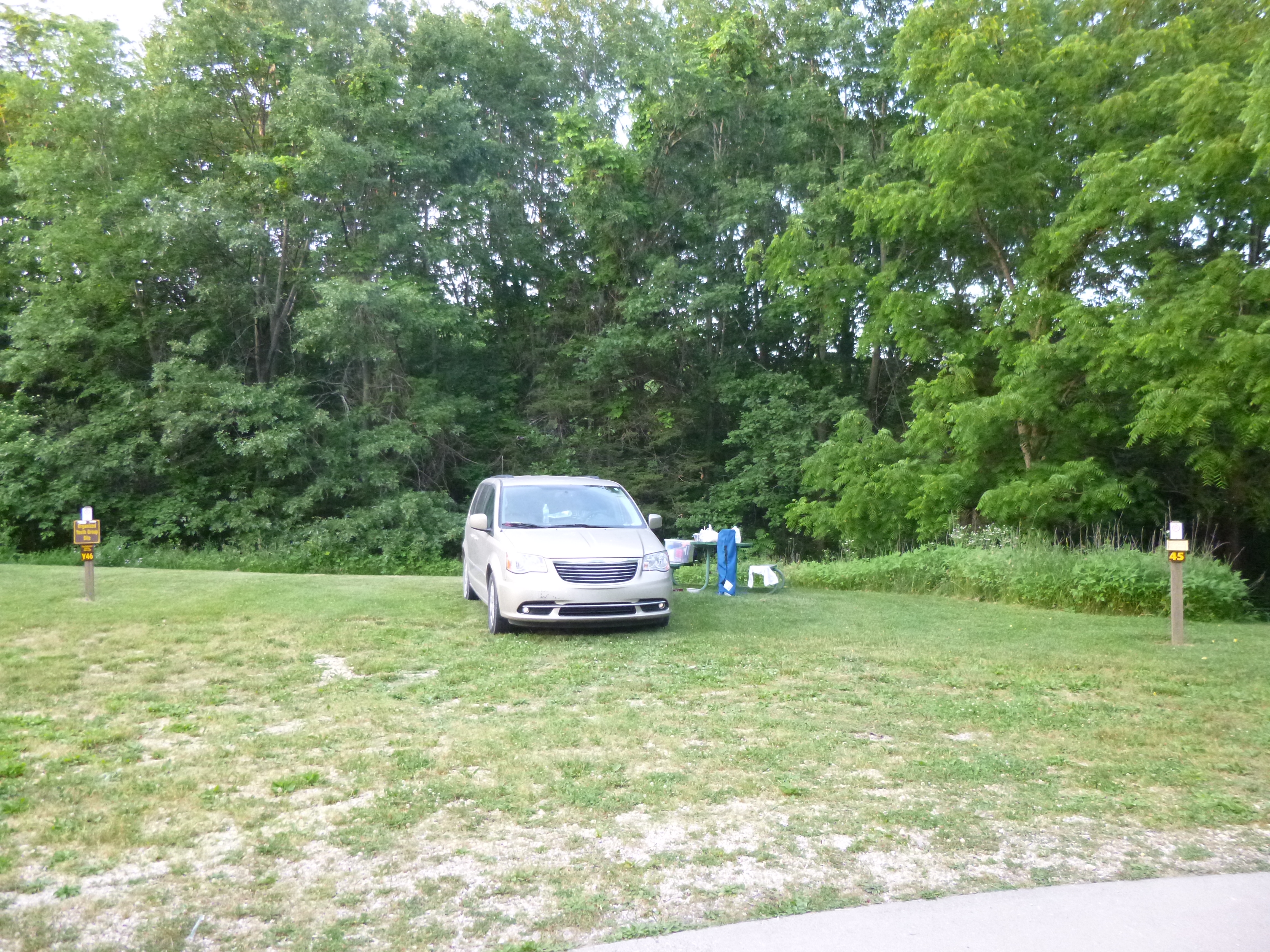 Then I continued to drive north a bit more, and came to Bellevue State Park, and the sign said they also had a campground. Since it was getting to be that time of day, I thought I would go take a look at the campground, and it was a beautiful, well-maintained place and there were quite a few campers but still plenty of campsites. So I picked out my spot and registered, and got everything set up before the mosquitoes got bad – and they never got really bad anyway. Then Tula and finished off our walking for the day, and did an extra 3/4 mile too. And when I got back to the campsite I fixed myself a very adult dinner of peanut butter and banana sandwiches!