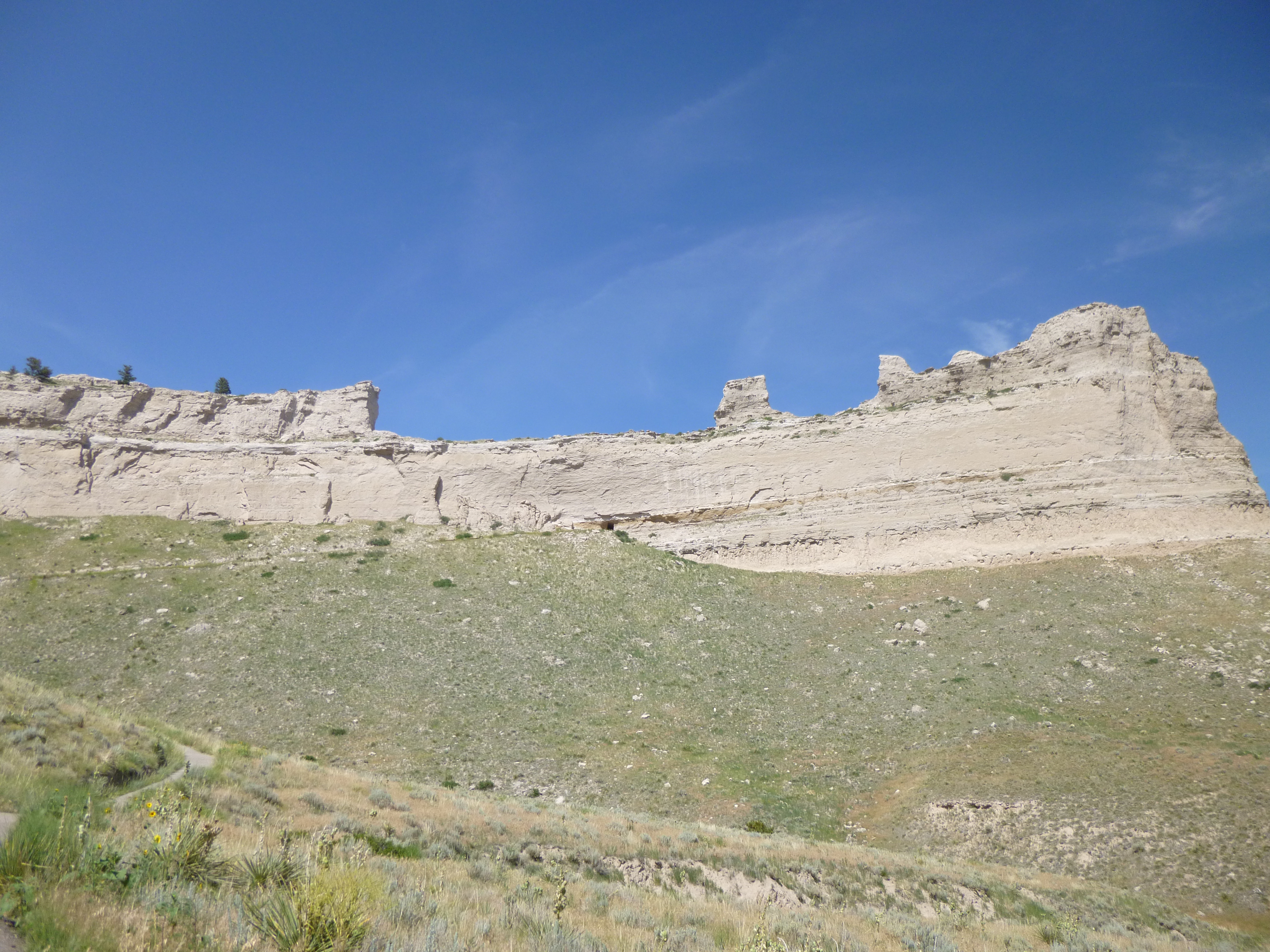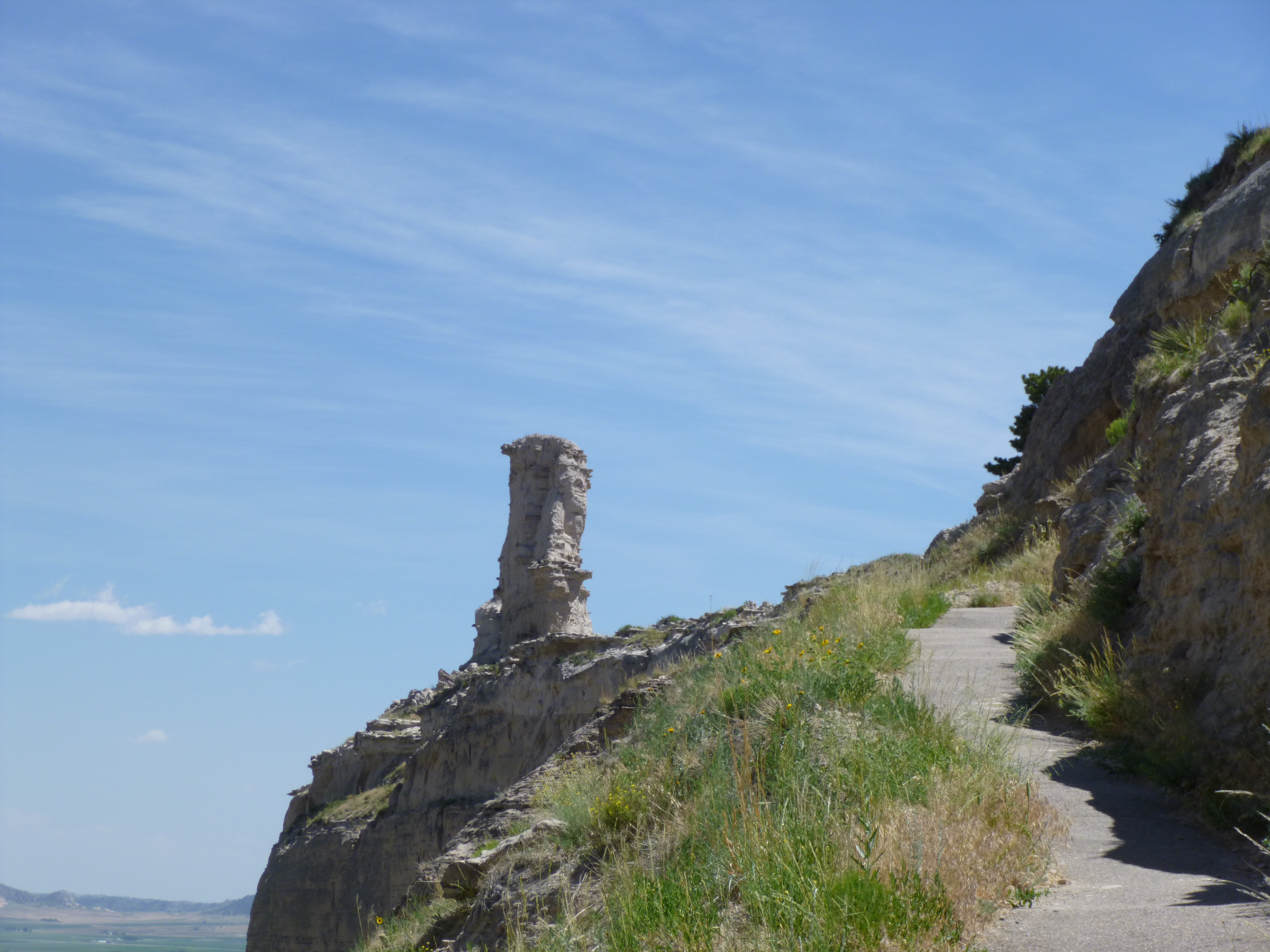 Then it was time for some walking. I started with a short 1 mile walk by the North Platte River so that Tula could get out, and then I headed for the Scottsbluff National Monument. I had been here back in 2005 and it was worth a return visit. Scottsbluff was another of the landmarks for the pioneers on the Oregon Trail – they would pass Courthouse and Jailhouse Rocks, then Chimney Rock, and then Scottsbluff, and then they were out into the open expanses of land again. There was a 3.2 mile roundtrip walk to the top of the bluff, and from up there, one can see for miles and miles in all directions. It was a pretty warm walk to the top, but it’s a good hike, and there are amazing views all the way up. I walked on a couple of the trails on top of the bluff too, and met an older couple with binoculars. We tried to figure out how far we could see, and Chimney Rock was visible even without the binoculars, and that was about 20 miles away. It was such a clear day. I started to head back down the bluff, and saw a sign that said the mile and a half back down would take about an hour. With all the downhill walking, it was a little too easy to get going too fast, and I was almost jogging, although still watching my footing. I made it down in 35 minutes, but my left knee was not happy with the quick descent, and I paid for that for a few days!