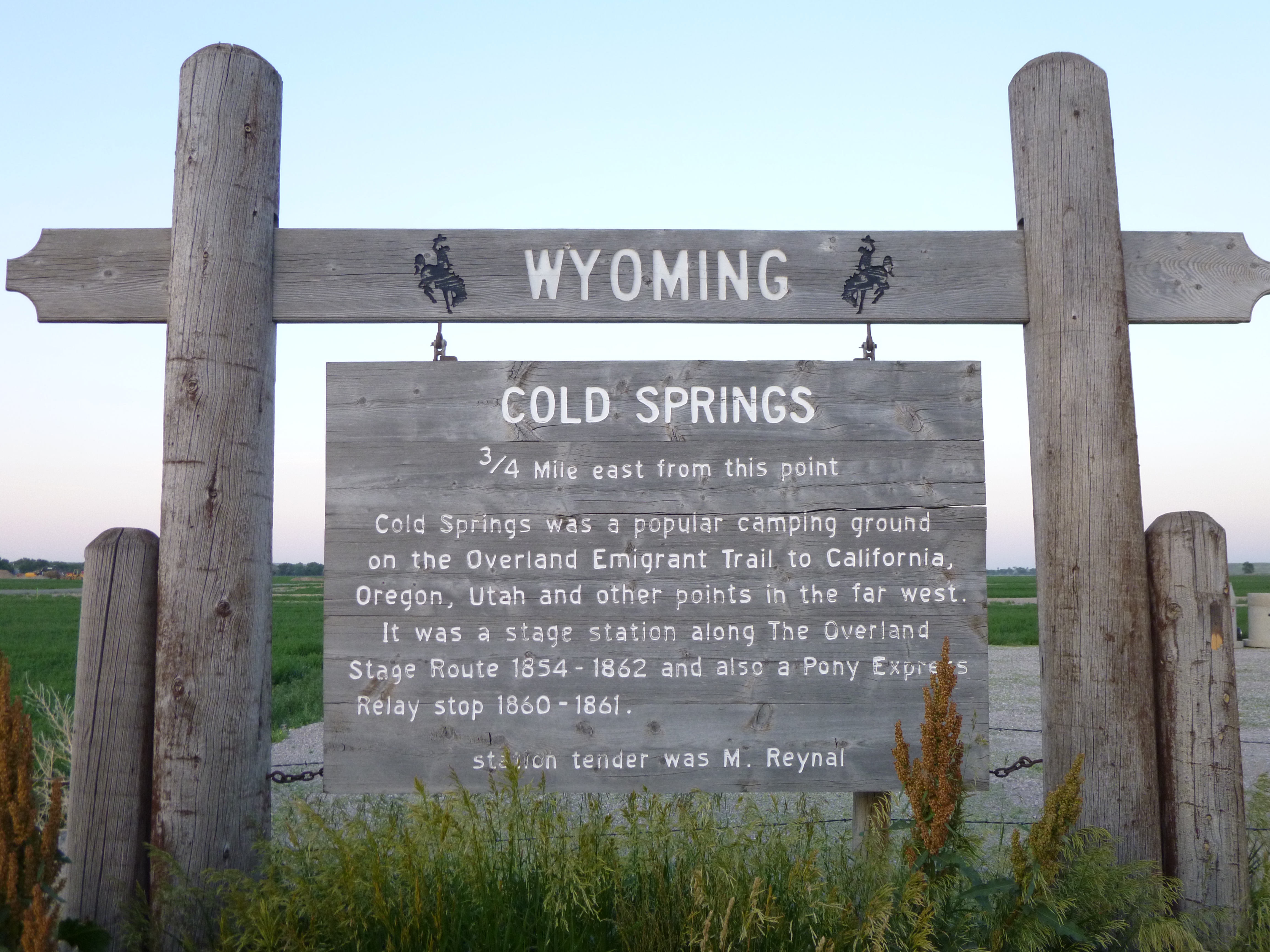 Since it stays light so late, I crossed into Wyoming this evening – State #40 – and stopped in Torrington to get the first mile and a quarter of the Wyoming walking done. On my way to Cheyenne, where I was going to stay tonight, I passed the Cold Springs historic site, which was a good water stop for everyone who was westward-bound. And then I enjoyed my drive south to Cheyenne, and saw a pretty sunset on the way.