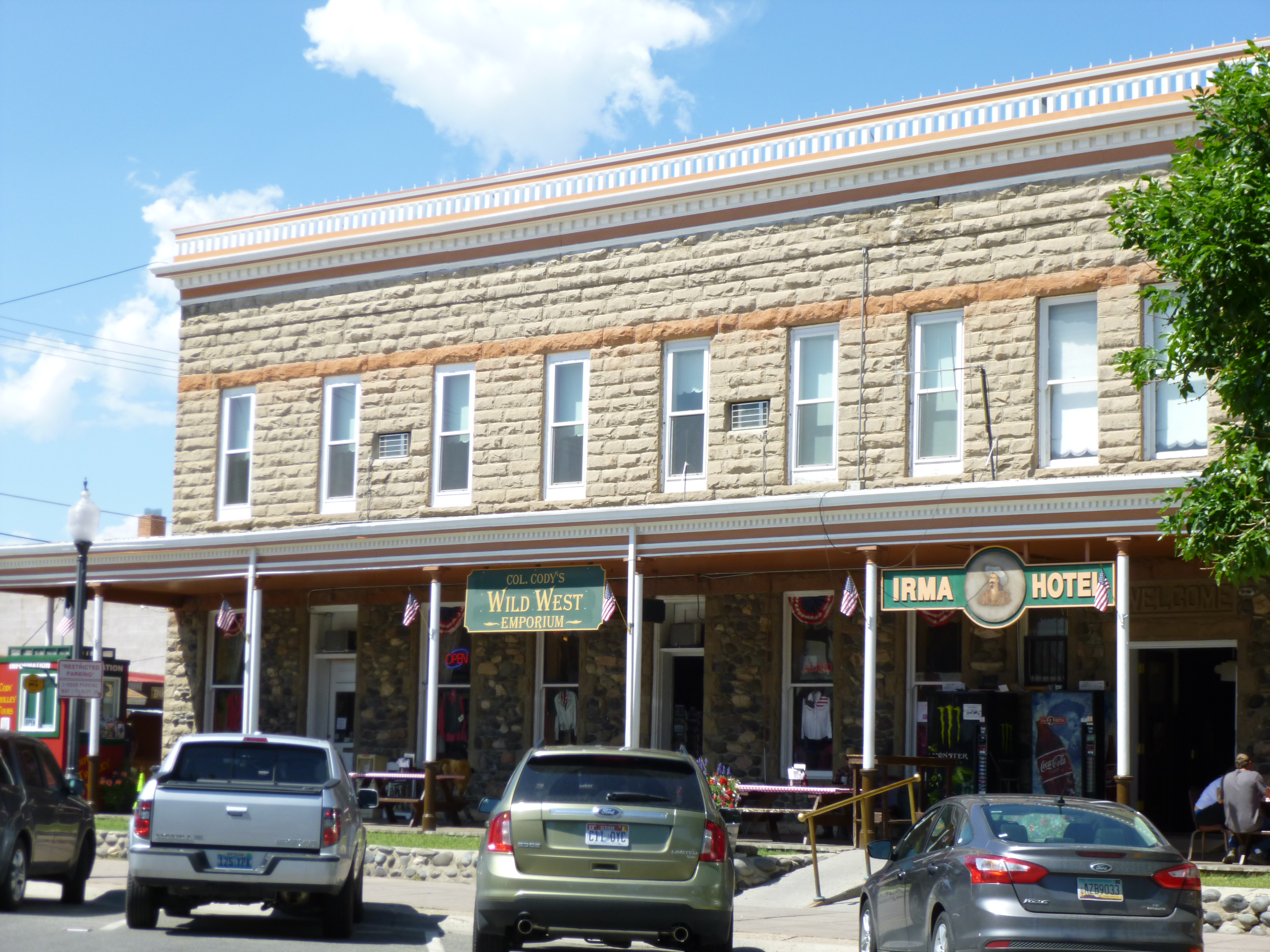 Tula and I took another walk around the campground when we got up, and then I packed things up. This campground actually offers free pancakes for breakfast, and then they have sausage, juice, yogurt and coffee for sale at very fair prices. It’s a good way to do business. Lots of people came in for pancakes, which were good, and then bought the other stuff. It was a good way to start the day! Then I drove into the town of Cody, and we did some more walking. This was a fun town to walk through – part western town, part touristy town, and kind of the last stop before the expanses of Yellowstone and the Tetons. The town was bustling. Cody had a food pantry called Cody Cupboard, and I called and talked to one of the volunteers to see if a food donation or a financial donation would be best. She said a financial one would be great, so that they can get the things they need when they’re out shopping. So I drove over to the food pantry, which was in an old log cabin behind the visitor center. There I met Donna and she showed me all around. The food pantry was very well organized, and like many of them, the amount of food the clients are given depends on family size. Typically the people they serve are referred to them through agencies like the Department of Social Services, but even if someone showed up without a referral, they would probably still give them food. They help around 300 families a month, although the numbers do fluctuate.