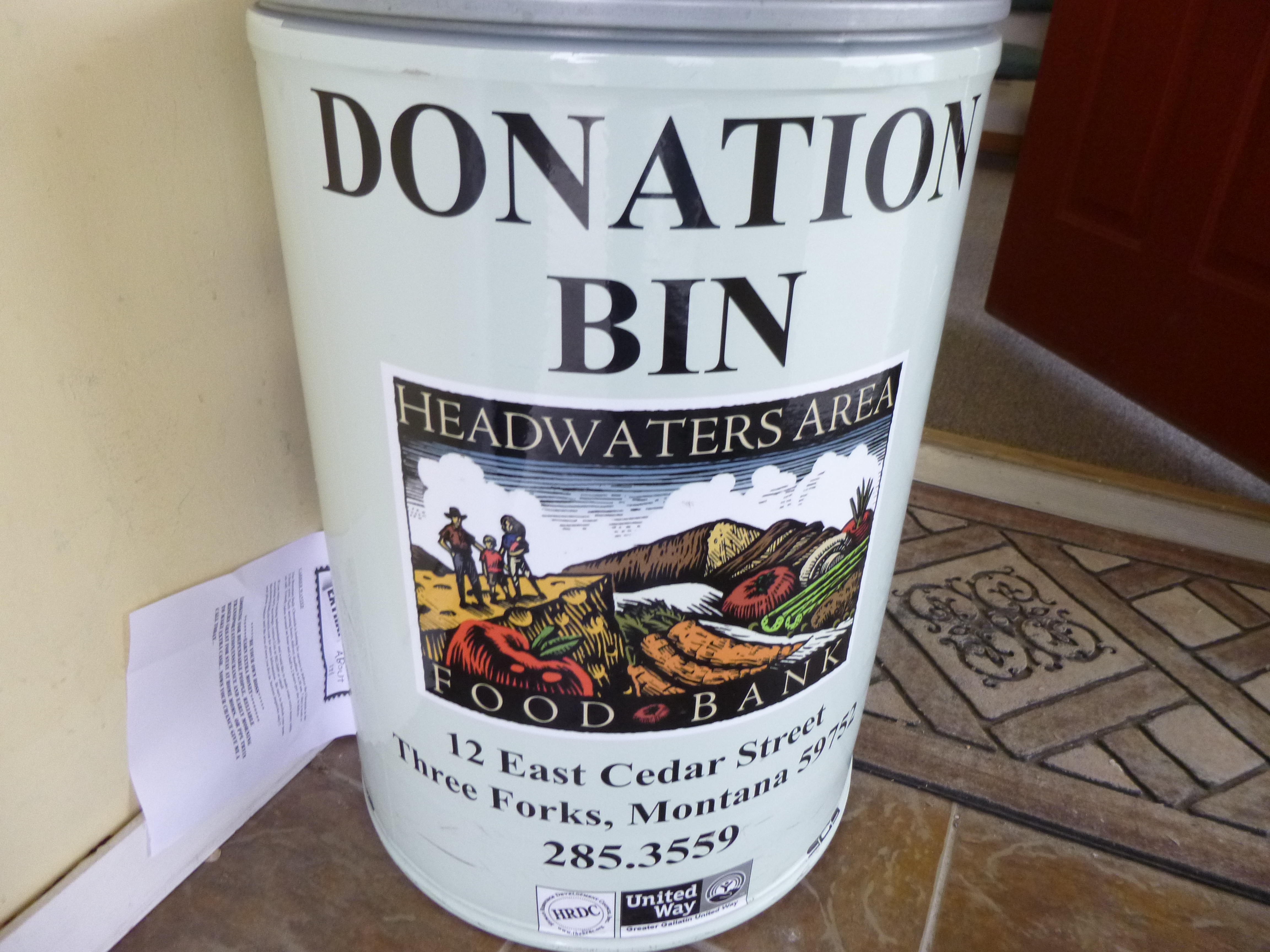 I woke up this morning refreshed and ready to tackle State #41 – Montana! I was glad I stopped last night – I was near a river in a valley between a couple mountain ranges. I was just a couple miles away from the town of Big Sky, and once I was packed up (I was a little slow this morning!) I found a really pretty bike trail winding through the woods on the side of a mountain. So I got over 3 miles of walking done before leaving Big Sky. We then continued north to Bozeman, and the drive was very scenic – I’m glad I didn’t do it in the dark. Once there, I stopped to sort out some donation opportunities and to get a plan for the next day or 2, and 2 things jumped out at me. The first was the Bozeman Food Pantry and their Community Cafe, which is a soup kitchen, but it’s run like a restaurant. The second was over in Three Forks Montana which is where I was planning to stay tonight, and the Headwaters Food Pantry just so happened to be open late on Thursday nights, one of only 2 days they’re open during the week, so I thought it was meant to be.
