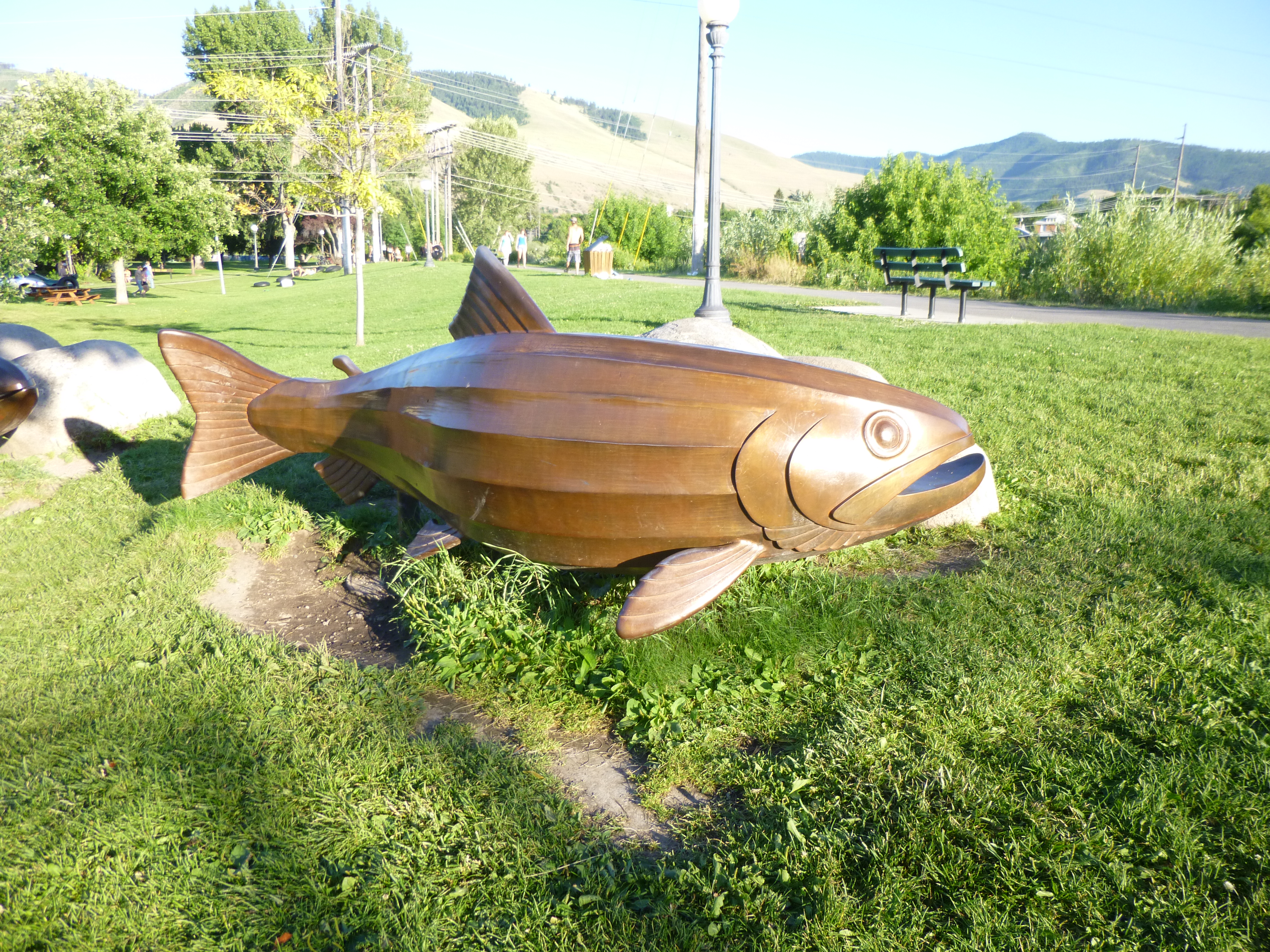 After visiting the Smokejumper Base, it was time to get some walking in, and there were lots of places to go. I started out in the unfortunately-named Rattlesnake Wilderness Rec Area, on a trail that followed a creek – Tula and I covered nearly 3 miles there. And there were no rattlesnakes to be seen (although I wonder if I would have ventured out if I didn’t see families with young children in the area!). Then I went downtown and covered another mile and a half. There seemed to be an unusual number of long-haired, shaggy-bearded, guitar-carrying young men, and some women, hanging around. They all seemed to head over to one of the riverbanks, and it sort of seemed like a hippie sort of gathering. They weren’t menacing or threatening, but from some of the old vehicles I saw, and the packs some of them were carrying, it sort of seemed like a young homeless, but musical(!) crowd that were just hanging out together. I wanted to ask someone about it, because there was definitely a presence, but I never found anyone to ask. And I saw more of it when I walked a couple more miles along the river trail. There was certainly a gathering of some kind going on!
