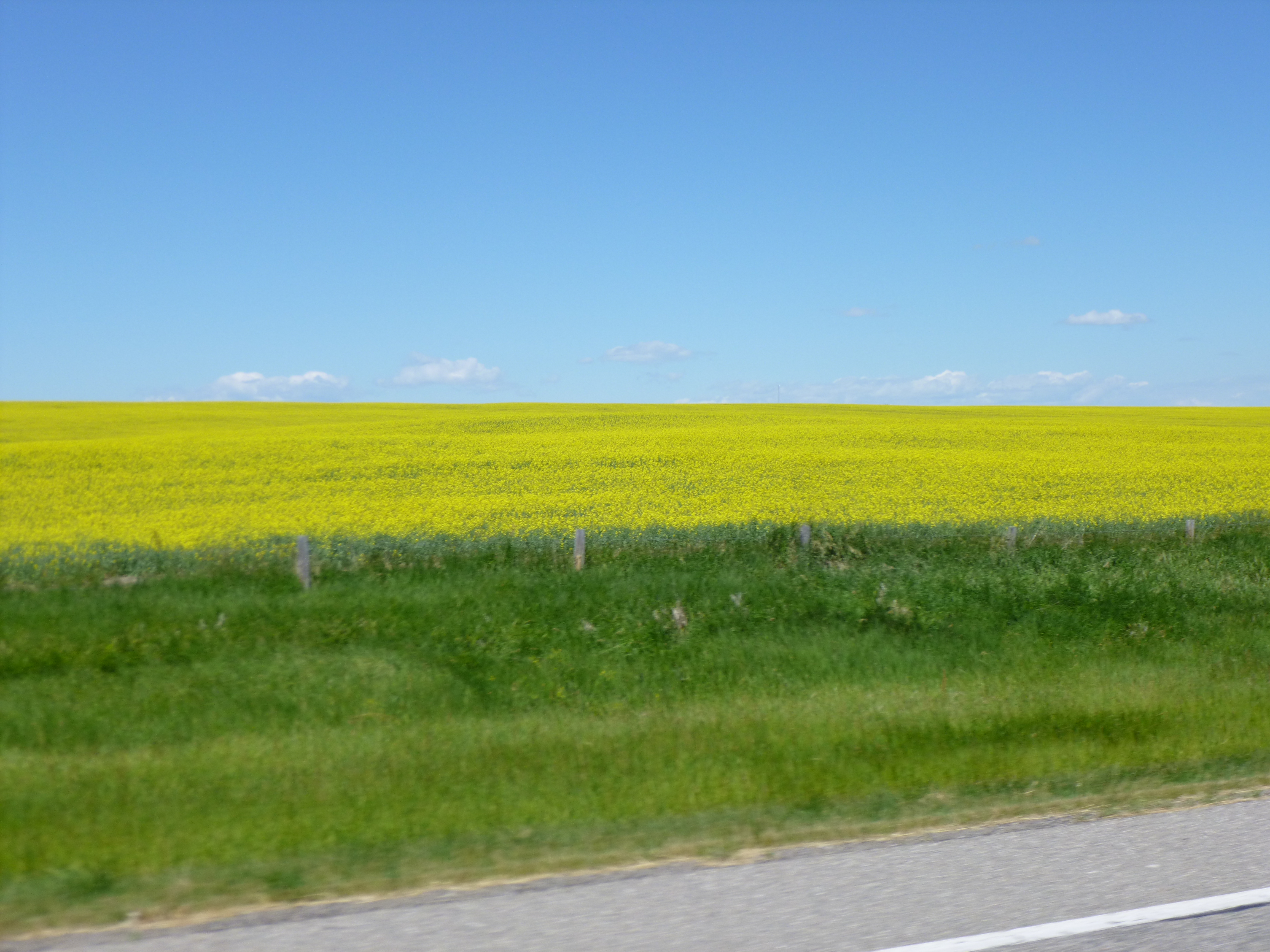 I set off across the border into Alberta – the first, vivid thing that caught my eye were immense fields of something bright yellow. I have no idea what kind of crop it was, but with the sun so bright, and so many huge fields of all the yellow, it was almost too bright! I never did find out what it was. Alberta was rolling farmland and then I got to Calgary, and must have picked the slowest way possible through that city. I saw the Calgary Stampede grounds in the heart of town, and it seemed to take forever to get from one end of town to the other. Or perhaps I was just impatient to get to Banff National Park!