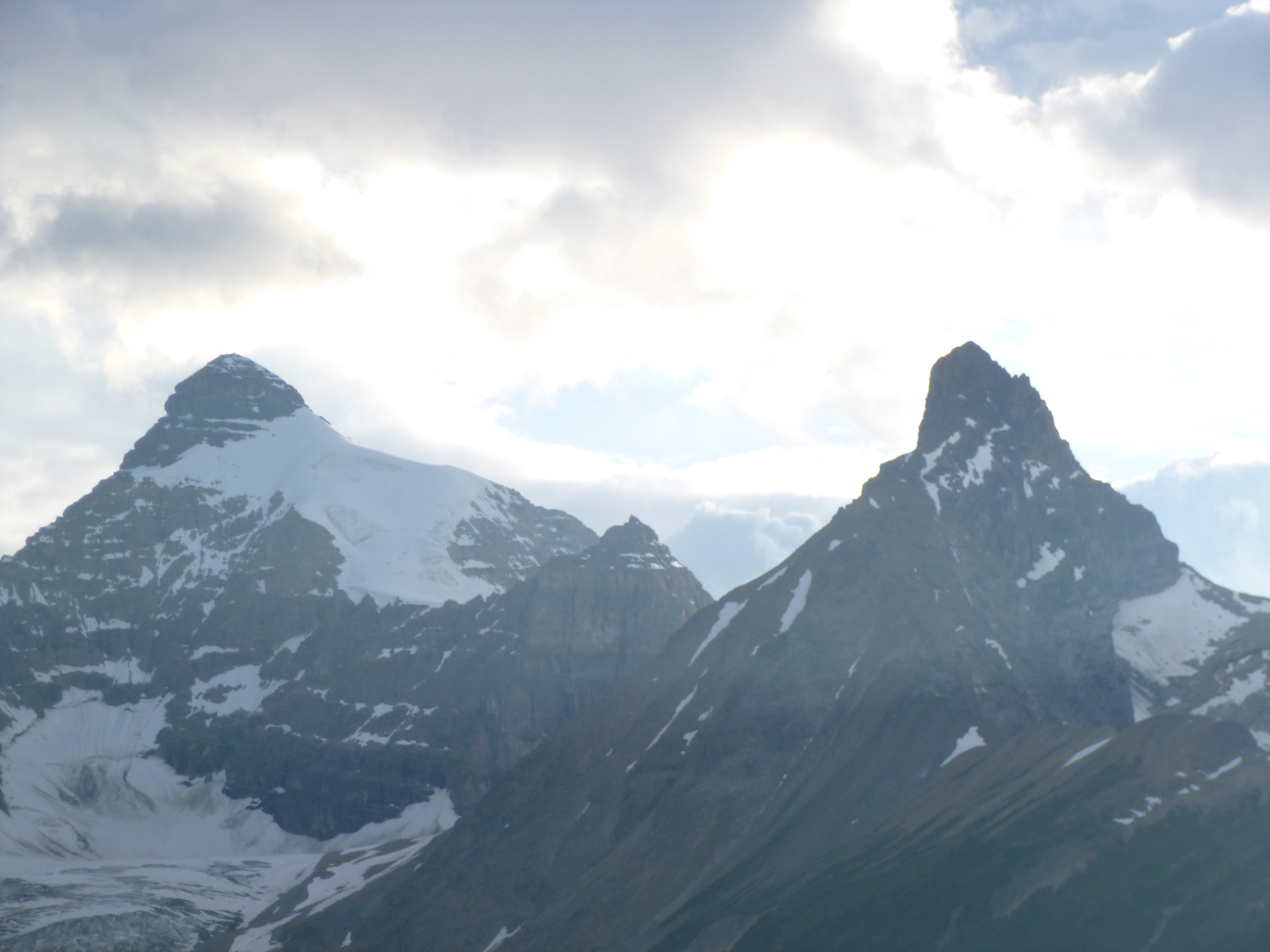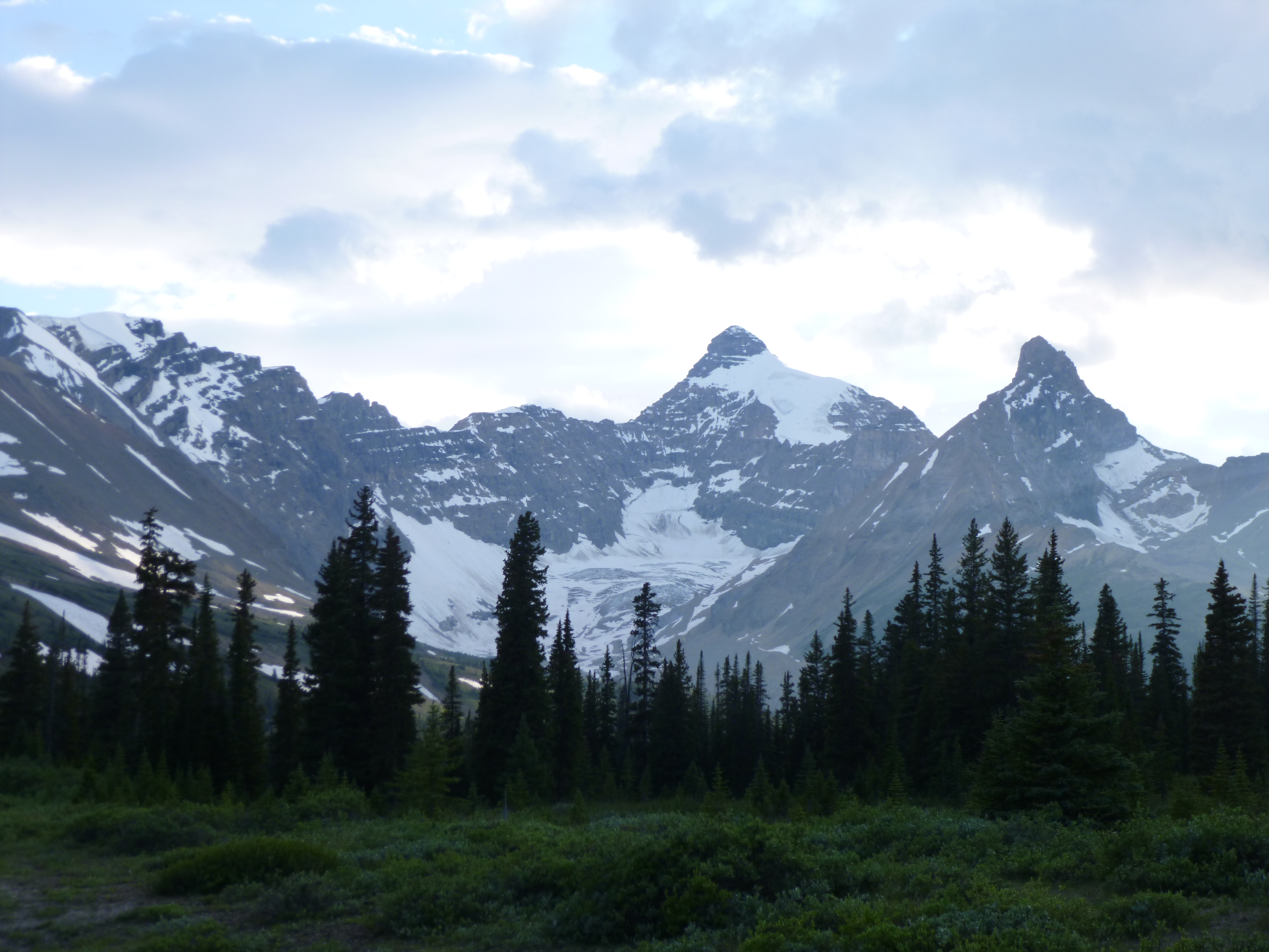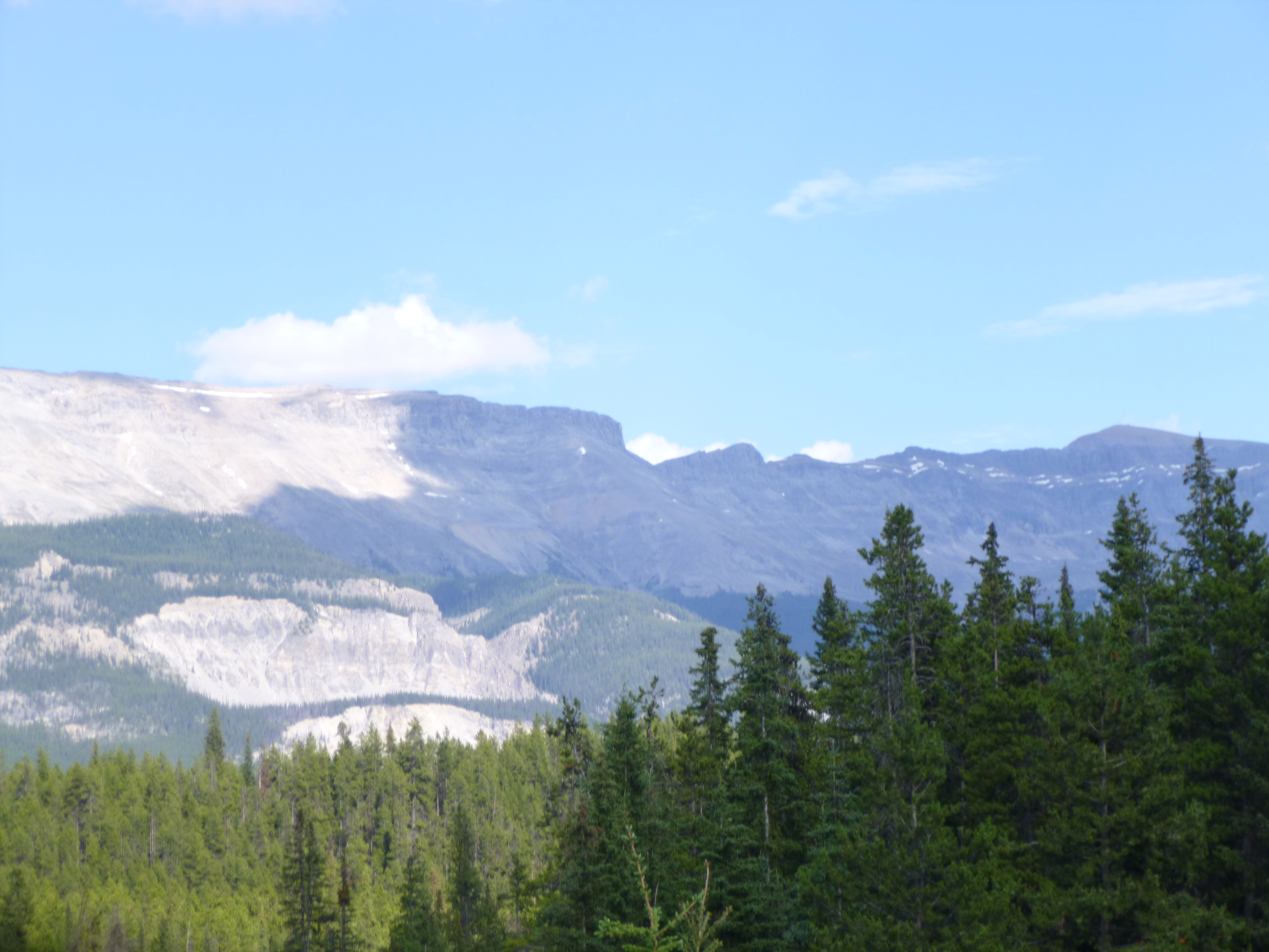 I didn’t cover as many miles as I had expected to today because of all the glorious scenery, and it was getting late as I got to the north end of Jasper National Park. I saw a sign for a campground, and went to check it out, and once again I was lucky enough to get a campsite at a national park in the summer without a reservation. So Tula and I enjoyed another cozy night of camping. The mosquitoes were bad at the registration booth, but they weren’t as bad in the campground, and I can get things set up pretty fast. Nights get cool in the mountains, and I was happy for my heavy sweatshirt and sleeping bag and quilt – Tula even had a blanket tonight!