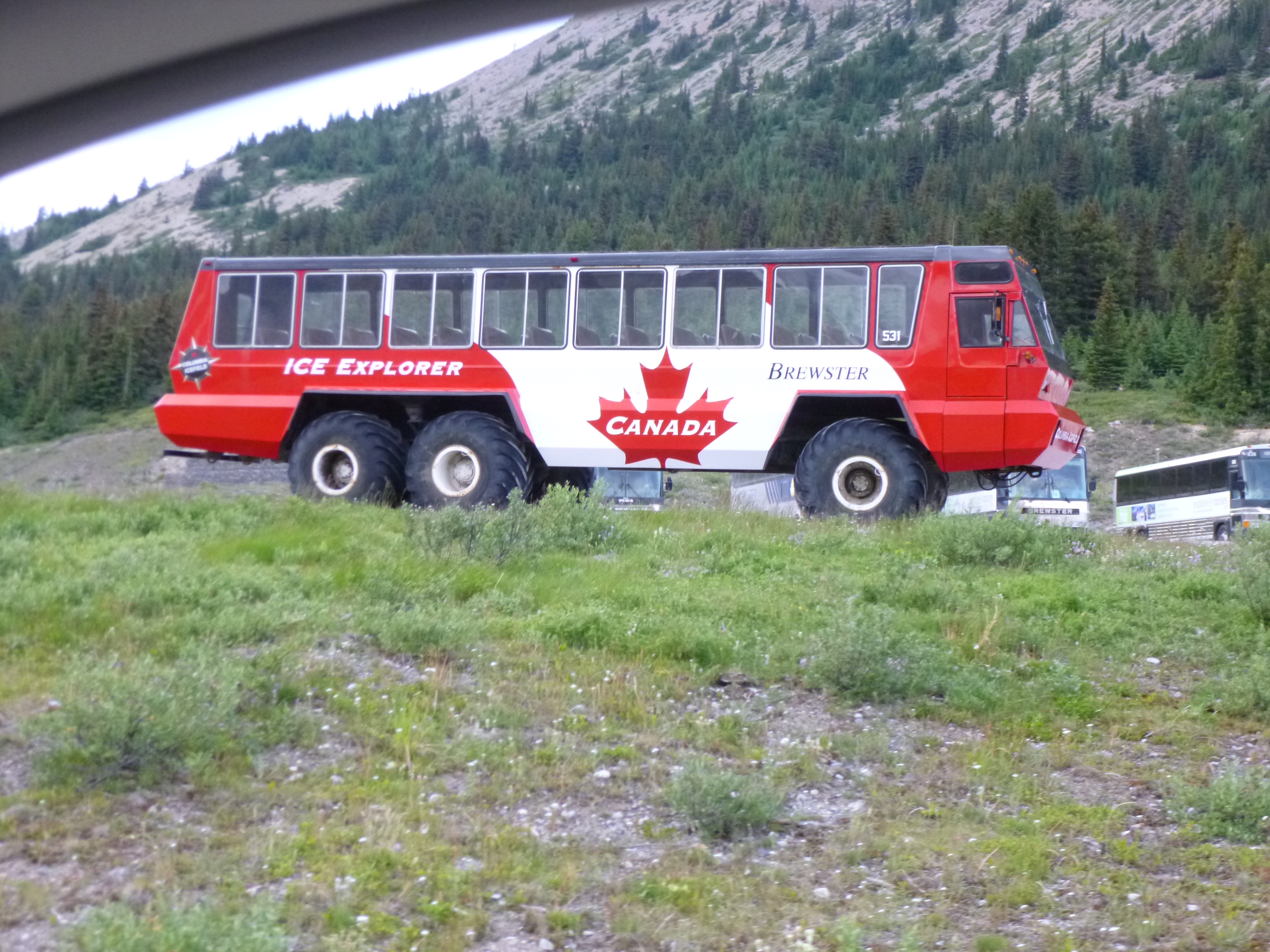 I woke up this morning right on the edge of Glacier National Park with the pine trees and mountains for my morning view. I was able to get online for a few minutes at the campground and sent a few emails and a few texts before crossing into Canada, where I’ll be kind of out of touch for a few days without the use of my electronic gadgets! The campground also had a breakfast burrito booth, and I got the best breakfast burrito I’ve ever had (not that I’ve had that many!) – that’ll keep me going for the day!