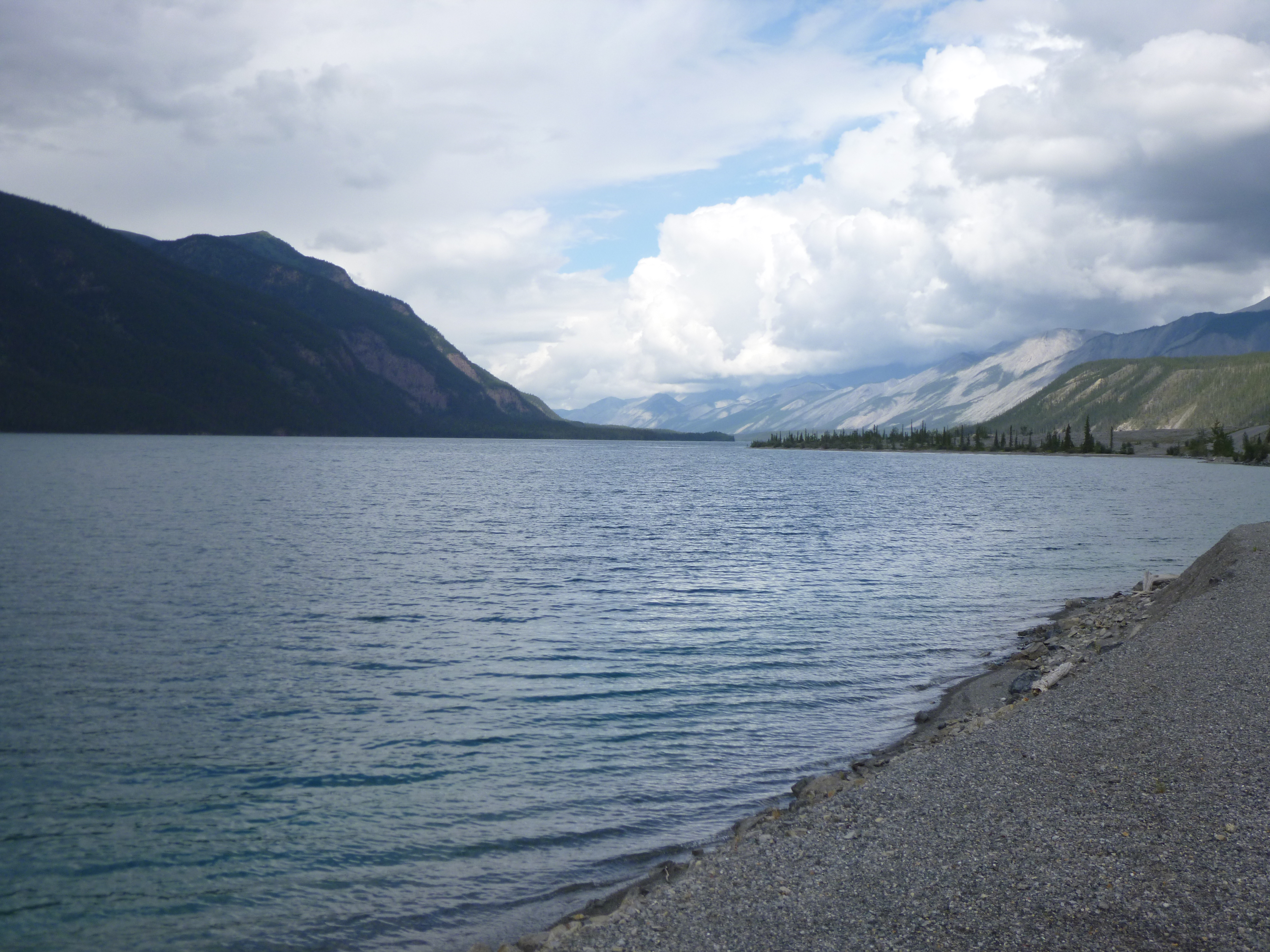Even though it was getting later, I was now so far north that it was deceptively light out for the time of day. I wanted to keep driving a little more because it seemed too light to stop. Around 10:00 I got near the town of Teslin, and the rain had temporarily stopped, and I went into the gas station/motel/campground/restaurant to ask about staying in the campground for the night – even though it was a little muddy. She told me I could just park the van out front and stay for free as long as I didn’t block the fuel pumps, but I wanted to be able to set up the air mattress and all, and would have felt funny doing that by the motel porch, so I told her I would prefer to pay for a campsite with a picnic table so I didn’t have to set things in the mud. Once again, I got things set up pretty fast, and they had a nice showerhouse, so I took advantage of that, and it began to rain again. But I really enjoyed falling asleep listening to the rain on the roof of the van, knowing I was warm and dry for the night. But it was very strange to have daylight so late, and I had to cover my eyes to sleep – it never got totally dark.