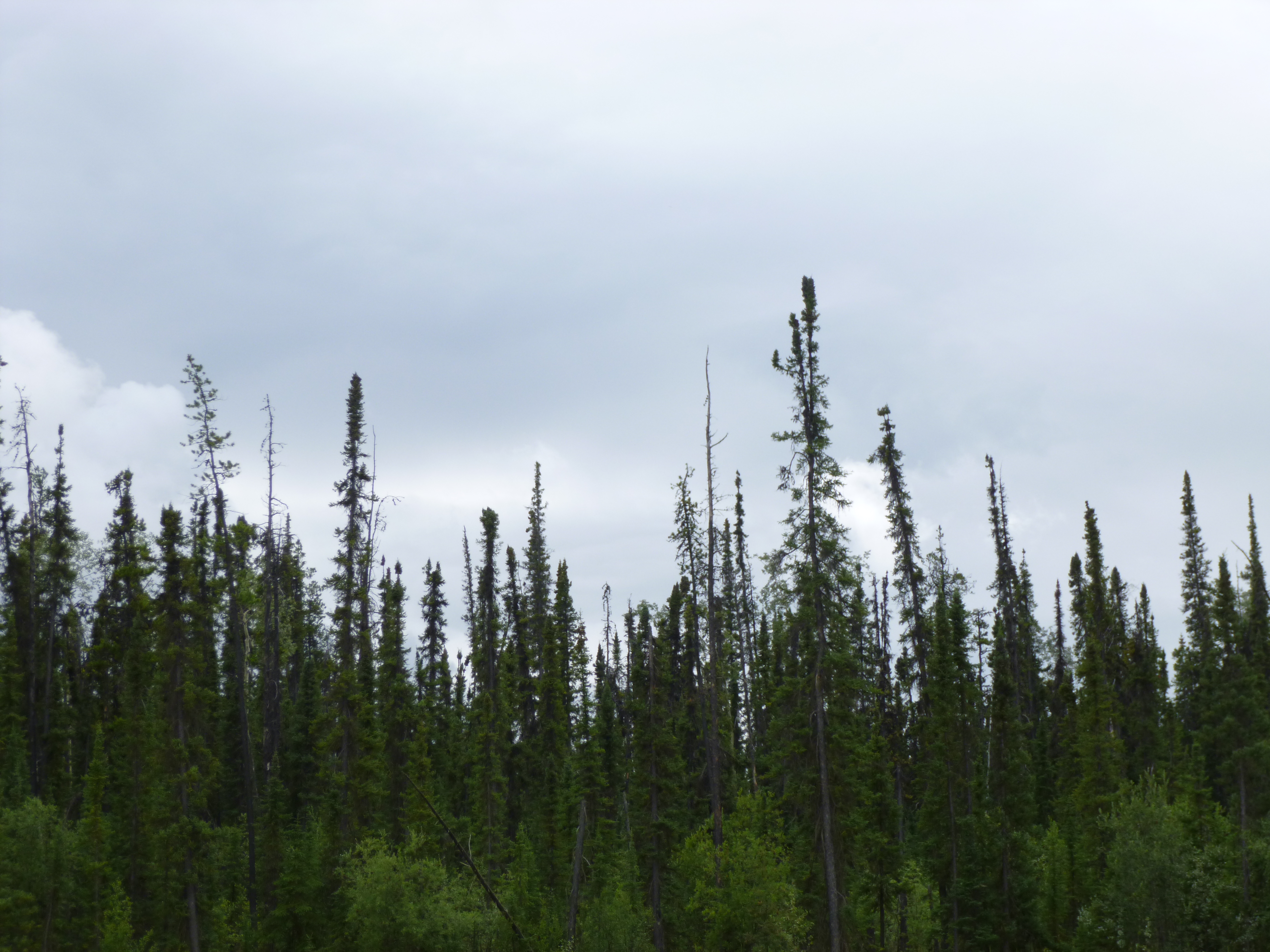 Parts of the Alaska Highway are in pretty rough shape – there is construction work going on in places, and simply signs in other places – when they have warning signs about loose stones, they don’t just mean loose stones, they mean the pavement is totally gone for 10-12 miles. And there would be big patches of pavement missing here and there. I’m sure all the freezing and thawing is tough on any kind of pavement. It rained most of the afternoon, and needless to say, the parts of the road without pavement were a muddy mess, and the van began to look like I’d had some off-road adventures with it. Then the rain would come down so hard that it would clean most of the mud off.