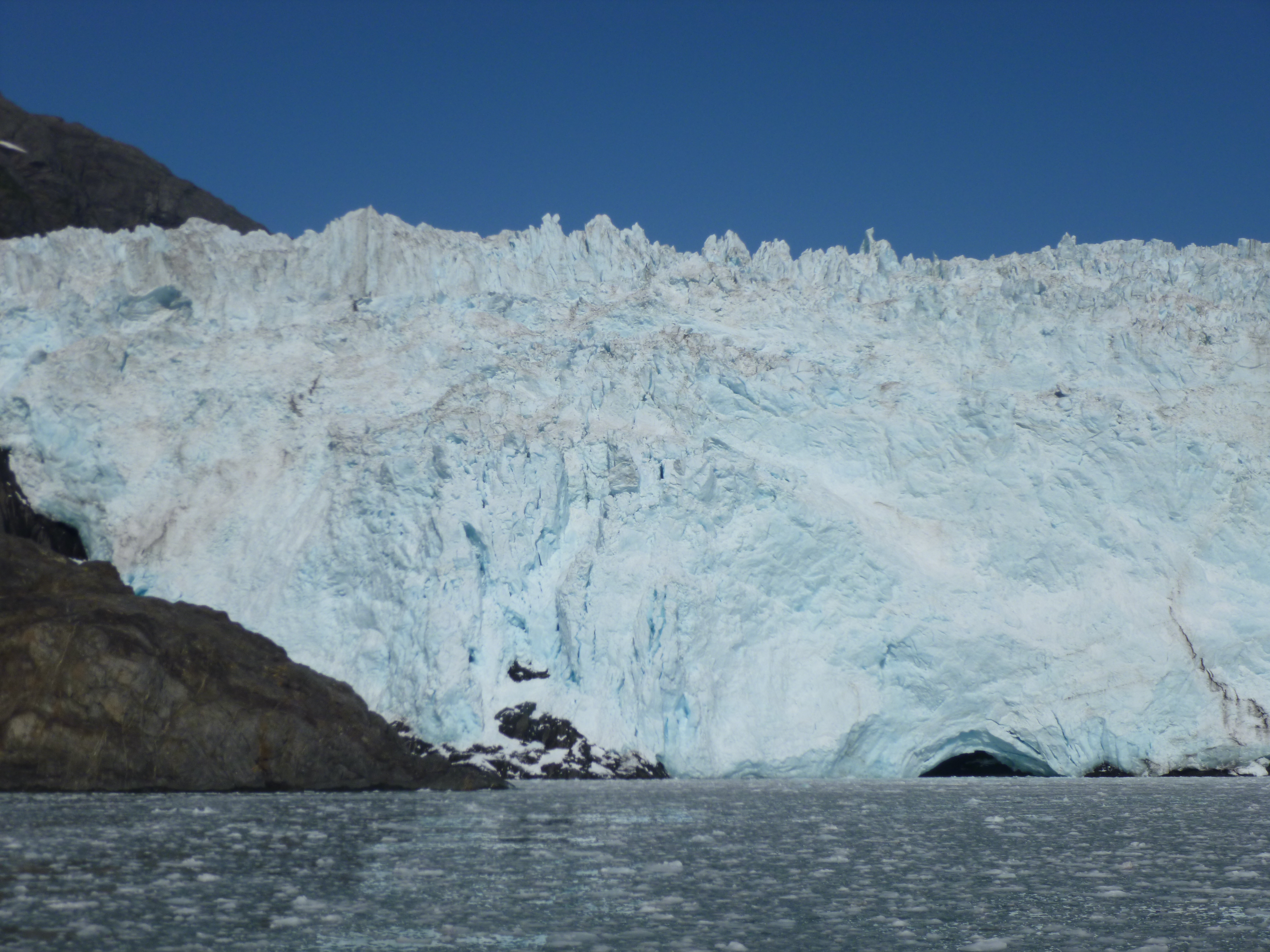 I got up early and was out of the campground a little before 7. It was a very chilly morning, but that was good – Tula will be perfectly comfortable in the van for several hours while I’m out on the boat. I packed some snacks and water, and a hat and gloves – it was going to be even chillier on the water. This boat trip was headed for Holgate Glacier, and it was a small enough boat that it was going to be an up-close visit. And there is always the hope of seeing whales and dolphins and other marine life on the way!