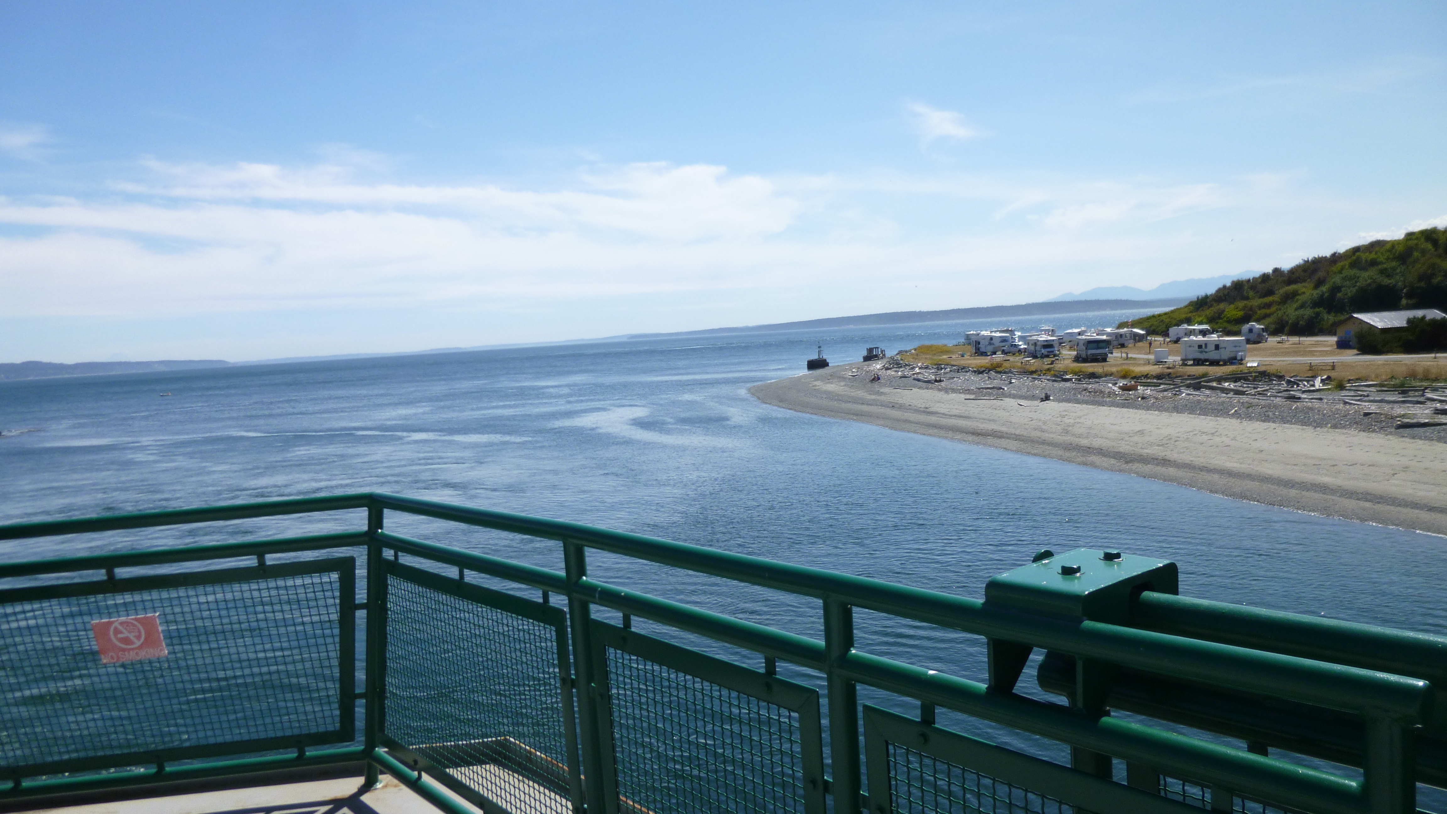 Tula and I took a short walk around the campground, then I made some oatmeal (complete with blueberries, walnuts, cinnamon and nutmeg) and packed up. We walked another mile down by one of the beach area before leaving the state park. I wanted to find out a little more about the ferry system throughout Puget Sound, and managed to get a human being on the phone, and he explained the different routes and times. I made a reservation to take the ferry from Whidbey Island to the Olympic Peninsula part of Washington mid-afternoon, knowing there were later ferries in case I missed my time.