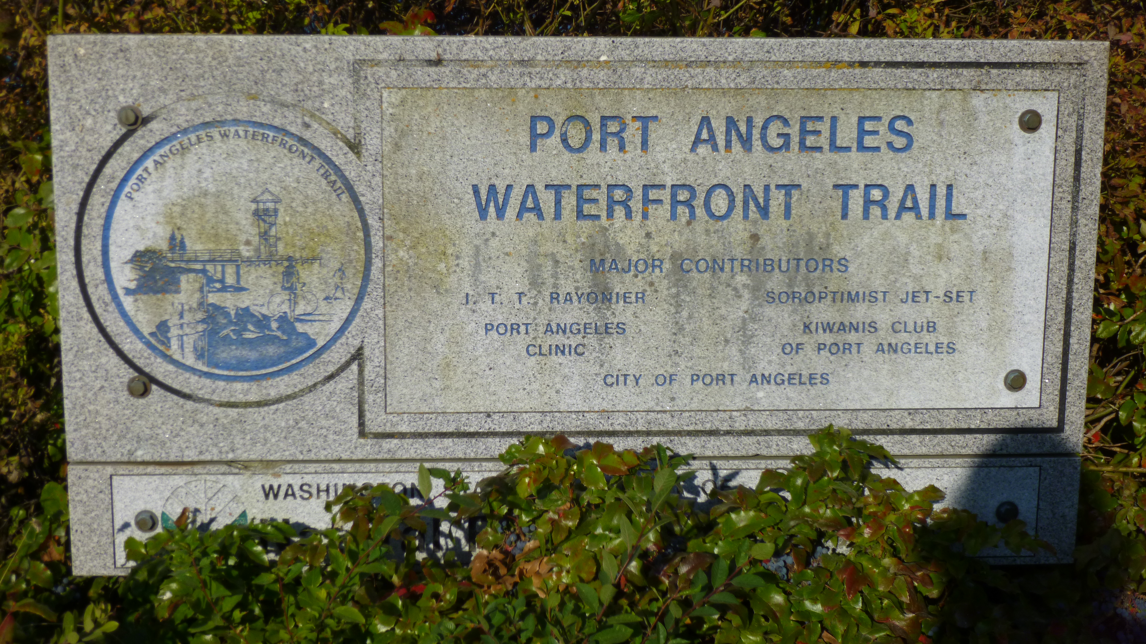 Then I headed west along the waterfront to the town of Port Angeles, where I decided to stop for the night. The next small town was far away around the peninsula, and both the motel and campground there were full, so I figured I better stop while I could find a place. After I got checked in, Tula and I headed down to the waterfront, where we found a bike trail, and walked 3 more miles to finish off our walking for the day. Port Angeles can be a busy place – it was quiet this time of day – but the ferries run back and forth between the U.S. and Canada, so there are customs and immigration offices by the docks, and a number of freighters and pleasure boats out – it’s all about the water in this town!