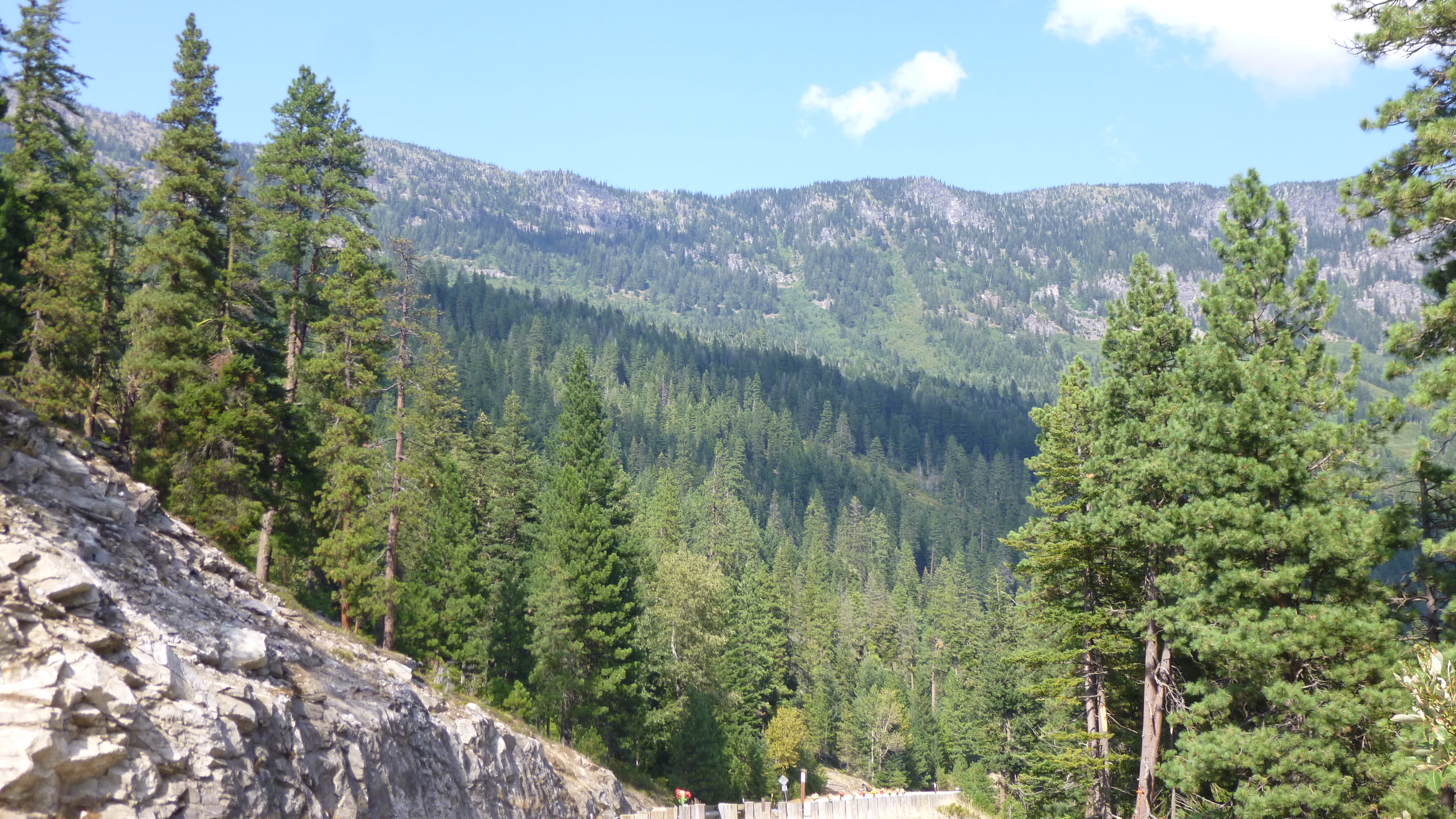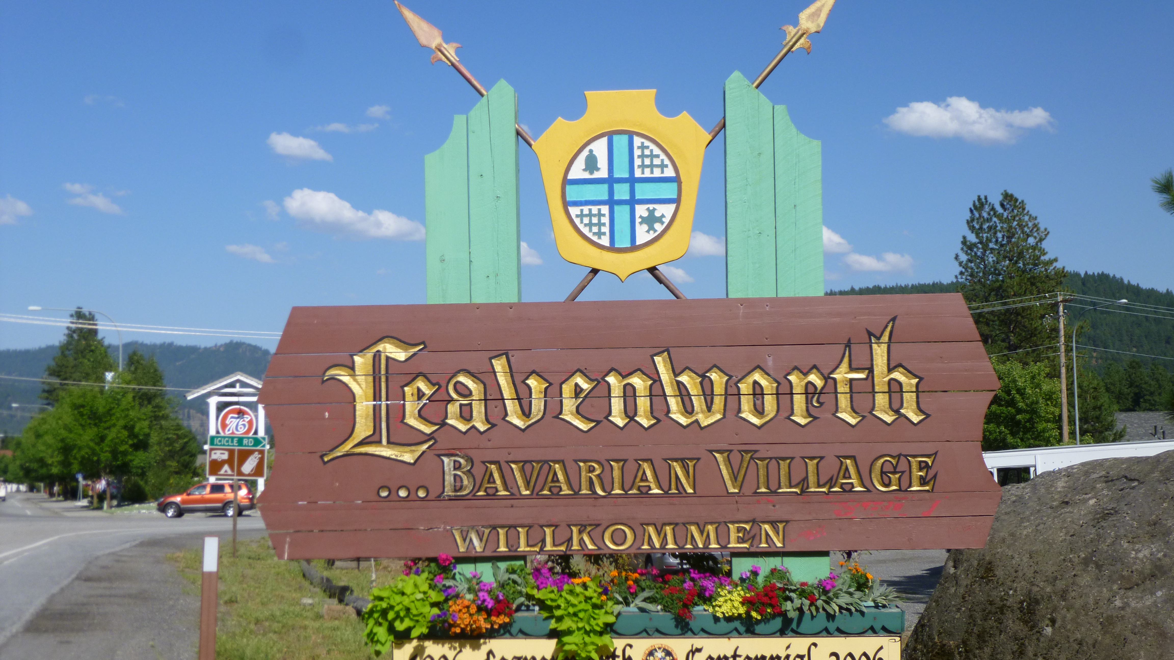 Christy headed off to work first thing in the morning, and it took me a while to finish up some computer stuff and my laundry and then I packed up. By then a couple of the boys were up, so we chatted for a while – I wasn’t in a rush to leave! When I did finally get going, I headed back to the cute little town of Issaquah where we’d made the school supply donation yesterday because I wanted to do some walking there. Tula and I set off through town, and then found a nice shady bike path and we covered almost 3 miles. From there I headed a little north to pick up a scenic road heading east – through national forests and mountains. We drove for a couple hours and came to the town of Leavenworth, which resembles a Bavarian Village in the Alps, complete with flowers in window boxes. I was going to be making my donation here today at a place called the Community Cupboard, which is part of the Upper Valley MEND (Meeting Each Need with Dignity). I had called to see if there were any items in particular that they needed, and the lady told me they could use cereal, juice, peanut butter and tuna, so I found a grocery store outside of town and shopped for those items. Then I found the food pantry, which was located inside a thrift store, which also helps support the pantry. Even this building was painted with a Bavarian theme. Once I was done with the donation, Tula and I walked all around town, and then found some trails in the woods across the river. Then I walked through town again – it was fun to just enjoy the European atmosphere and listen to the clip-clop of some horse-drawn buggies. There was even some oom-pah music in the park. Altogether we walked a little over 4 miles in Leavenworth.