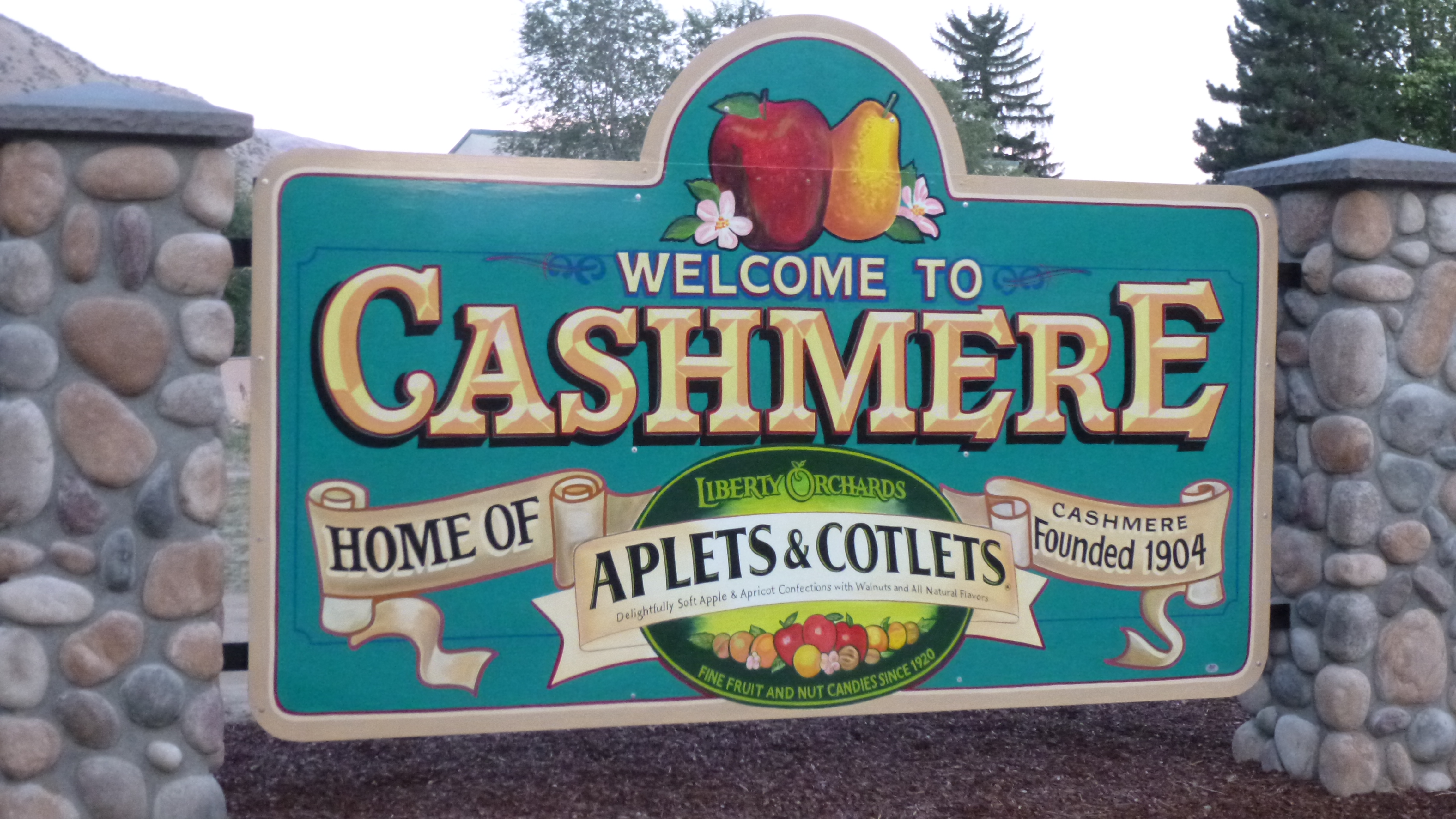 Then I continued driving east to Cashmere, which seemed more like an old-west town with its covered wooden sidewalks – quite a contrast from the Bavarian town of Leavenwort! Cashmere’s claim to fame is the production of Aplets and Cotlets, candies which I had never heard of before. From what I understand, they’re sort of jelly-like candies – aplets are apple flavored, and cotlets are apricot flavored. Free tours are offered in the factory, but it was too late for that! I finished off my walking for the day in Cashmere, and drove about 10 more miles in the fading light to Wenatchee, where I stopped for the night.