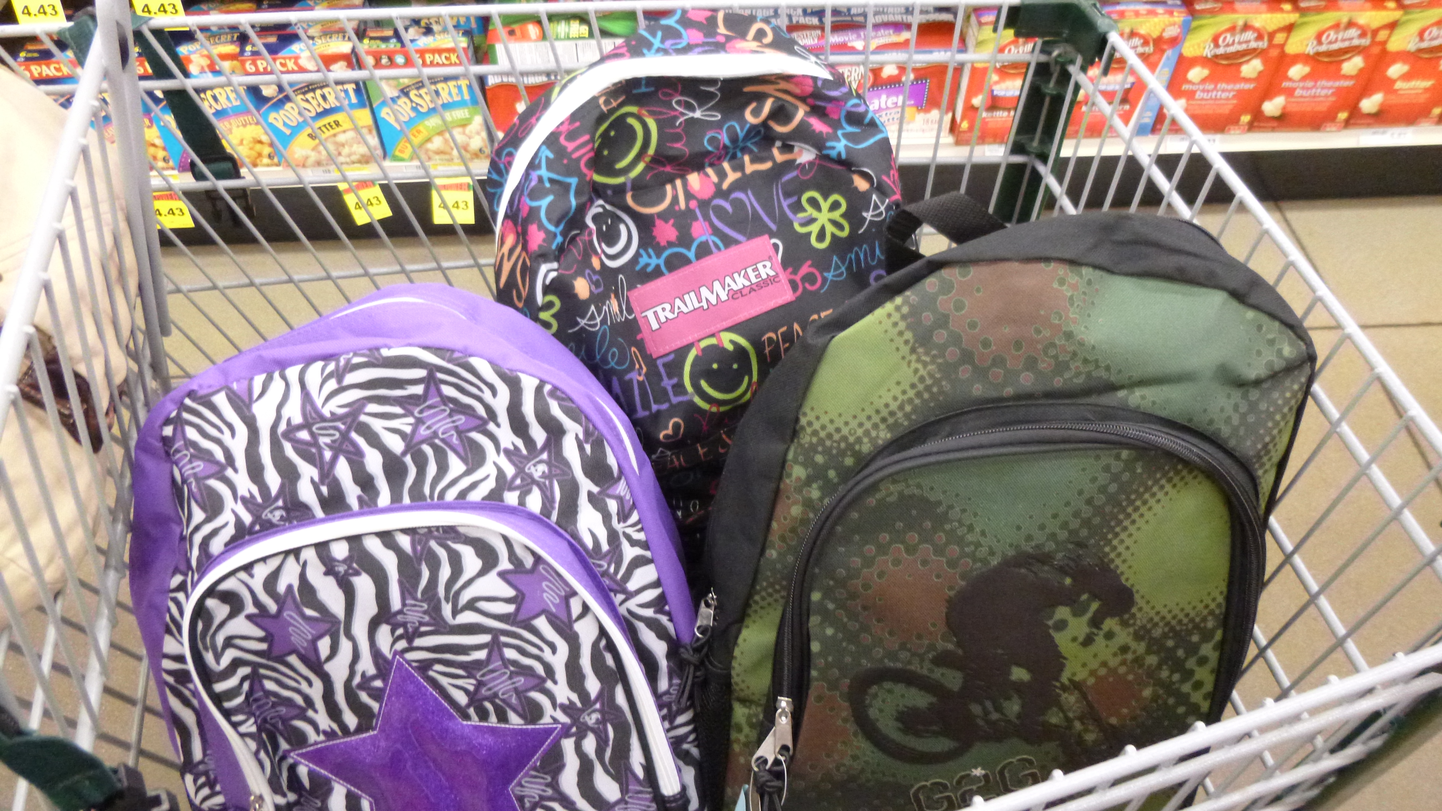 After I packed up our campsite, Tula and I headed back to Sandpoint. There was still some walking I wanted to do there, plus I had already called the Bonner Community Food Center to see what they might need. The guy I talked to said cereal disappears off the shelves almost as fast as it comes in, so he suggested maybe getting some cereal and milk. I found a grocery store and filled up the cart with a variety of cereal, and quart and half-gallon containers of milk. While I was shopping, I ran across another donation opportunity. The grocery store had a table full of new backpacks that were loaded with school supplies, and people could buy them for $20 each, and donate them to the store, which in turn would pass them along to one of the organizations that help make sure students have everything they need. I couldn’t resist! I always liked getting school supplies, and I even peeked in the bags to see what all was in them, and they were well stocked. So after I got the cereal and milk, I went back for 3 backpacks, and they were set aside with some others to eventually go to a student who needs it.