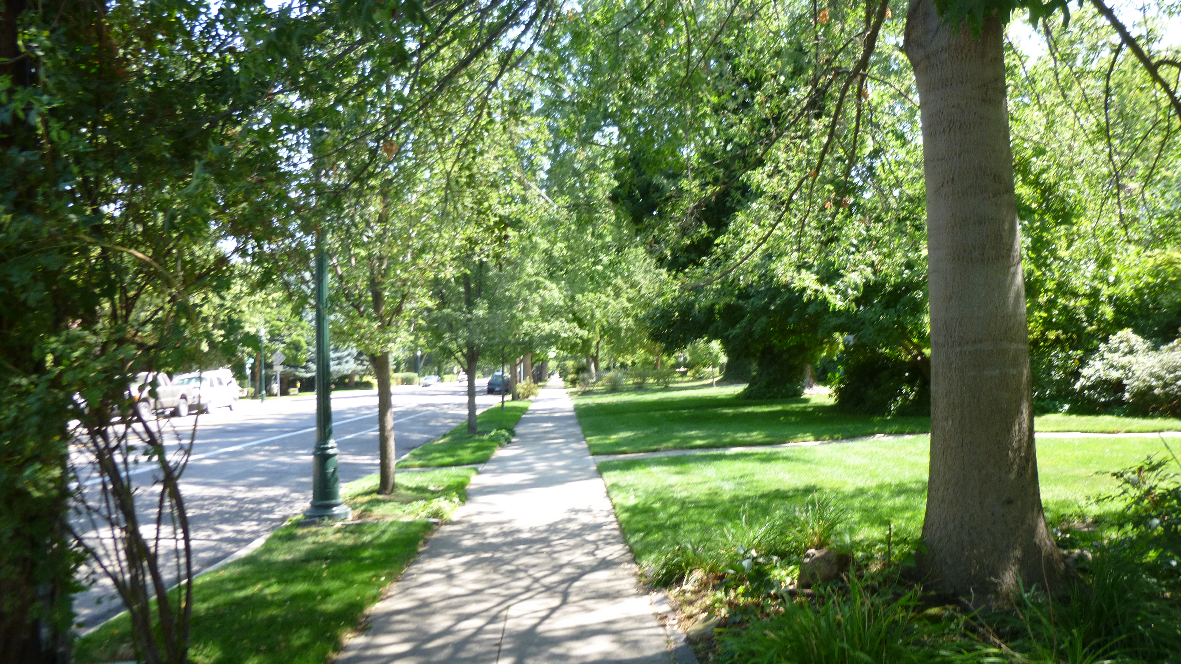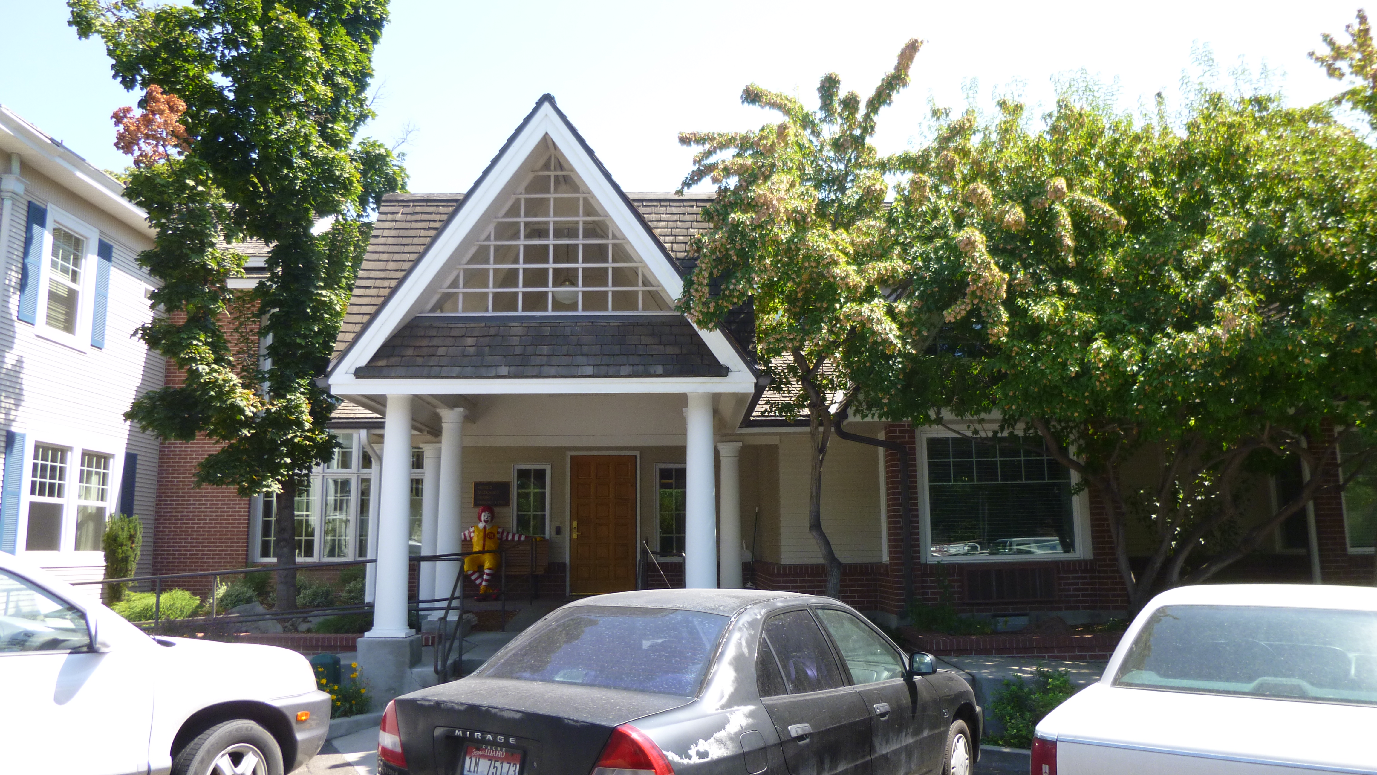 So I stuck with my original plan for today, which was to make a donation to the Ronald McDonald House in Boise. Their website had a wish list of items they needed, and it said that individual snack size items were most needed at the moment. So I found a grocery store and got granola bars, fruit snacks, nutrigrain bars, peanut butter and crackers, and applesauce cups. They also really needed laundry detergent and dryer sheets so I got some of that too. Then I finished driving to Boise, and found the Ronald McDonald House. There I met Ingrid and a couple other volunteers, and they were very appreciative of the donation, and Ingrid gave me a tour through the whole house. The house was built somewhere around the turn of the century, and was a private residence (a big one!) for a long time, and then was given to the Ronald McDonald House. Although the house has been updated, and they were able to add on to it for more bedrooms, it still retains its elegant old-style charm. There are hot springs south of town a ways, and the original hot water radiators still work so they’re able to save some money on heating bills. It’s very welcoming and cozy, and the unoccupied bedrooms we were able to look at are furnished with cribs if needed, and private bathrooms and there are lots of little home-like details to try to make it as comfortable as possible for the families who are dealing with some critically ill children. The kitchen has 2 stoves and refrigerators, and washers and dryers, and the second floor also has a small kitchen and another washer and dryer. People are free to help themselves to any available food, and there’s usually homemade cookies and/or brownies on hand, which even visitors like me get π The length of time that people stay varies – it can be a couple of months while their kids are in treatment, and one family even stayed for nearly a year as their child battled leukemia. Although I’ve made donations to a couple other Ronald McDonald Houses, this was the first time I got to take a little tour through the whole house. And Ingrid suggested a couple good walking places – I knew about the greenway, and she suggested a street that had a lot of the old mansions from back when the town was first built.