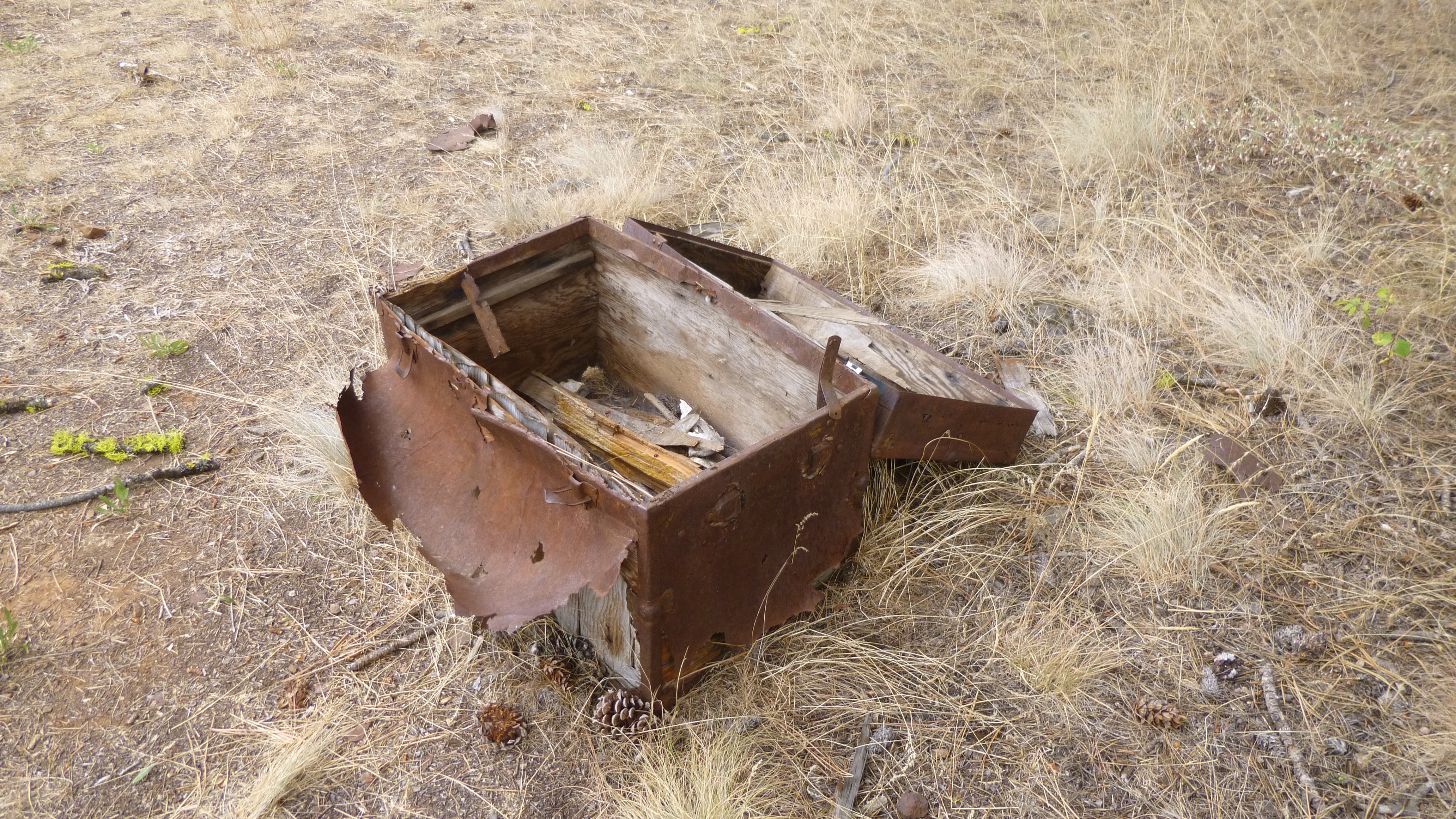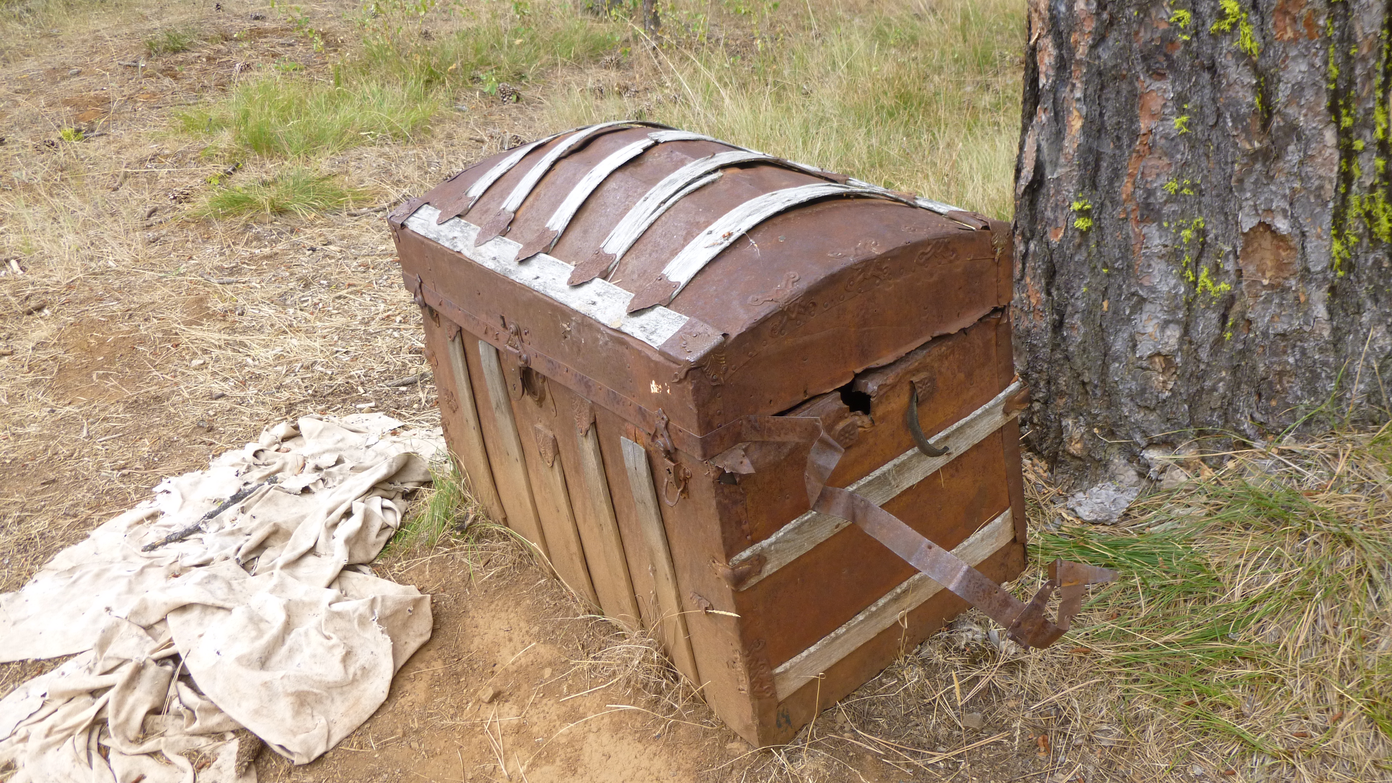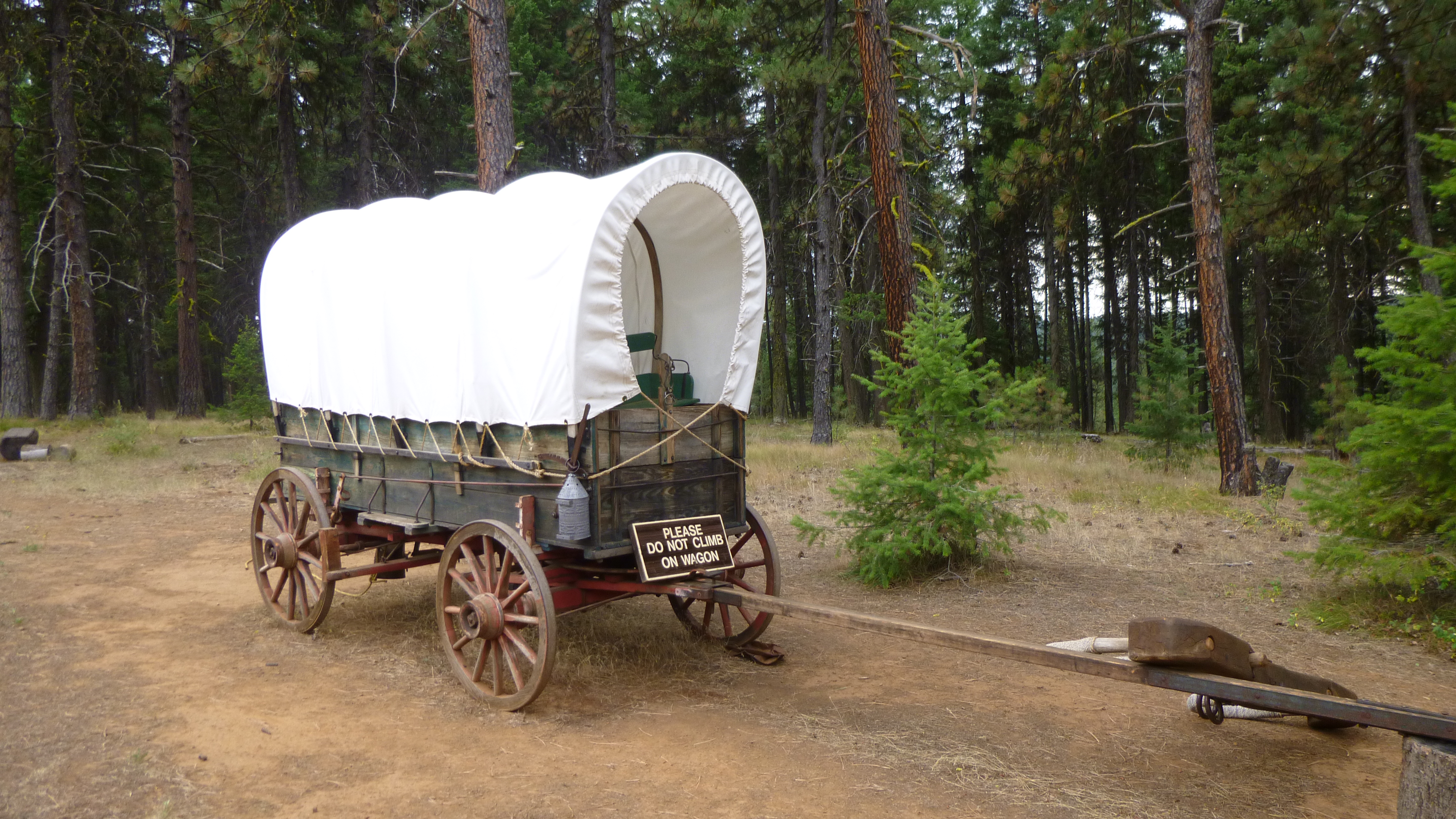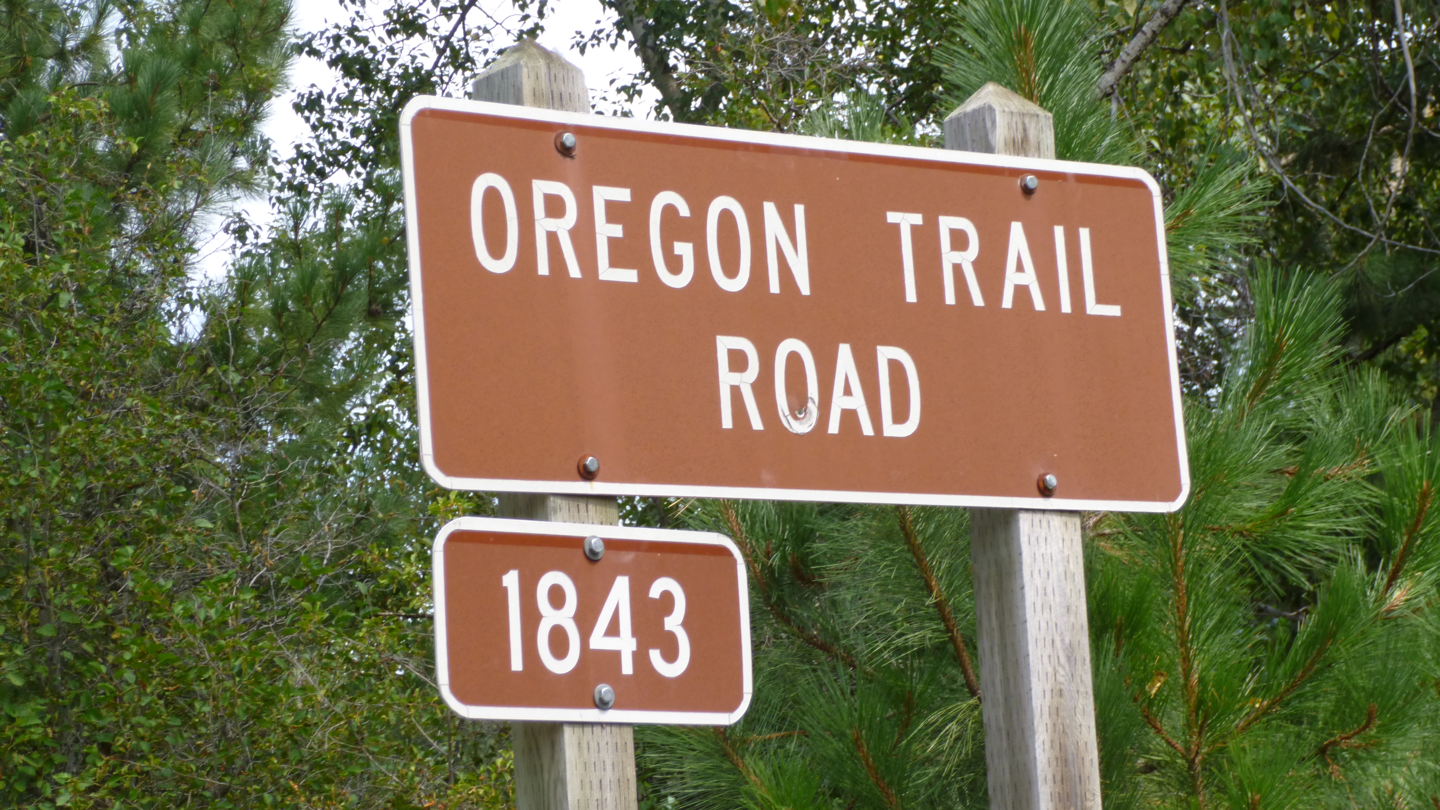 From there I continued northwest and stopped at another Oregon Trail Center. I walked 2 1/2 miles on all the paths and saw some more ruts. But the most interesting thing I saw was a pine tree that had been growing back in the pioneer days, and was still alive, with roots visibly scarred from the passing wagon wheels and their hubs. To be able to touch a root scarred by a covered wagon, and know the tree was alive then, and now, seems almost magical – a true connection to the past. I could also see how rocks were ground to small pieces by all the wagon wheels, and in one place there were some old cast-off trunks. The Oregon Trail followed paths originally used by Indians, then fur trappers. Then came the pioneers in their covered wagons, followed by stage coaches, trains and autos. And people are still following the route. There was a book in a waterproof box asking people to add their own travel story along the trail. I read some of the entries and then added mine – and wondered what the next mode of transportation will be.