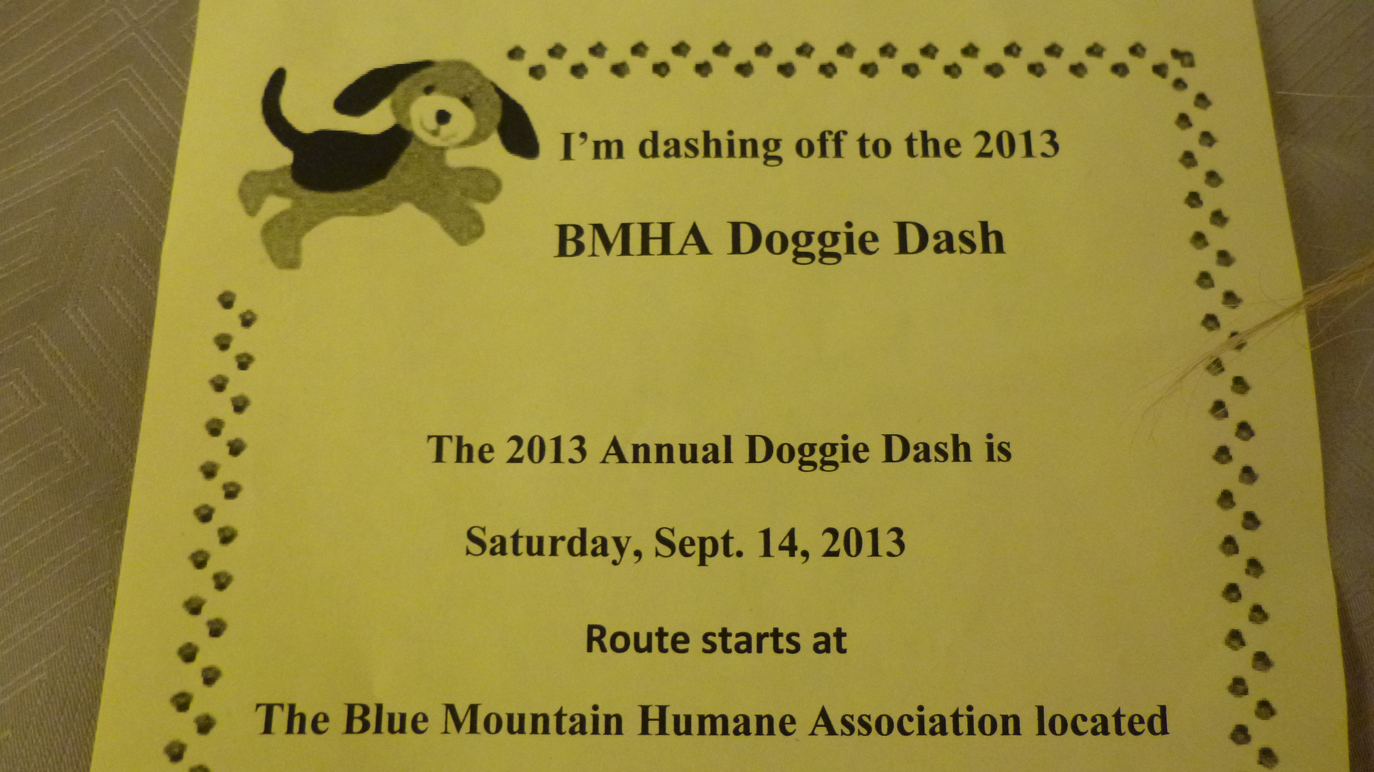 While we were out walking, I noticed several flyers in store windows about a Doggie Dash coming up that would benefit the local humane society. I decided to stop by the Blue Mountain Humane Society and make a donation to them even though Tula and I wouldn’t be around to participate in the Doggie Dash. It sounds like it’s a very popular event, and they work hard to adopt out as many animals as they can.