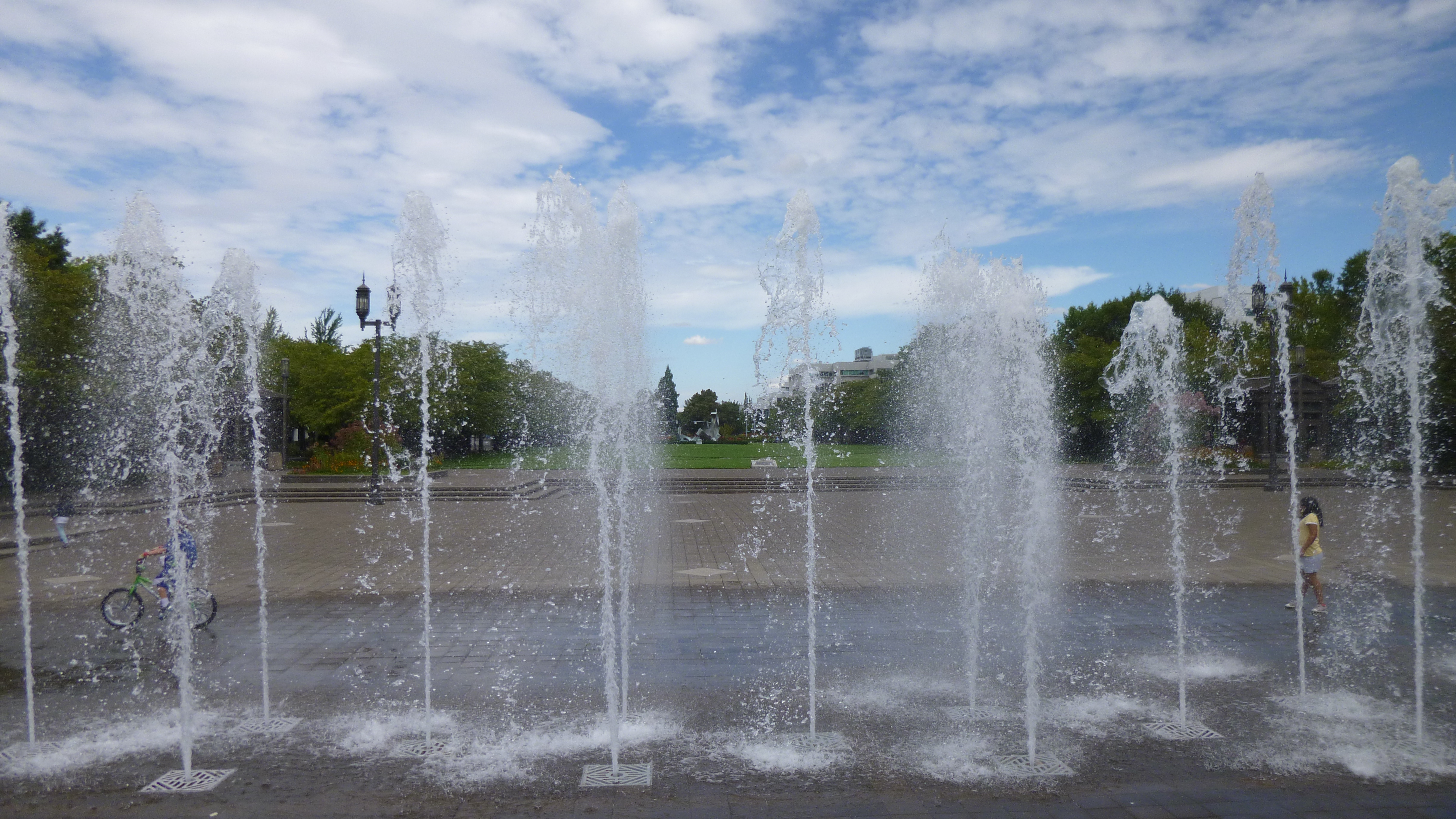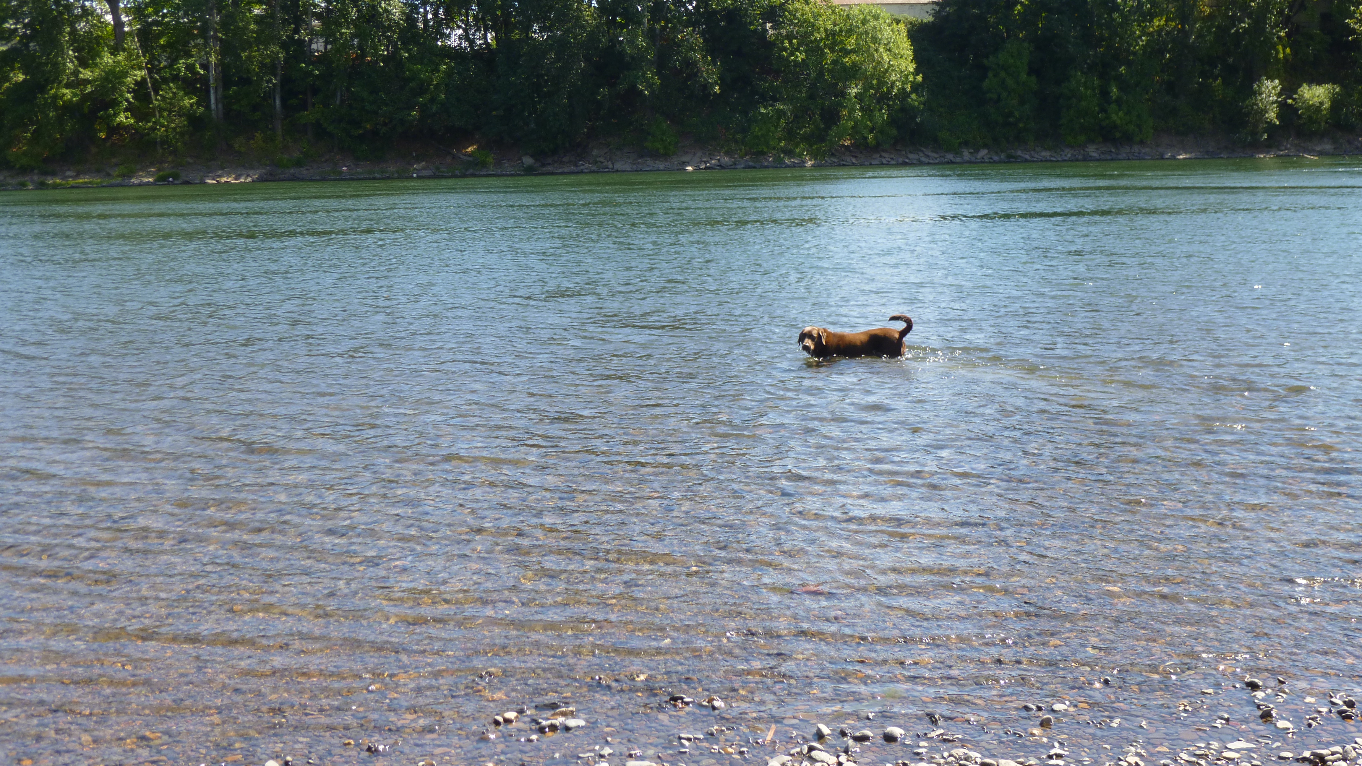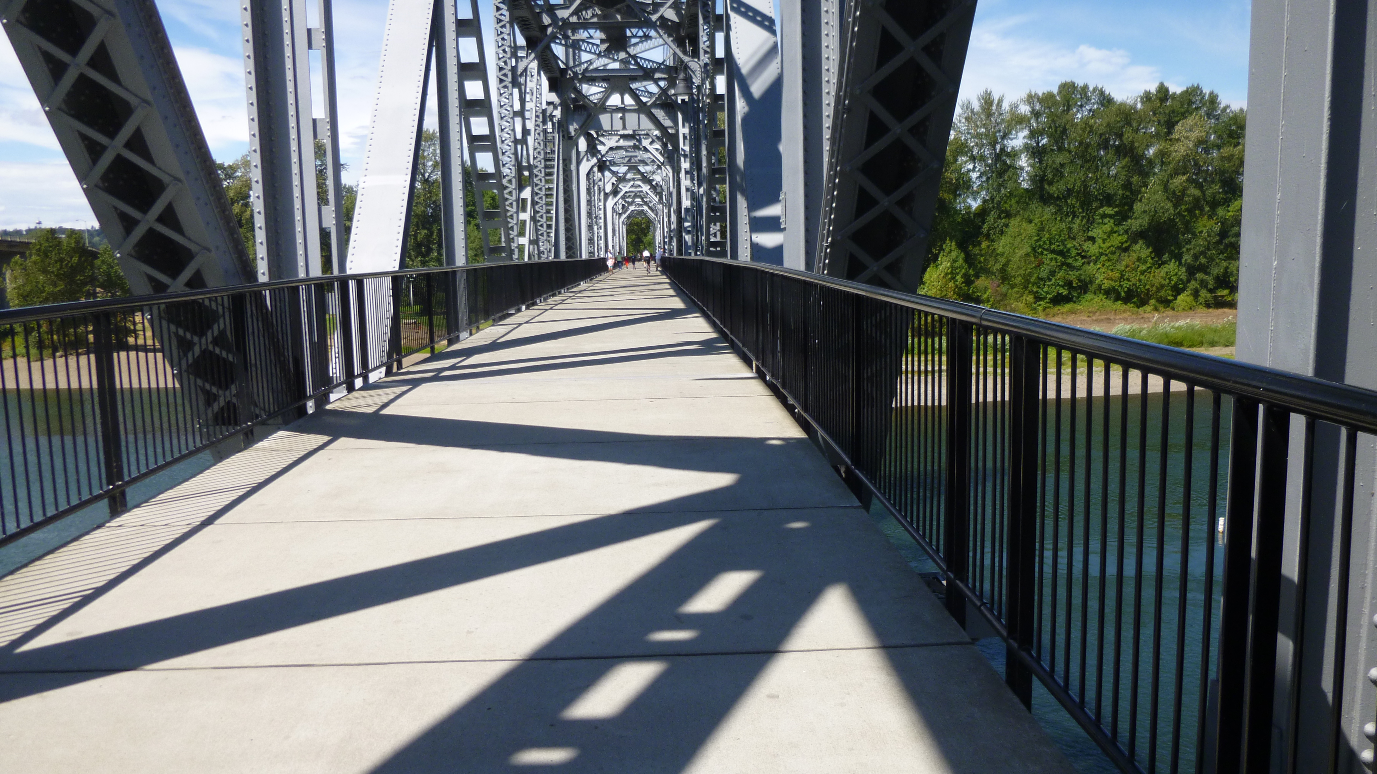 It was still a damp morning, but I got packed up and headed back to Salem to do a little walking before heading the rest of the way west to the coast. I had to stop for gas, and I finally saw one of the trucks that come to test and examine the gas to make sure it’s accurate while being pumped by the consumers. When we got to Salem, Tula and I started off with a walk on the river trail. After walking about a mile, we headed across the river on a pedestrian bridge that used to be an old train trestle. We made our way down to the water’s edge on the other side of the bridge, and Tula was happy to get in to take another swim. She also made friends with another dog that was swimming, and she was half wolf and half German shepherd, but she was really friendly. We walked along some paths in the woods, then headed back to the car. Salem is Oregon’s capital, and I drove through the city to see it. There was a beautiful state park across the street from the capital, and I walked around the capitol building and around the park. This capitol building looked kind of different from many others that I’ve seen – a bit more austere, but I didn’t see what it looked like inside.