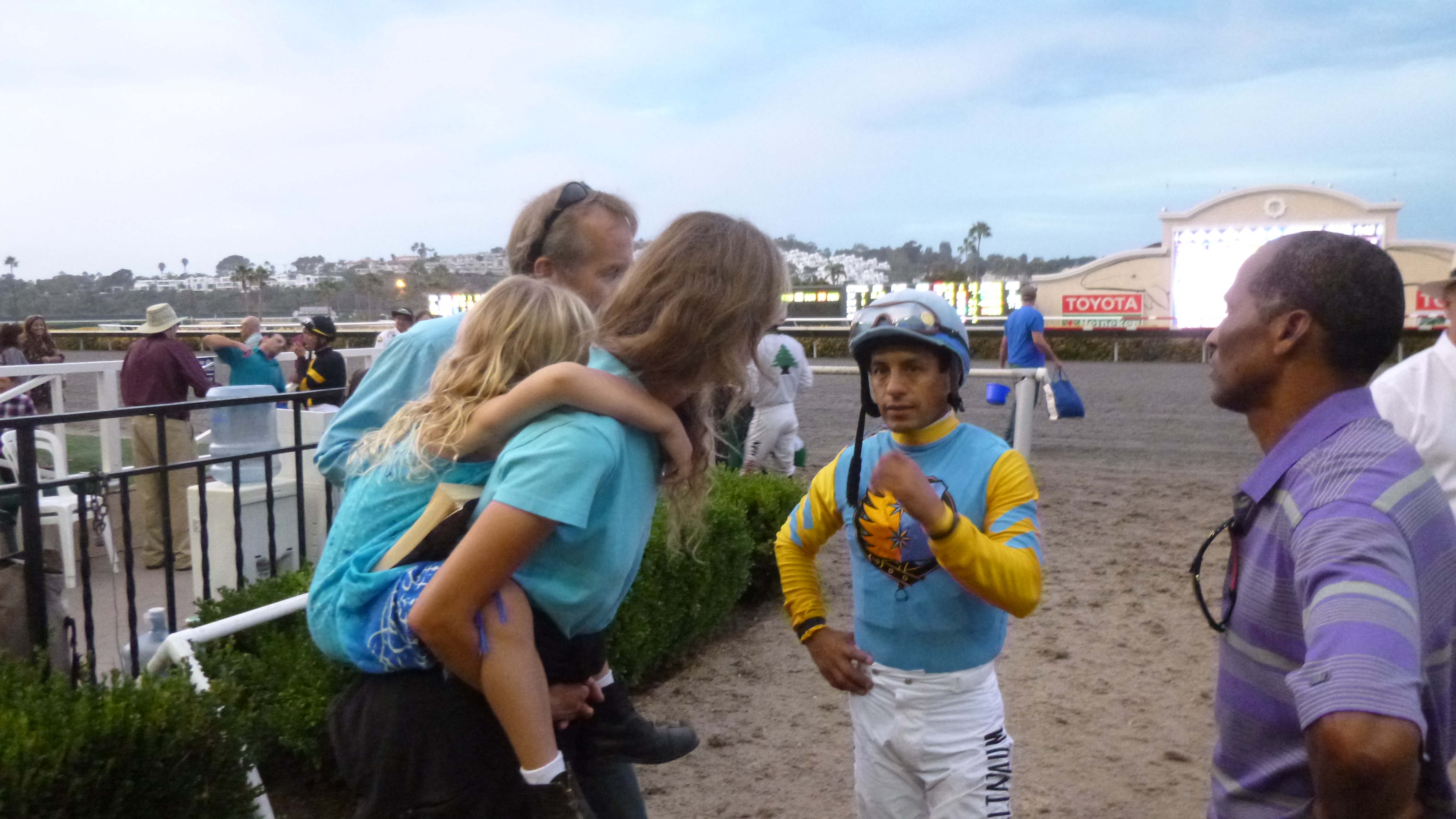 I went back to Erik’s house – they didn’t join us since they’ve been down to Seaport Village many times, plus they wanted a quiet afternoon at home since Keira starts school tomorrow. So they were just finishing up with some relaxing pool time, and then it was time to head to the racetrack again, since they had another horse racing. This colt was in a race with more experienced colts, but it was a good opportunity for him to run, so they decided to enter him. And I was happy to have another chance to see a race, since the one on Friday didn’t work out! Everything went smoothly, and their colt came in 4th against the more experienced ones, so once again they were happy with the outcome. So they had 2 successful races today! As we left the track, we saw a couple big horse vans, loading up horses to head to the next track for the next meet. We asked one of the drivers how many horses they can fit onto one of the big vans, and he told us 15, although they don’t usually like to have it that crowded. There are also planes that are equipped for horse travel for cross-country journeys – although it’s kind of hard to imagine what those look like, and how the horses manage take-offs and landings! We stopped for a bite of pizza, and had to get Keira back to get ready for her first day of first grade!