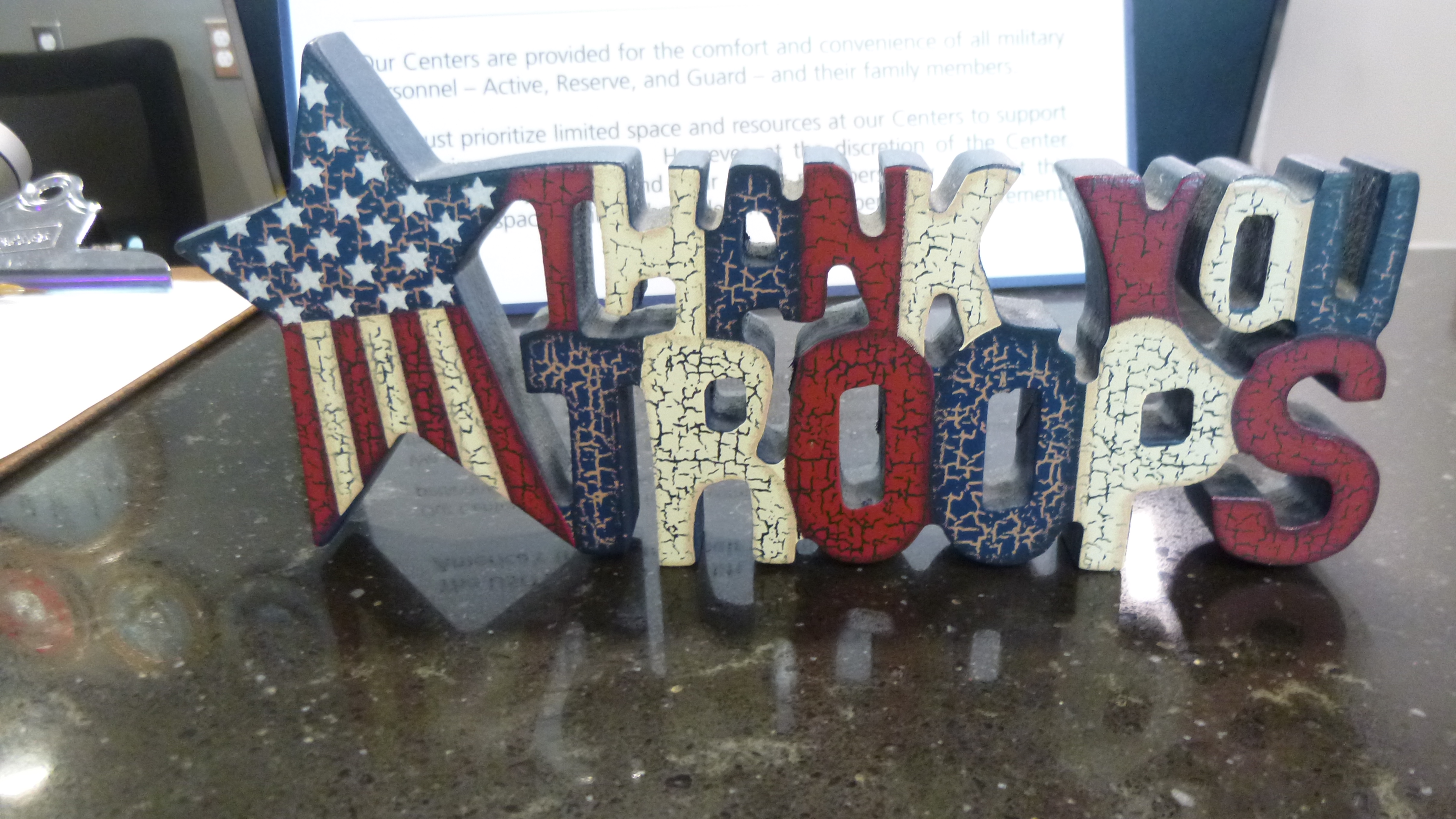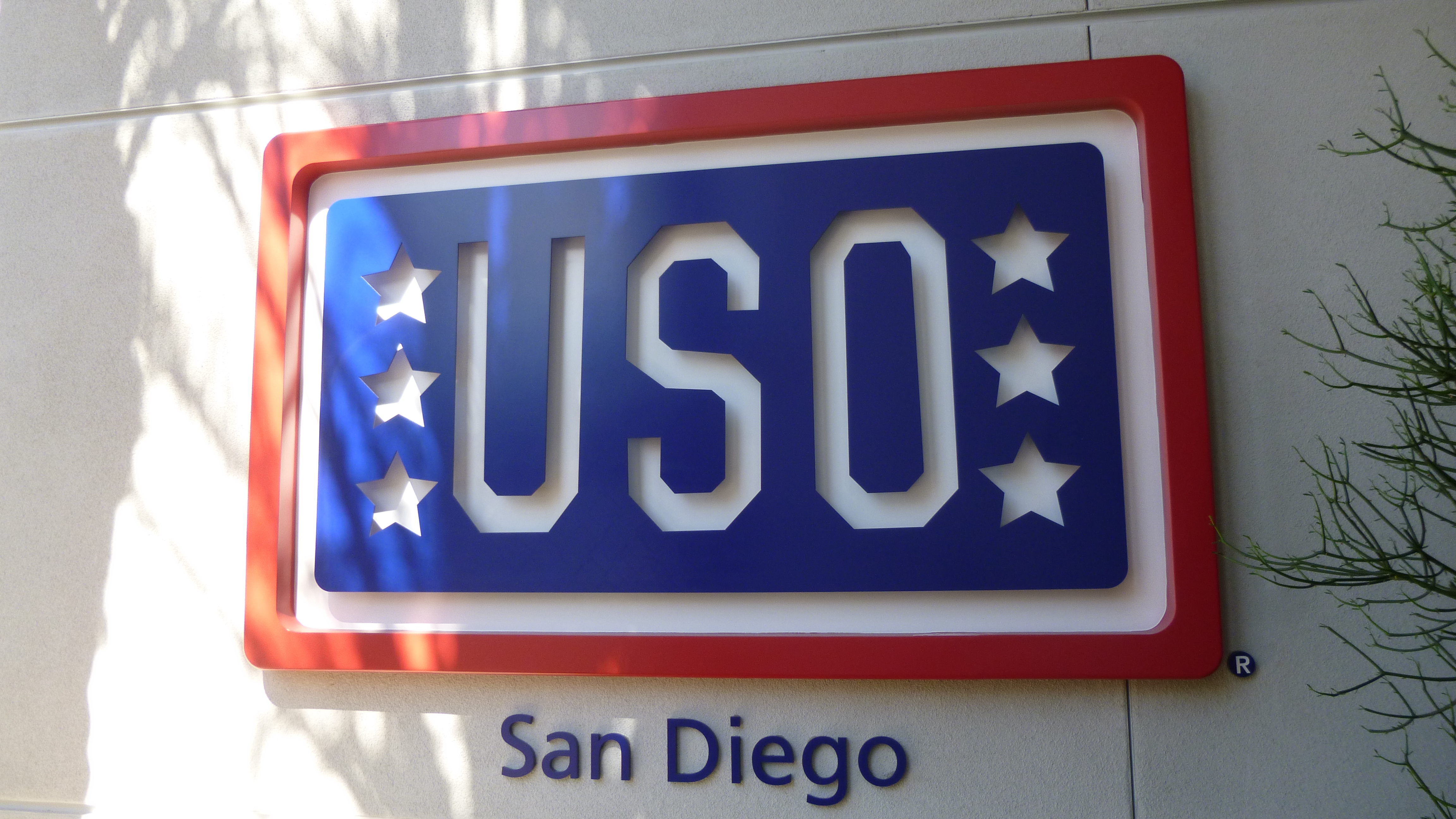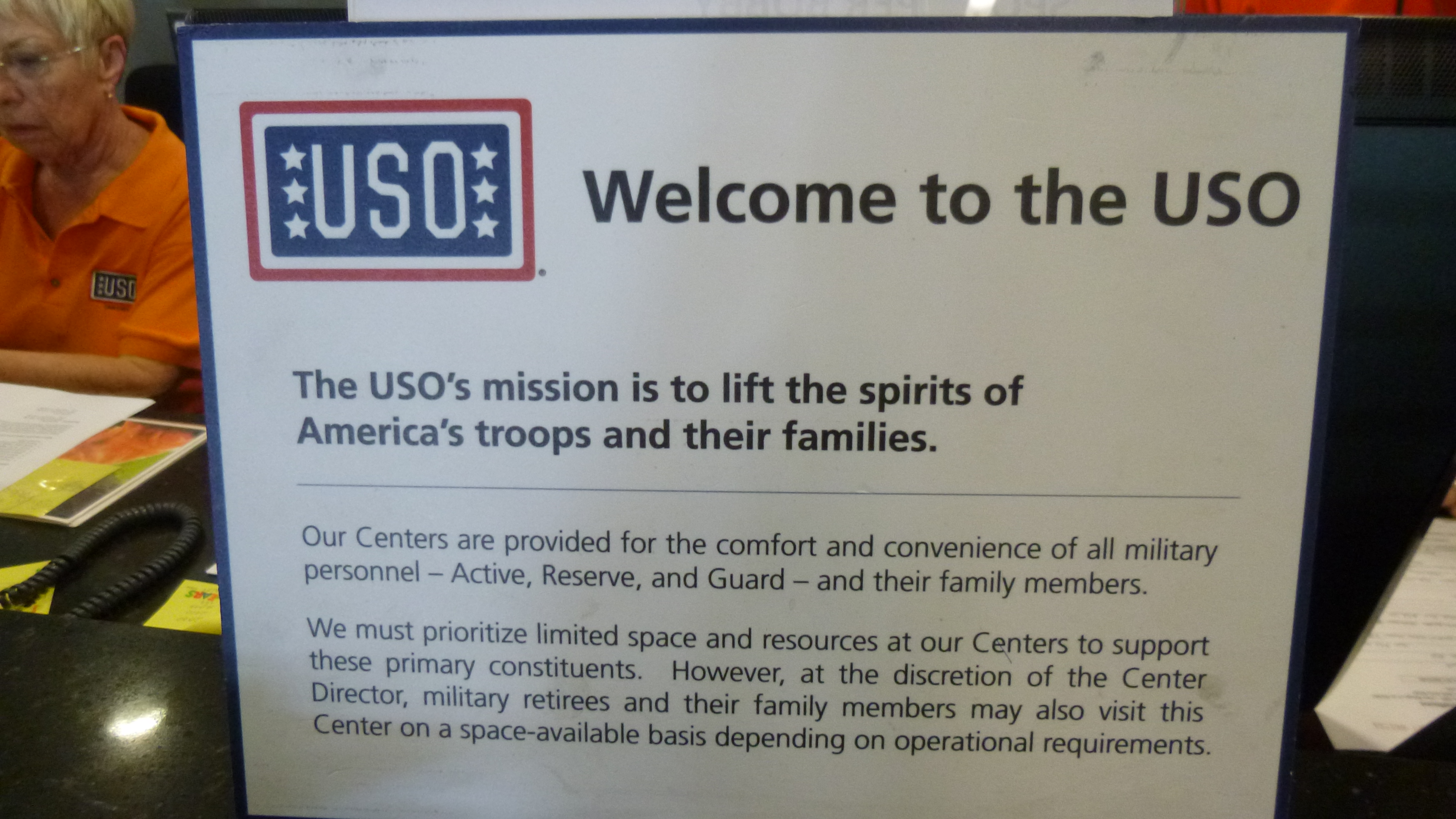 Then I had to take care of a few errands before making my way south to the San Diego airport, where I was going to make my donation to the USO. They recently expanded and moved into a new building, and are now the world’s biggest airport USO. Roughly 11,000 troops come through in a typical month, and last New Year’s Day alone, 1200 troops stopped by. Today was unusually quiet since it was the Tuesday after Labor Day, but there were still quite a few people around, including some fresh recruits who just arrived to start boot camp. Camp Pendleton is nearby, which is a Marine base, so most of the troops who visit this USO are marines. One of the volunteers had a small dog with her, and it was wearing a red, white and blue scarf. I thought it was just her pet, but it’s also a therapy dog for the USO. Another volunteer showed me and another lady around, and it was indeed a spacious facility. They have a storage room for bags and gear, a computer room, family room, lounge, and kitchen area with free food. Outside there’s a big patio complete with grill. It’s a comfortable place for all the troops passing through.
