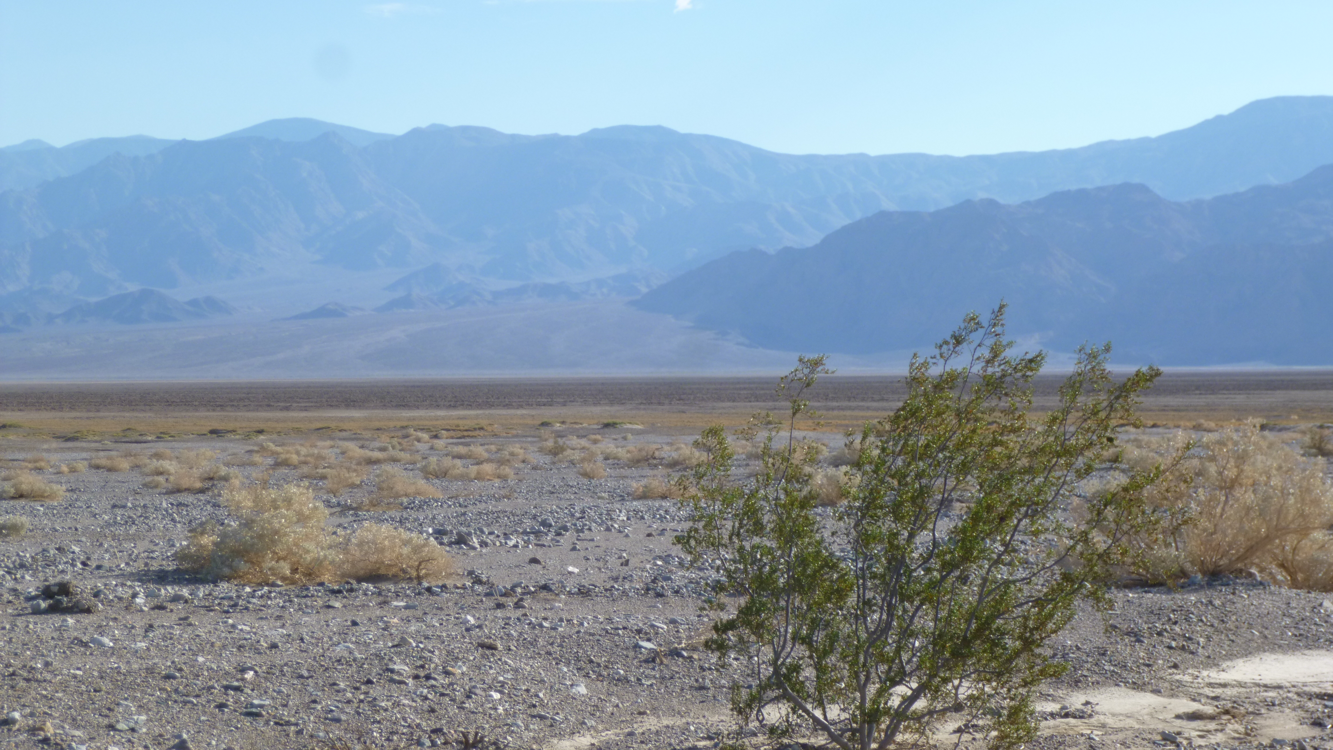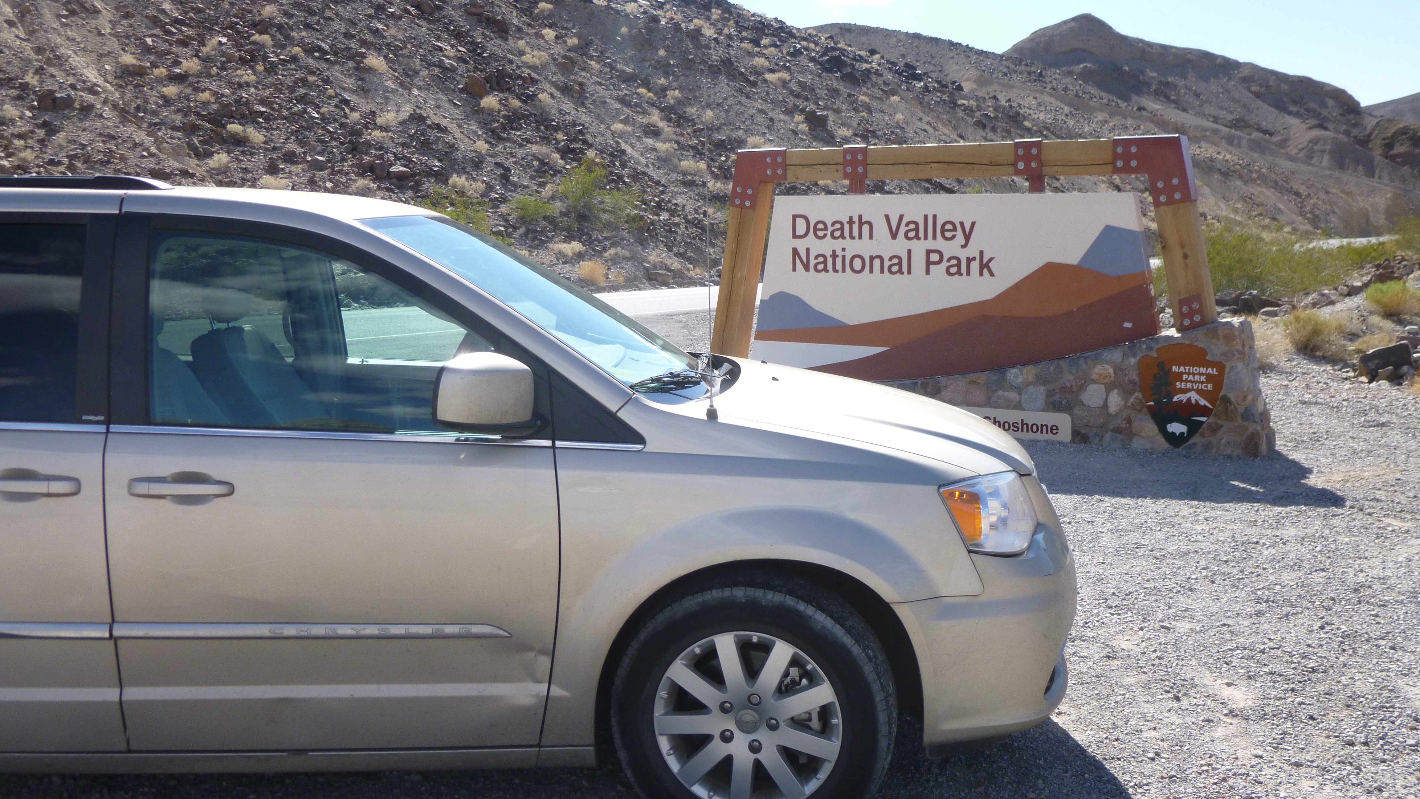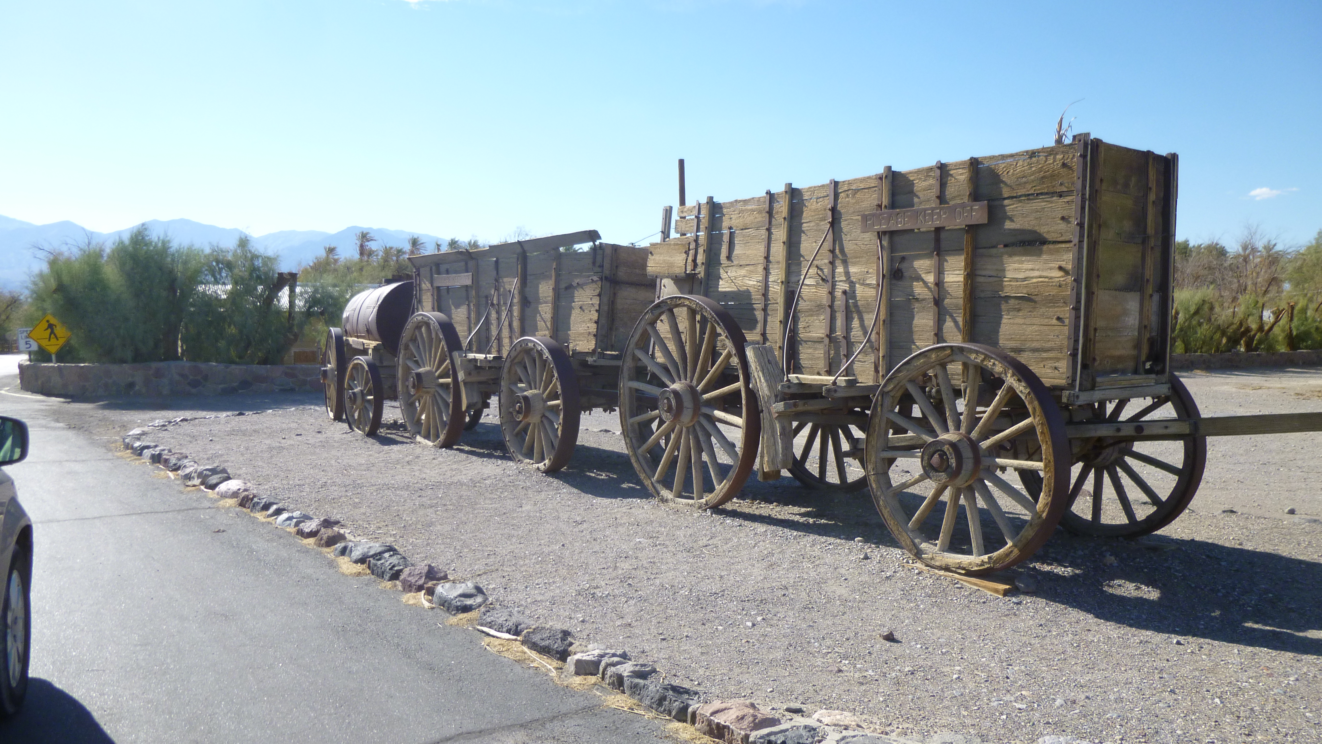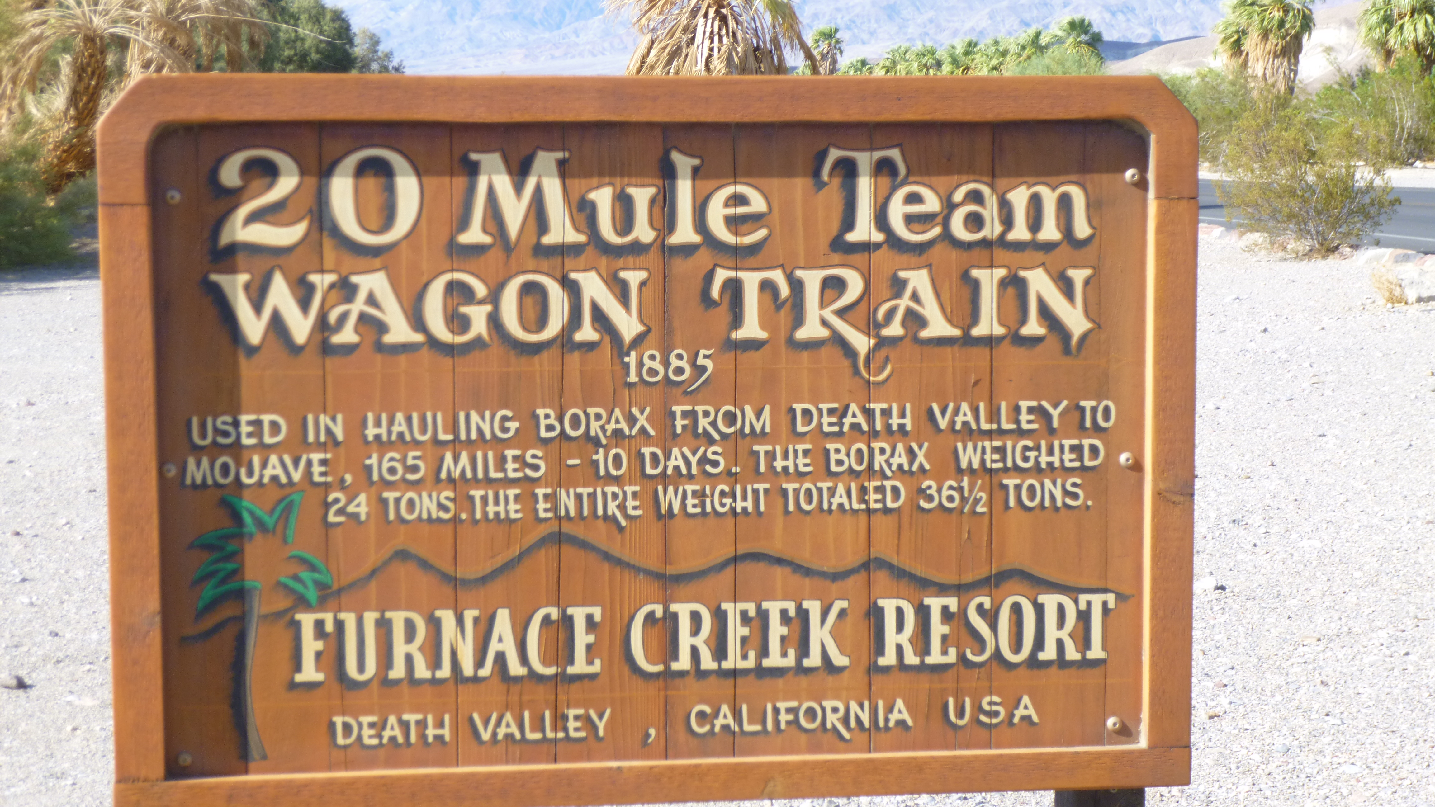 It was Friday, and a big Amway convention was getting underway in Vegas, along with some other big groups, so it was time to leave town and head northwest up toward Carson City. It was still hot out, so I found a park to walk Tula for a bit before getting into the car. We started driving across the desert, and eventually we were driving along the south side of “area 51” – an air force test site, and also one of the places that the military is rumored to have aliens – haha! The lone gas station/store/brothel along that part of the highway had an alien theme, and I just think it’s all really weird – I’ve never liked aliens. And I had the misfortune to stop by when a big tour bus stopped – I think everyone driving down the road stopped there! As I continued on, I saw signs pointing to Death Valley – the vast majority of Death Valley is in California, but there is a tiny bit of it in Nevada. I decided to duck down into California to drive through a short stretch of Death Valley. It was very hot, but I had plenty of gas in the car, and plenty of water for me and Tula, and most importantly, there was a fair amount of traffic so people were around in case of any car problems. I began the 3000′ descent down to the floor of Death Valley and I watched the temperature steadily rise from 104 degrees all the way up to 122 degrees, and even up to 123 for a few minutes. I stopped by an observation point (along with the same tour bus) and walked about 1/4 mile uphill to the vantage point – I’ve never felt that kind of heat before. I wouldn’t even let Tula out of the car in that heat. Death Valley is called the hottest place on earth, and on July 13 of this year, they set a record with 135 degree heat. Whew! The lowest part of the valley is a couple hundred feet below sea level. Down on the valley floor, there’s a resort called Furnace Creek Resort, and an RV campground, and a national park visitor center. I stopped by the visitor center and found enough shade to get Tula out for a few minutes. I can’t imagine who would want to come stay at a resort in that heat! There were some old train cars there and a sculpture of a mule train – back in the 1800s borax was mined in Death Valley and had to be hauled 165 miles to Mojave and they used mule trains to do that.