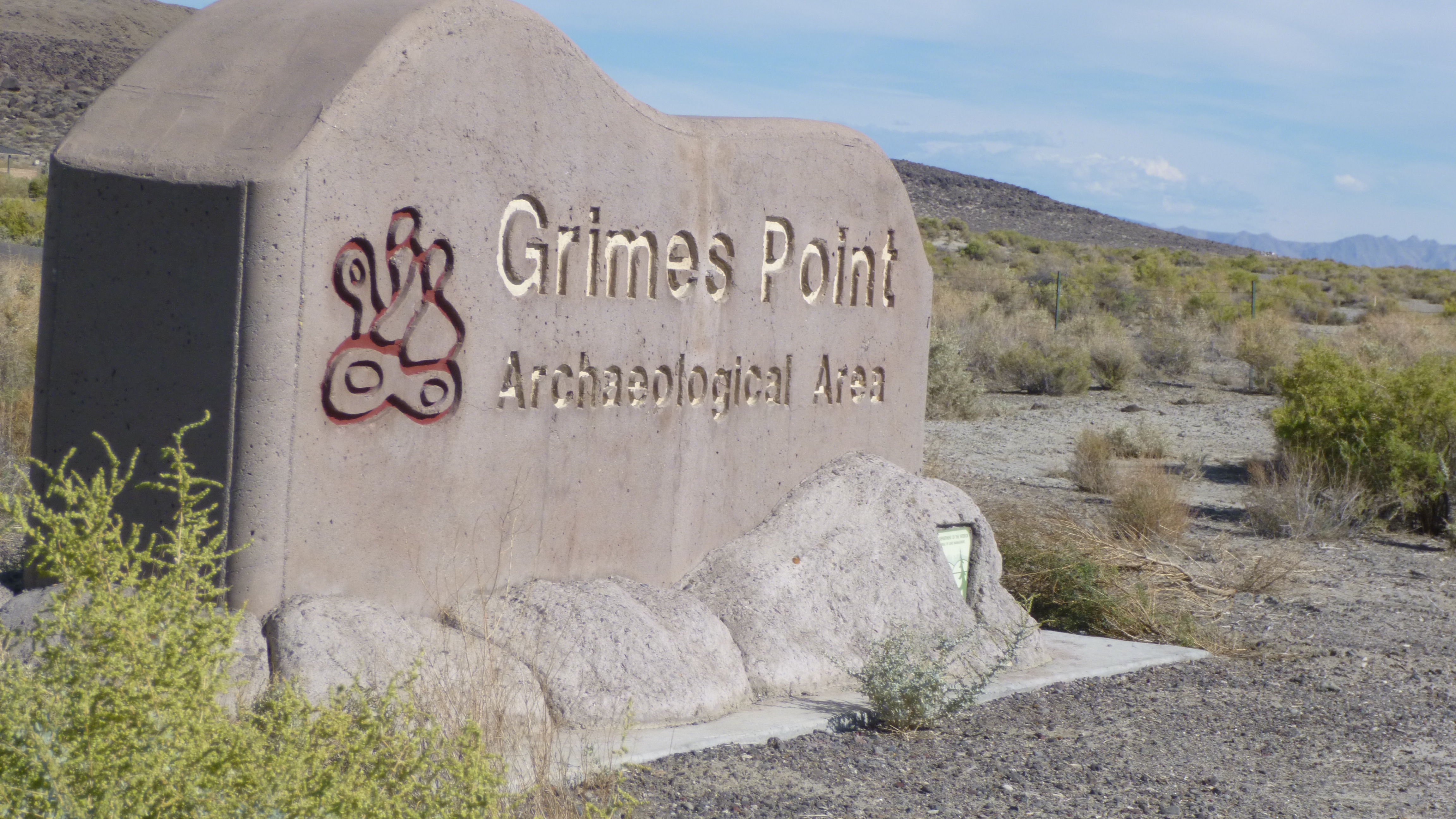 From west to east, the first town to get a passport stamp in is Fernley. I was supposed to be able to get the passport book at the Chamber of Commerce, but they were closed. So Tula and I set out for a walk, and after we finished the office was open, so I got the book and the first stamp. We moved on to the next town with was Fallon, and I got the passport stamped at the little local museum. I did another mile of walking in Fallon while Tula waited in the car – it was a pretty hot day out. Just east of Fallon I came to the Grimes Point Archeological Area, and walked on the desert trails to see some ancient petroglyphs.