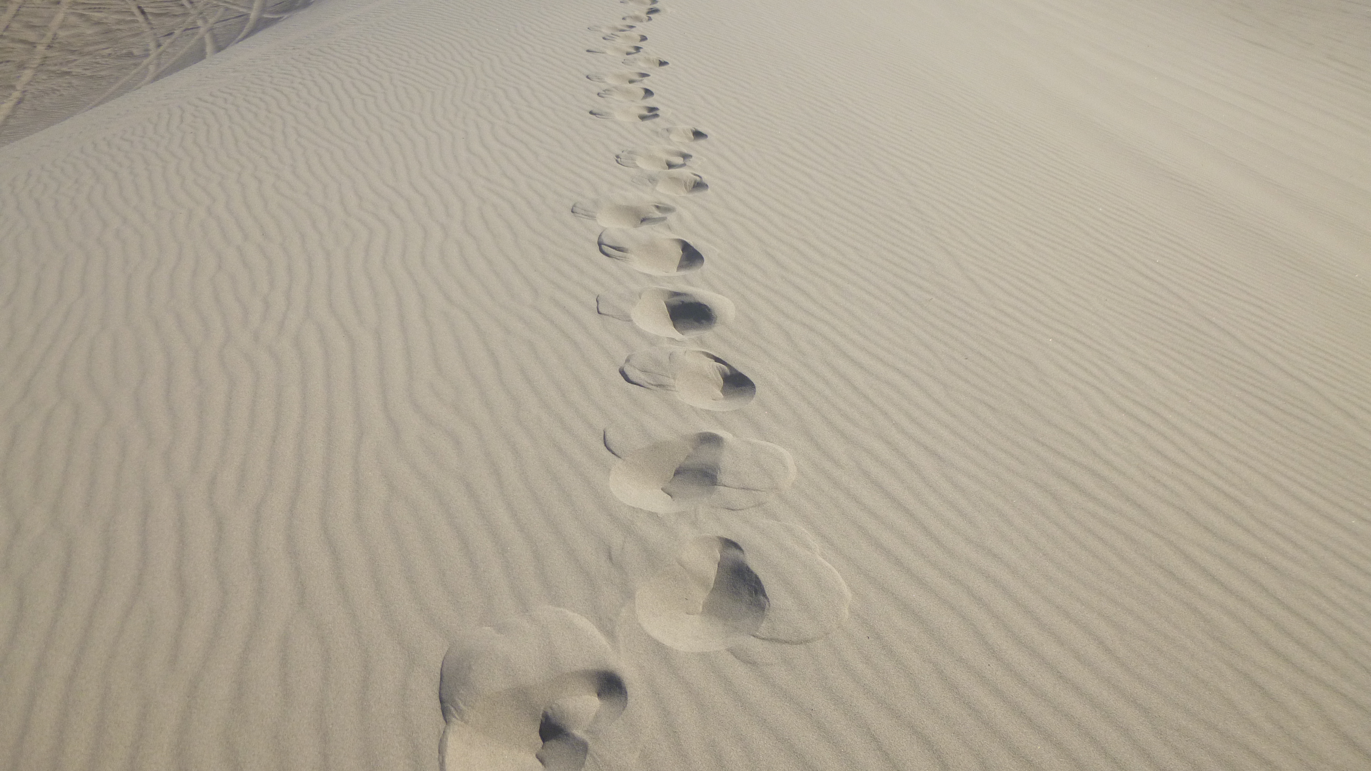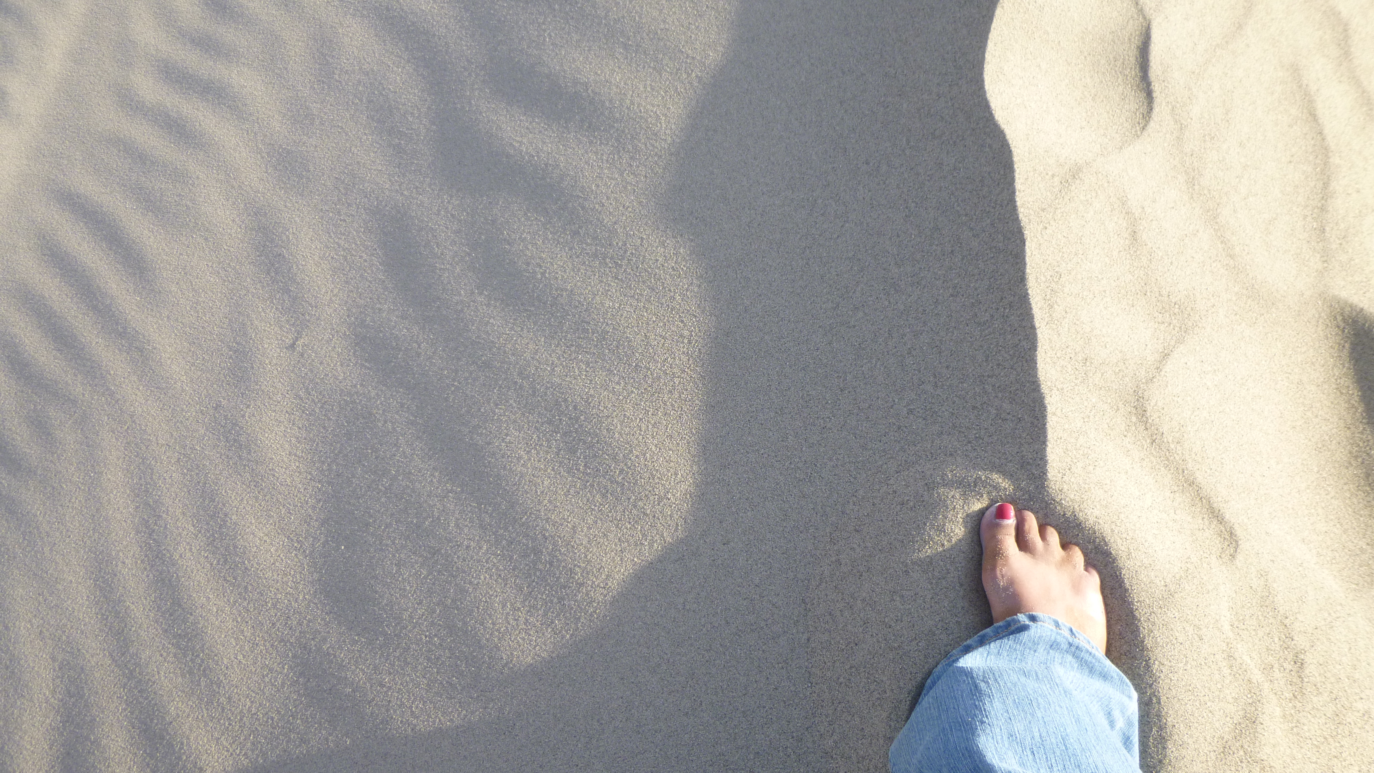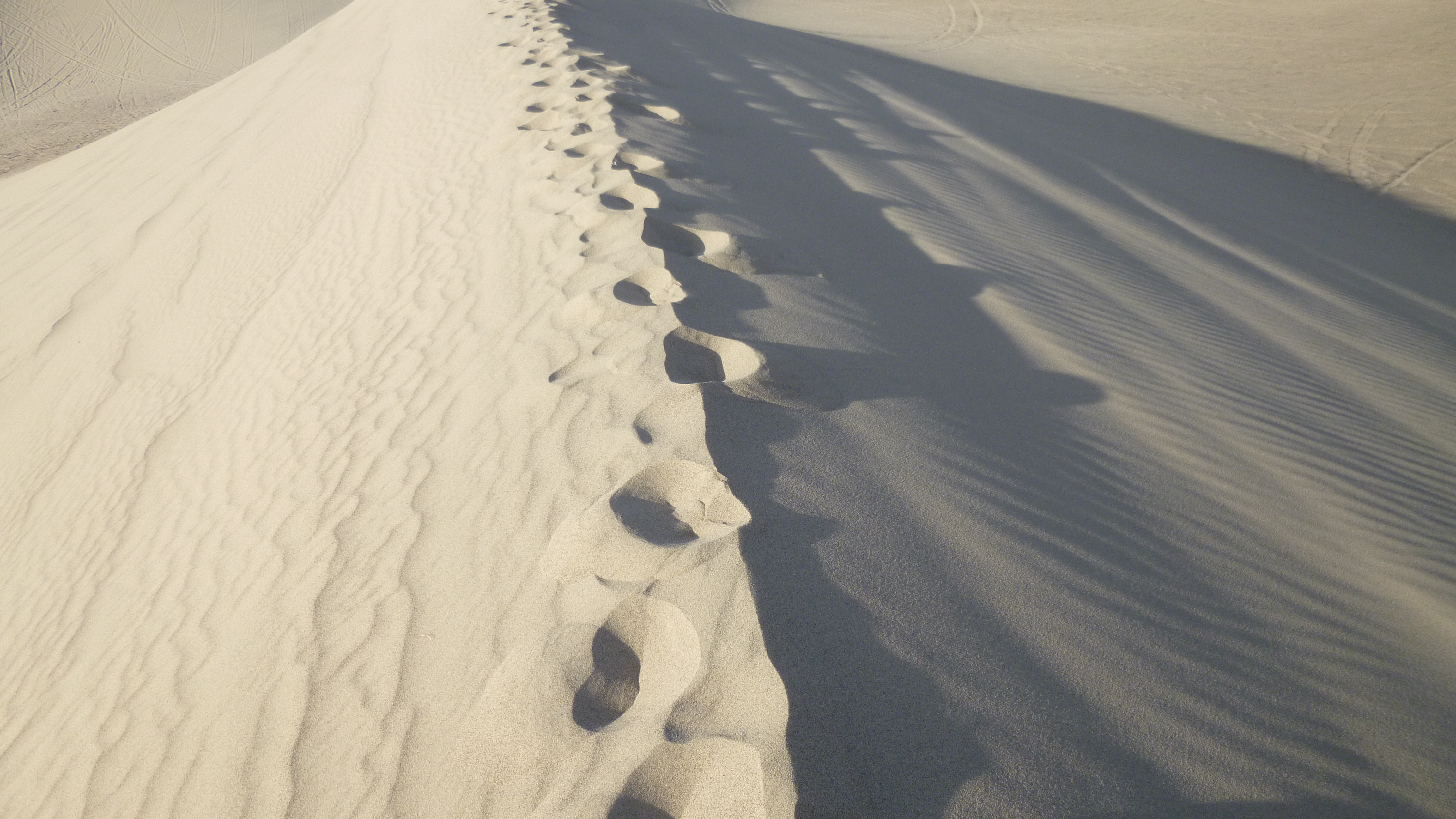 And a little farther on I came to Sand Mountain, which is a huge, constantly changing sand dune and the last time we were here, Taryn and I climbed all the way up to the top. It gets really steep at the top and requires crawling up on hands and knees, and even with that, we kept slipping backwards. I didn’t plan to climb all the way up again today, partly because of the heat, although the sand didn’t feel as hot as I expected it to. I climbed up to the point I had to start using hands and knees, and then settled on a smaller sand dune instead. The wind is constantly blowing the sand around, and the tops of the dunes have a knife-edge crease to them, which is kind of fun to walk across. These dunes are known as the “singing dunes” because if the conditions are right, one can sometimes hear a humming sort of sound while running down the dunes – Taryn and I heard it last time; I may not have been high enough this time because I didn’t hear anything. When I was finished on the sand dune and heading back out to the highway, I passed a turnoff to see the remains of an old pony express station. Tula and I followed a roundabout path to the crumbling brick structure, and the different rooms of the old station were still visible. It wasn’t a very comfortable place for the pony express riders to relax, but it served its purpose with a couple corrals for the horses attached to stone building, which also had a blacksmith room, a kitchen and small living quarters. This station was used for the pony express riders, and then later it was used to store batteries for the telegraph lines up until 1900. After the telegraph people stopped using the station, it was abandoned and the sands covered up the whole station, and it was forgotten until 1976, when it was uncovered once again.
