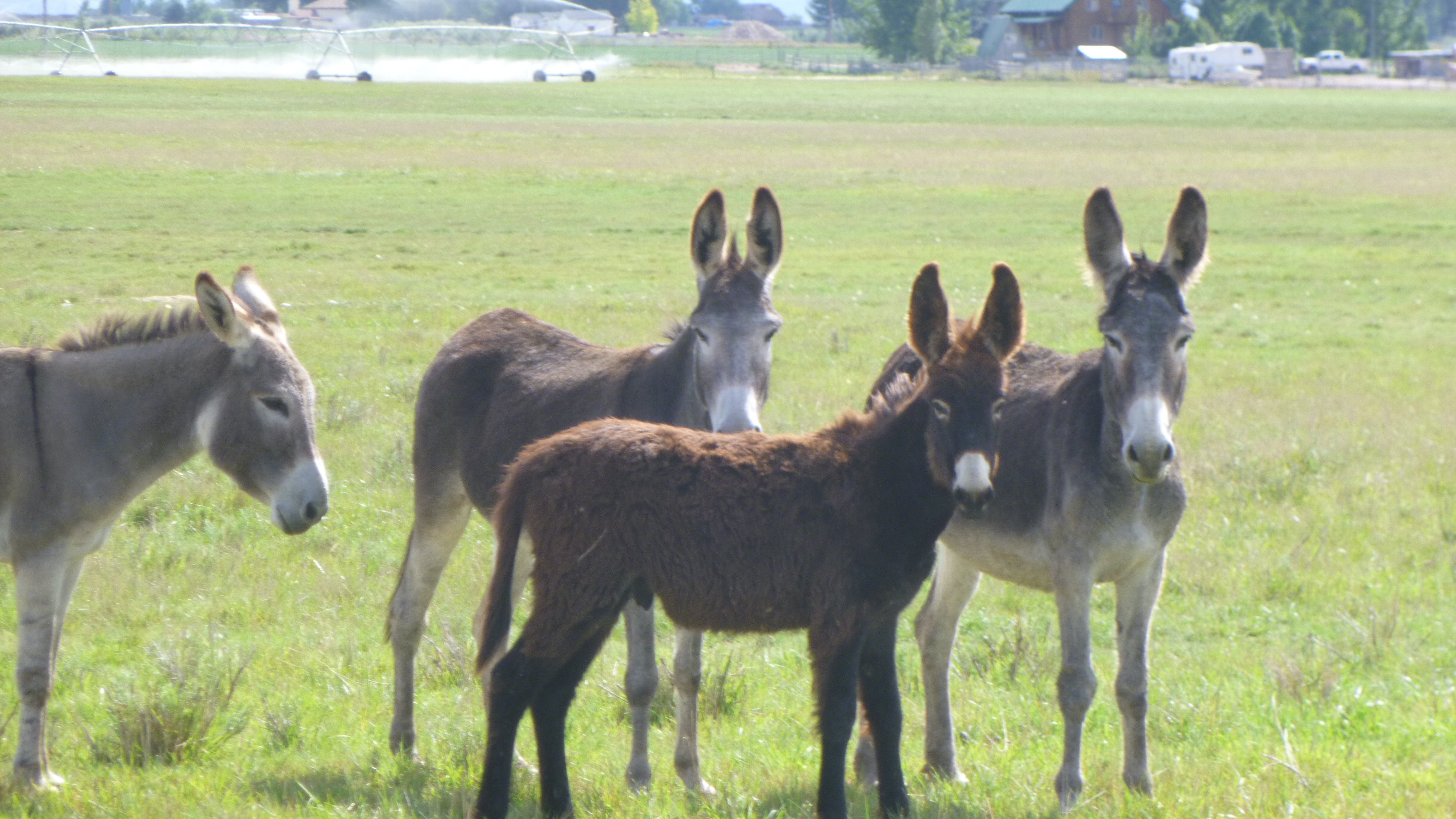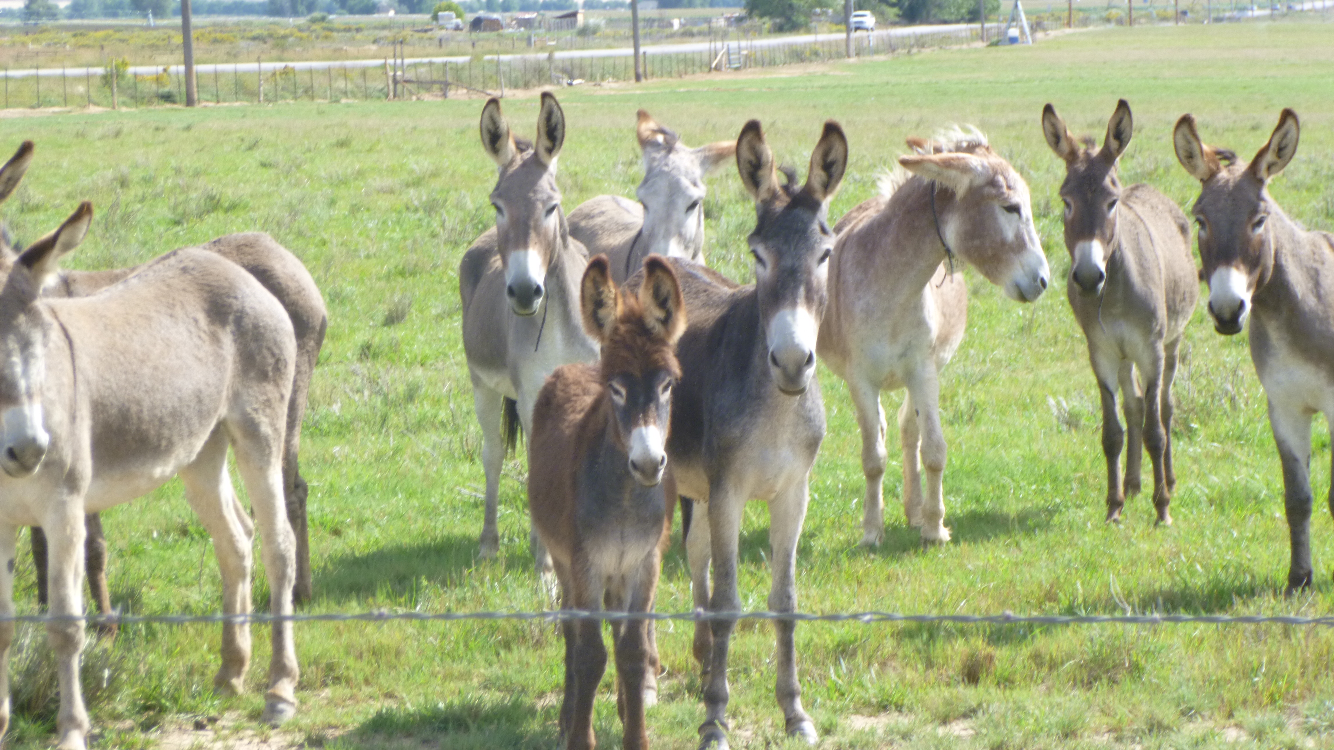 When I was done at the food pantry, Tula and I did a little walking in the town of Richfield, then we headed north to the town of Salina, where I covered another mile and a half. I enjoy walking through some of these sleepy little towns – Salina had a lot of old storefronts and wide streets, and apparently enough business to keep the town alive. As I was driving out of town, I passed the biggest donkey farm I’ve ever seen – there had to be at least a hundred donkeys out in a huge pasture. I got out of the car to take some pictures and some of them started wandering over to the fence where I was standing. There was a cute little black baby donkey who seemed almost as big as its mom. One of them started braying, and then a few more joined in – what a racket!