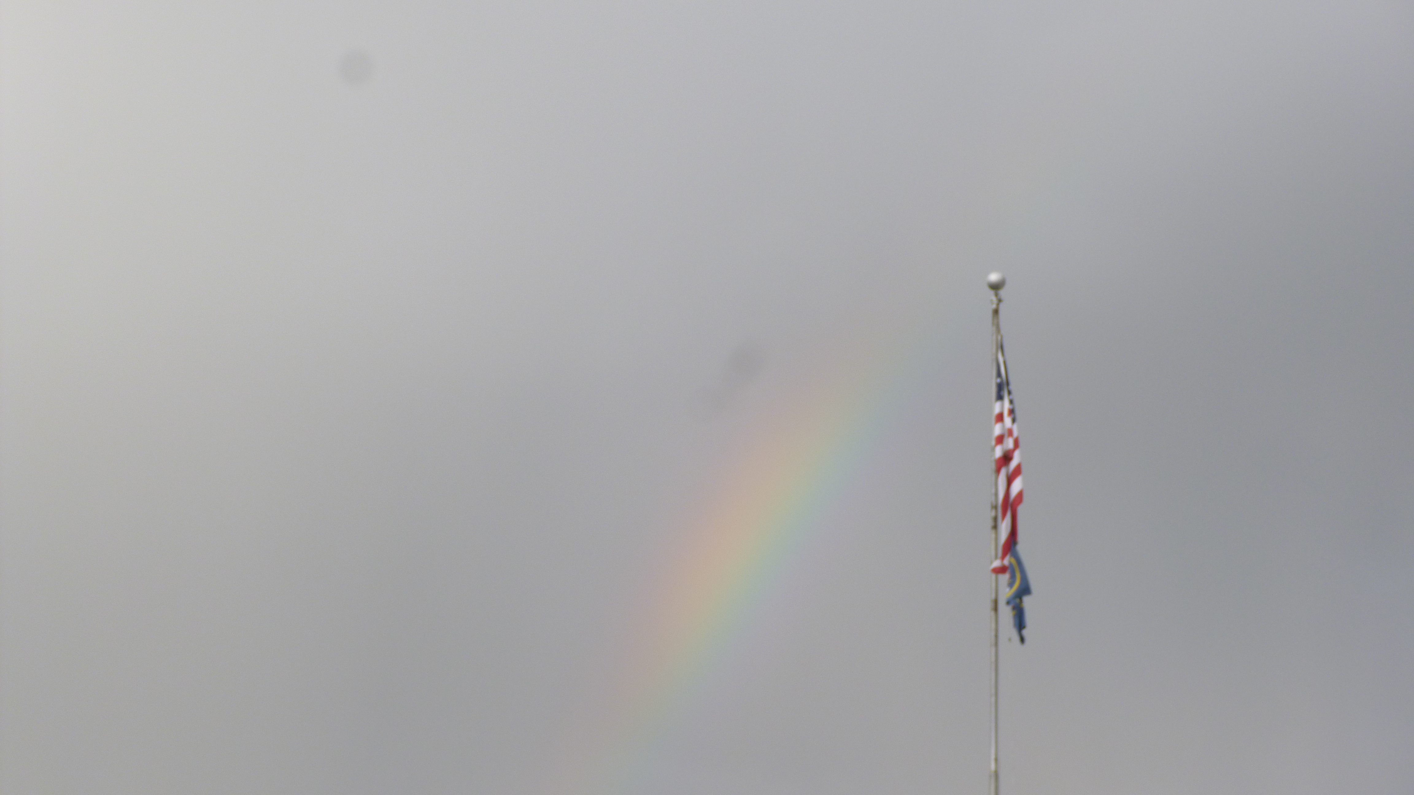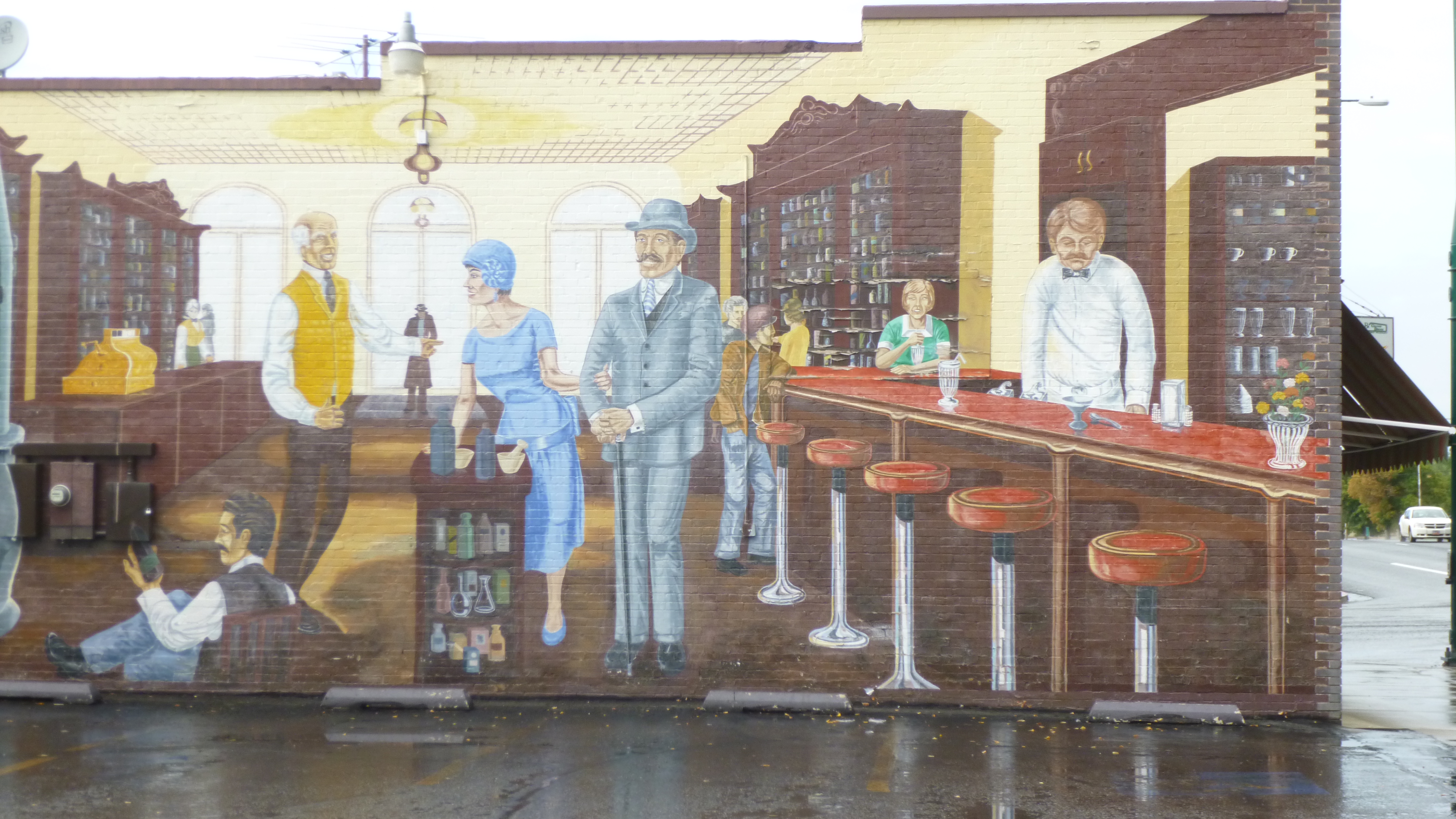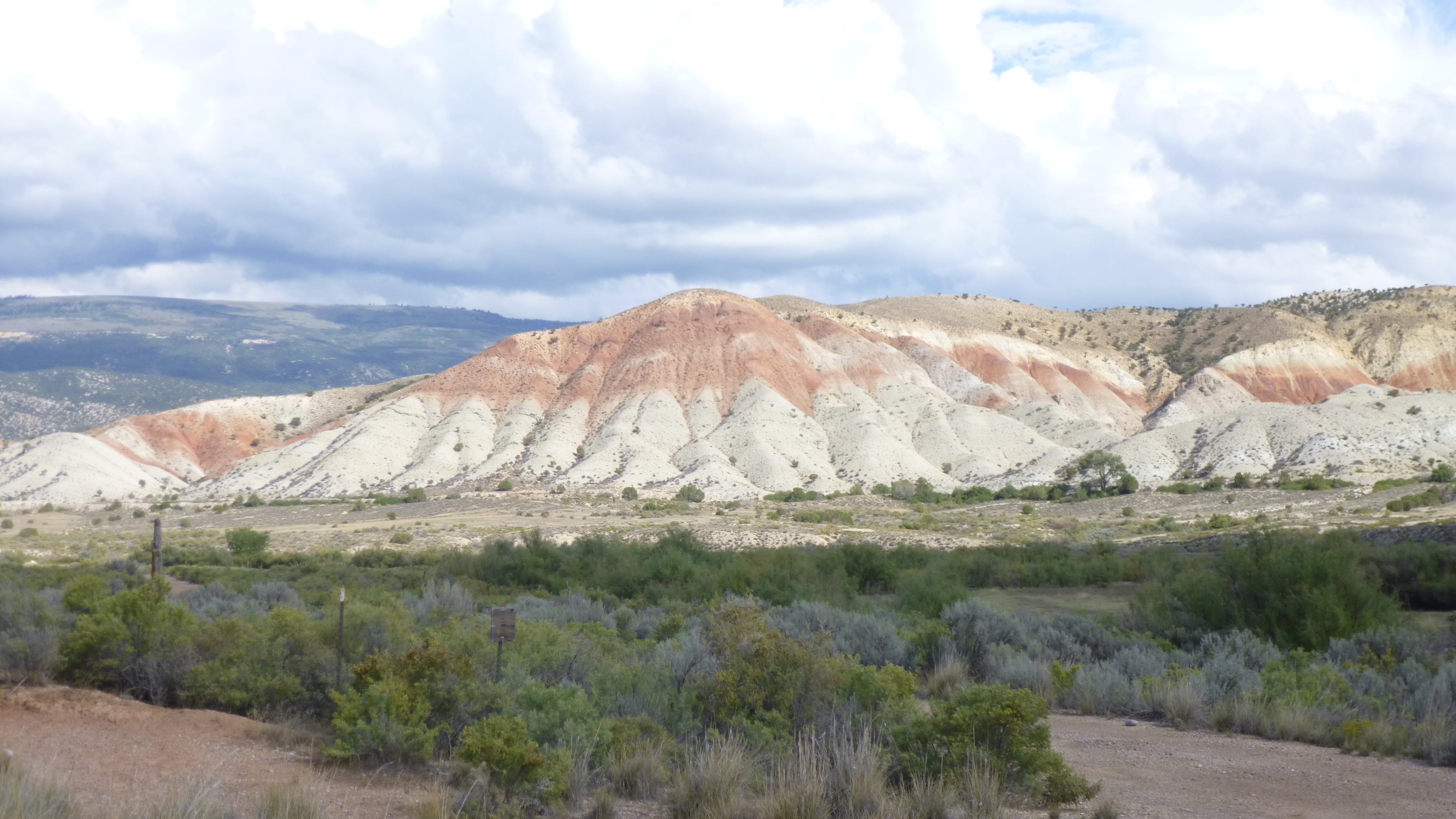 The skies had been kind of gray all day, and it started to rain as I continued to drive north. Mostly I seem to be driving in desert country, with a lot of red rock hills. The next town I stopped in was Mt. Pleasant, and by the then the rain had temporarily let up so Tula and I got out for more walking. Then it started up again, so I put her back in the van, and got my umbrella and simply continued on. I saw another rainbow – I’ve seen quite a few of them on my journey. I like how a lot of these small towns have old advertising signs or murals on the sides of some of the buildings. It was a Friday night, and there was a football game in town – I saw lots of people dressed in the same colors, and some had their faces painted, and there was a festive air in town. I think it might have been their homecoming game. There was an ice cream shop on the corner, so when I was done walking, I got some ice cream, and then got back in the van to drive north to Midvale, a southern suburb of Salt Lake City, where I stopped for the night.