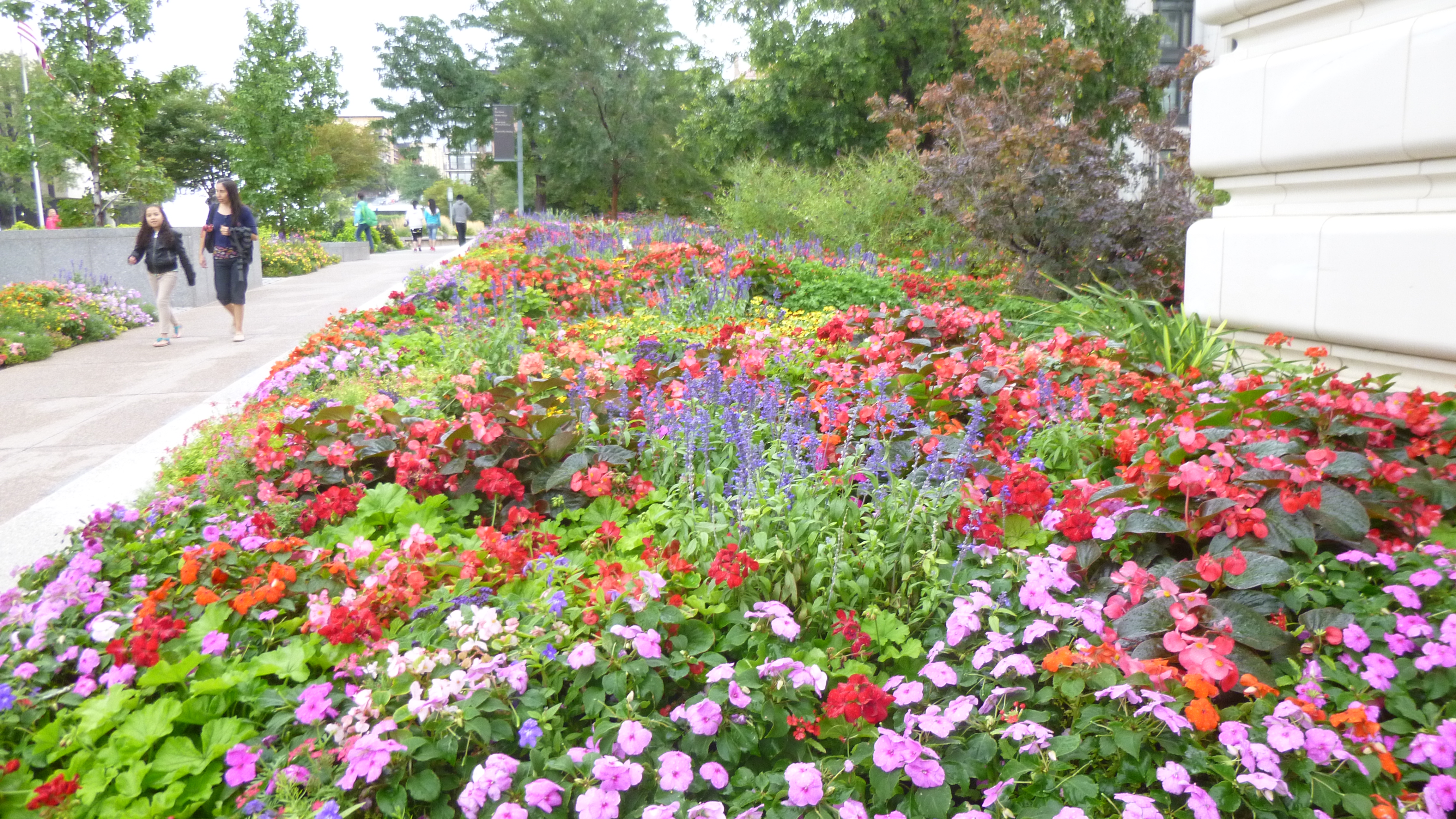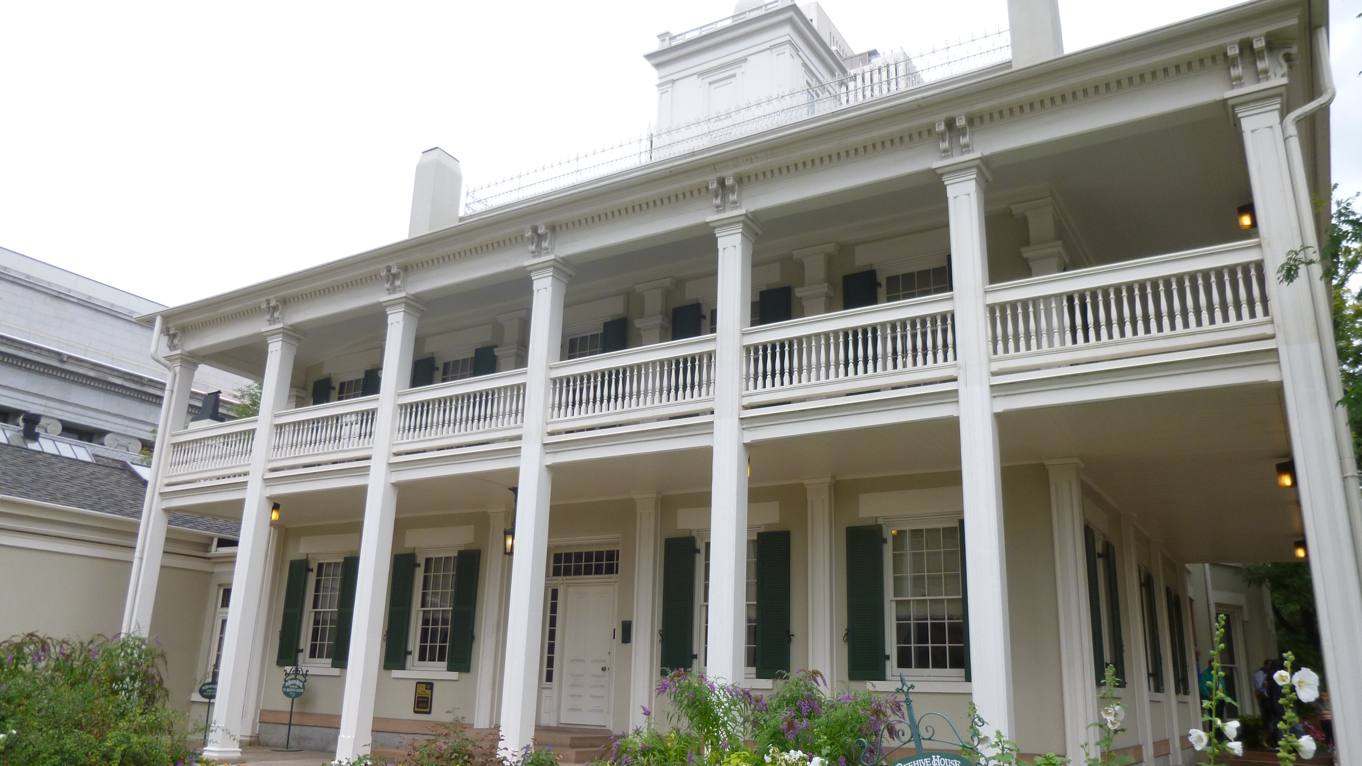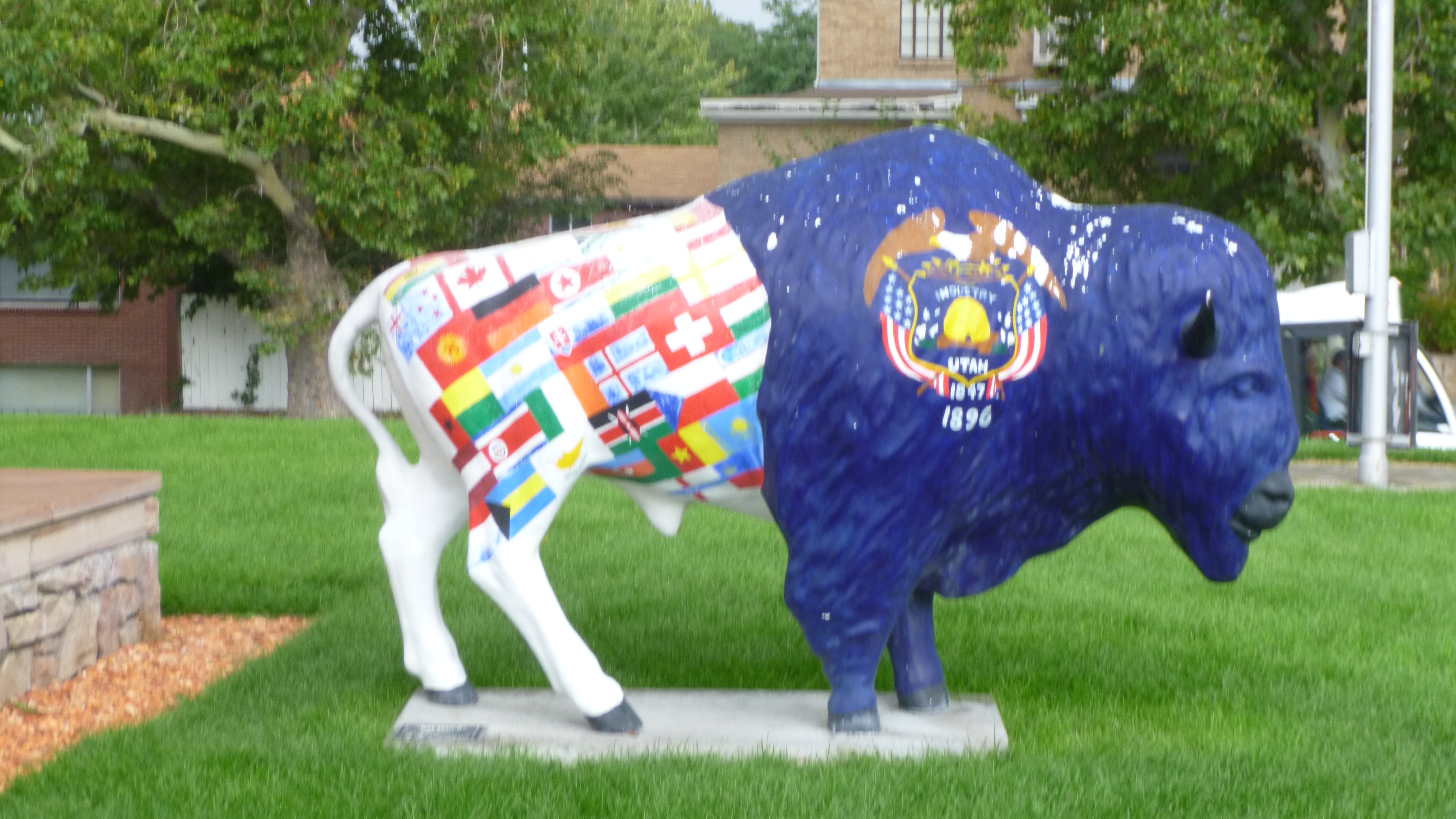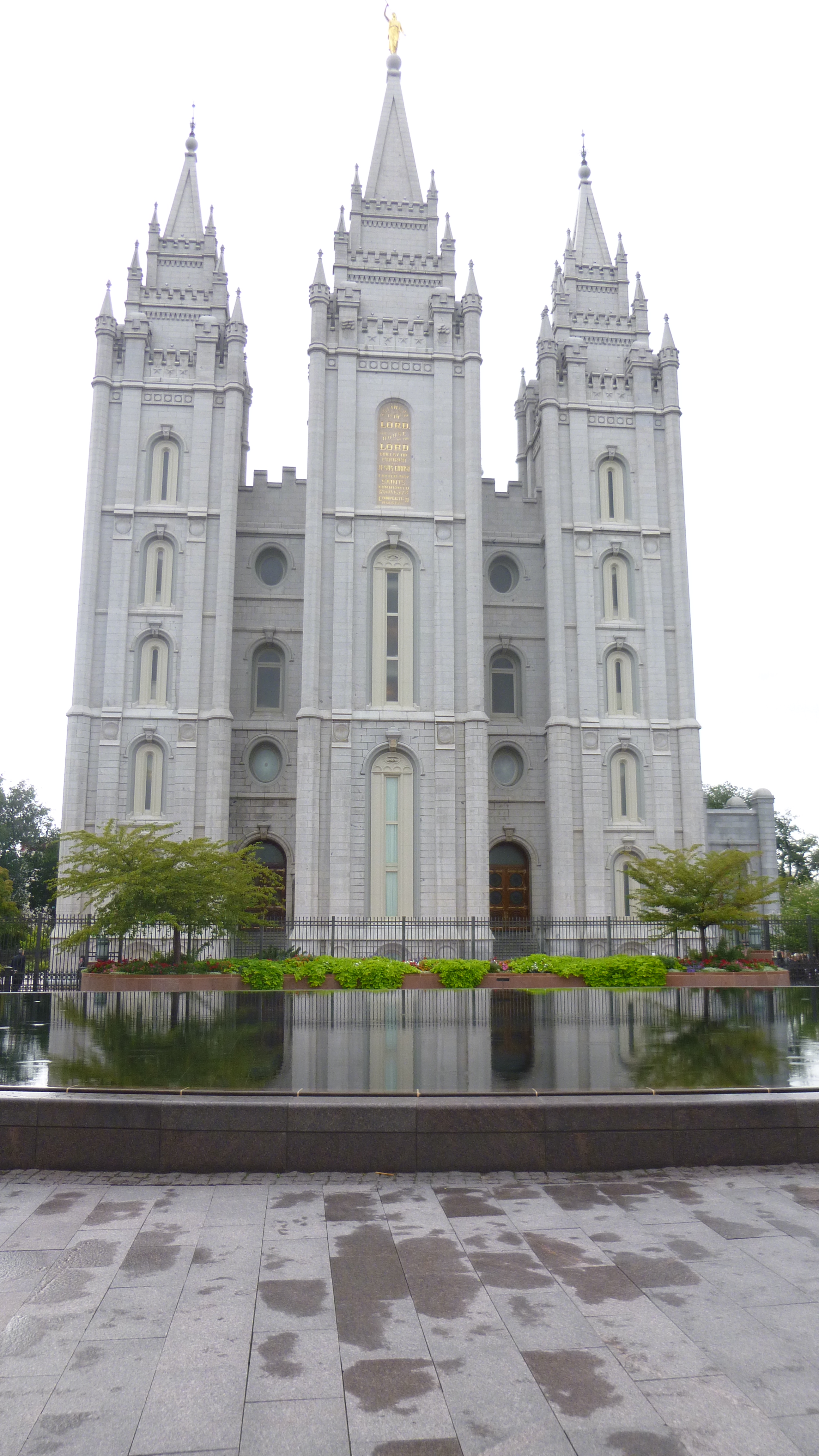 Tula and I took a short walk downtown, then it began to rain. I drove up the hill to the visitor information building across from the capitol and got some information. Even though it was raining, I set off down the hill to Temple Square, but I didn’t get too far. It was raining hard, and it was so windy I was battling with the umbrella. I decided to just go back to the van and wait out the storm, since I had things I could do while I was waiting. After a half hour or so, it began to let up a bit and the wind seemed to calm down, so I tried again. This time I went over by the Capitol building, which is a big majestic building with the typical dome, and there was a landscaped walkway all around the grounds and I covered a mile without getting too wet.