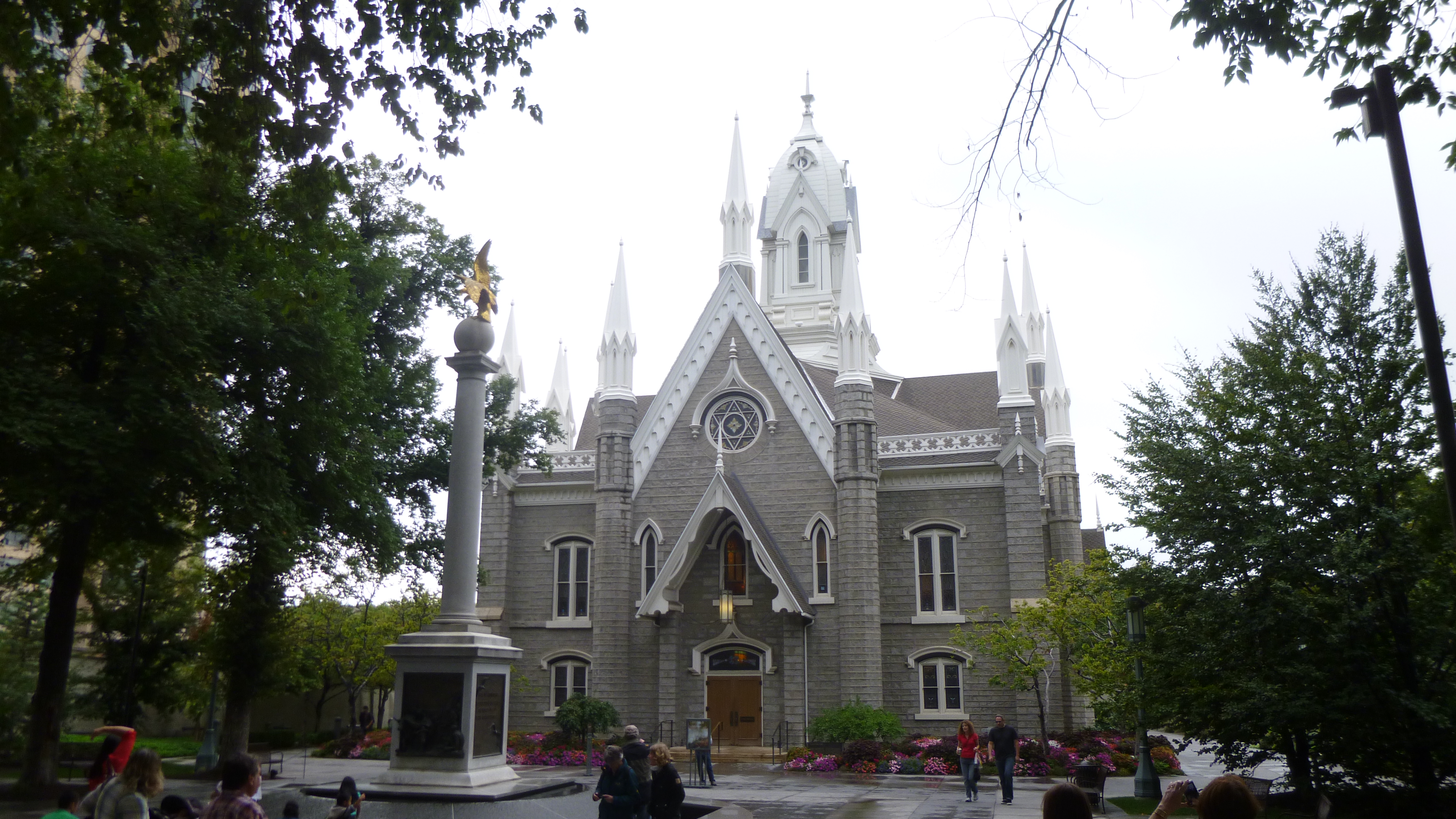 It was another gray, rainy morning, but I headed into downtown Salt Lake City anyway. All the addresses in Utah are a little strange at first – they all have 2 sets of numbers and 2 of the 4 directions (either north, south, east or west). But it does actually make sense. The numbers start at a central point in any given town (in Salt Lake City it’s the Mormon Temple) and streets are laid out in a grid, and the numbers simply increase the farther away one gets from the center, and the 2 directional words let you know what directions to go in.