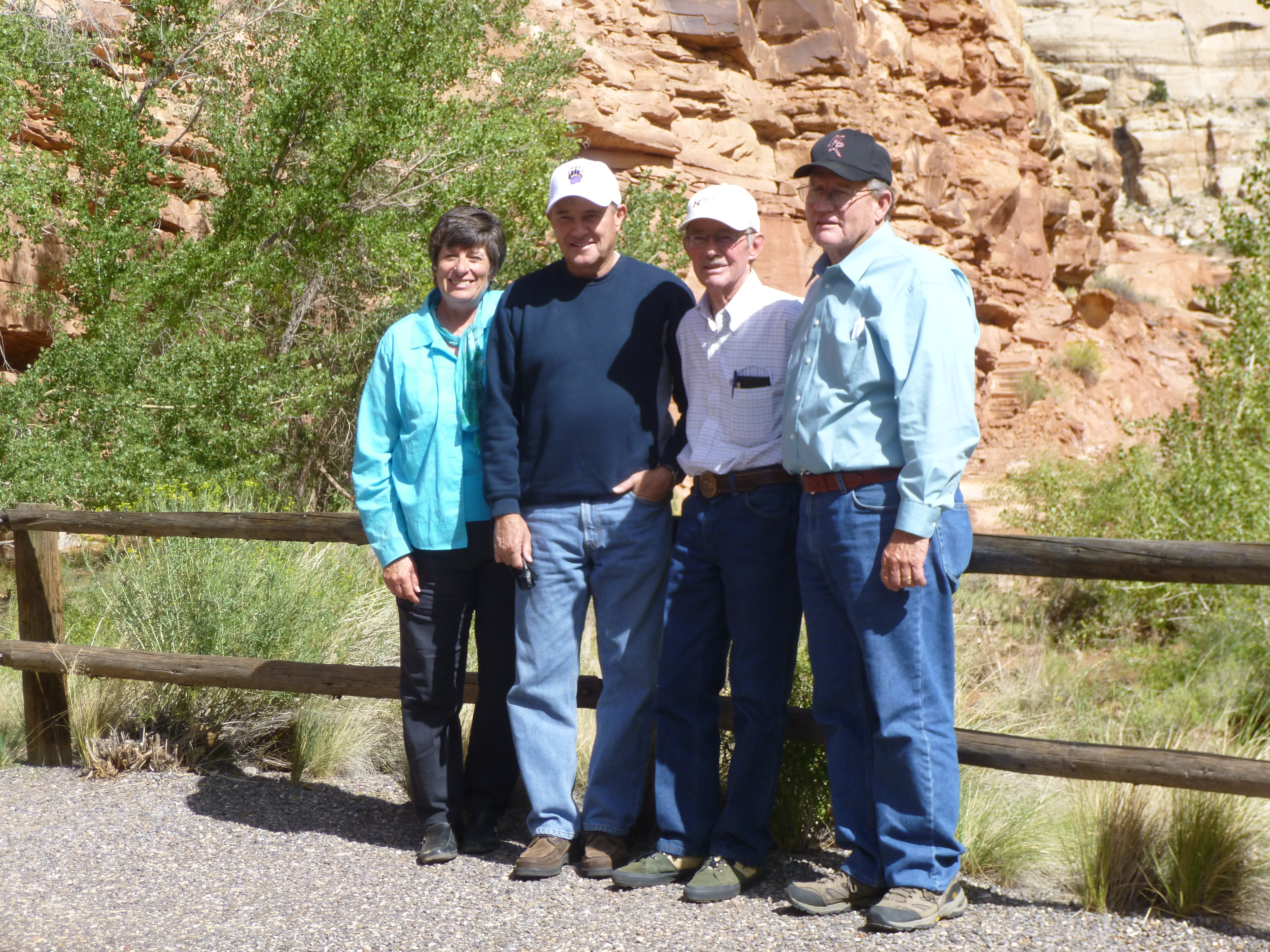 I had also missed the white dome-shaped rock on my way in called Capitol Rock because it looks like the shape of the US Capitol building. It sounds like there are numerous other white dome shaped rocks back in the part of the park I couldn’t get to. The ranger told me that particular rock wasn’t visible from the direction I came from, so I backtracked a mile or so to get a picture. There were other people taking pictures (there always are!) so I waited for them to get out of my way. There were a couple photographers, and they called everyone over for a group photo – I just figured it was some tour group. Then one of the photographers told me to go get in the picture, but I told him I wasn’t with that group. And he told me that’s alright – if I wanted my picture taken with the governor, I could just go get in the picture. But I wasn’t with them, so I didn’t. It turns out Utah’s governor, Gary Herbert, was visiting the area, and while they were getting some more pictures of him with some commissioners, one of the ladies on his staff came up and asked me where I was from and why I was visiting this part of Utah (I was the only other person there at the moment besides the governor’s group), so I gave her a short version of what I was doing, and then she called over the press secretary, who thought it was interesting, so then he thought I should tell the governor about it, so I did! Then he proceeded to tell me that Michigan’s governor had visited Utah to attend some meetings, and in the end, Michigan’s governor “stole” Utah’s budget director. What does one say to that ?!? It was an interesting chance encounter.