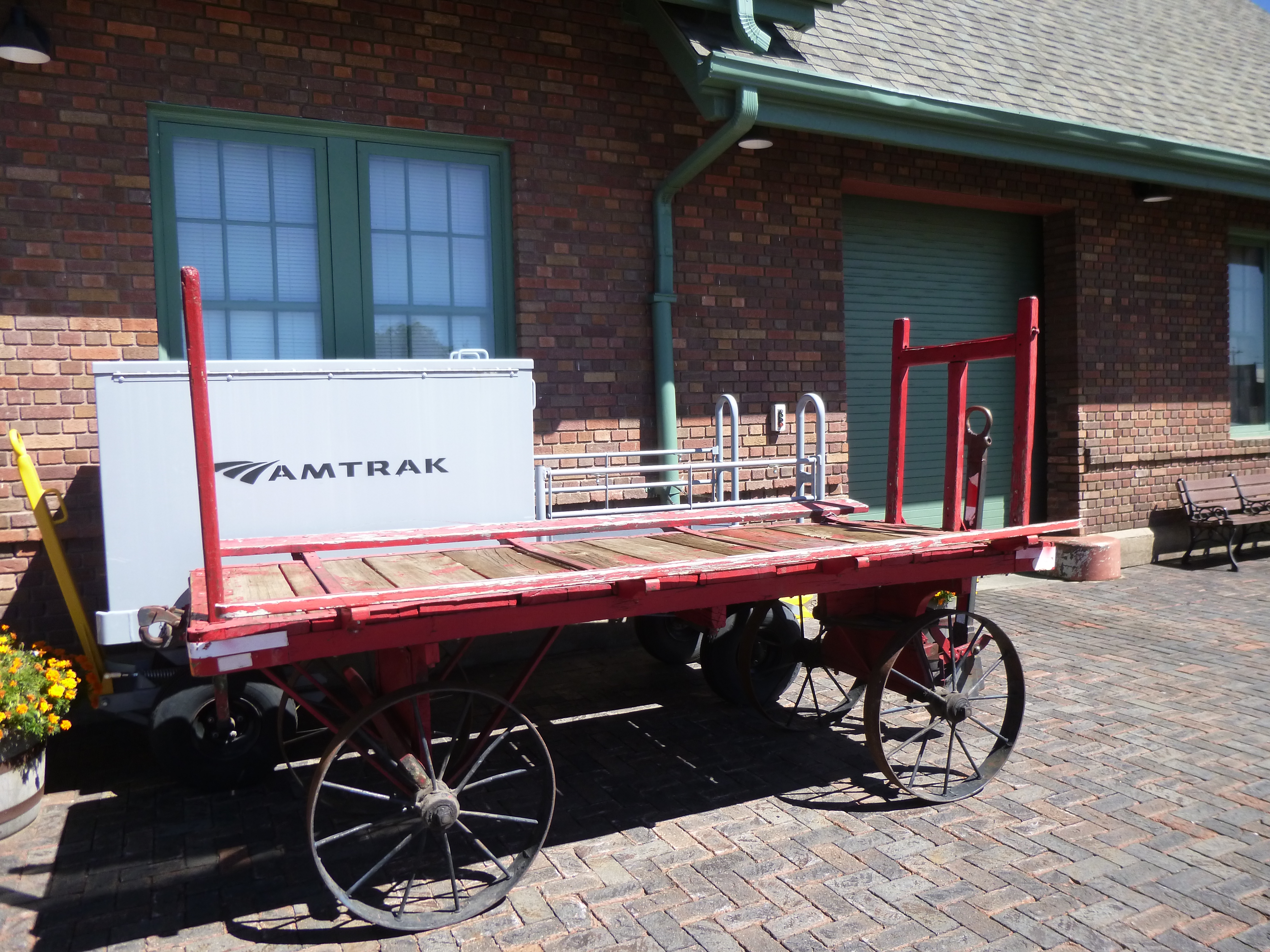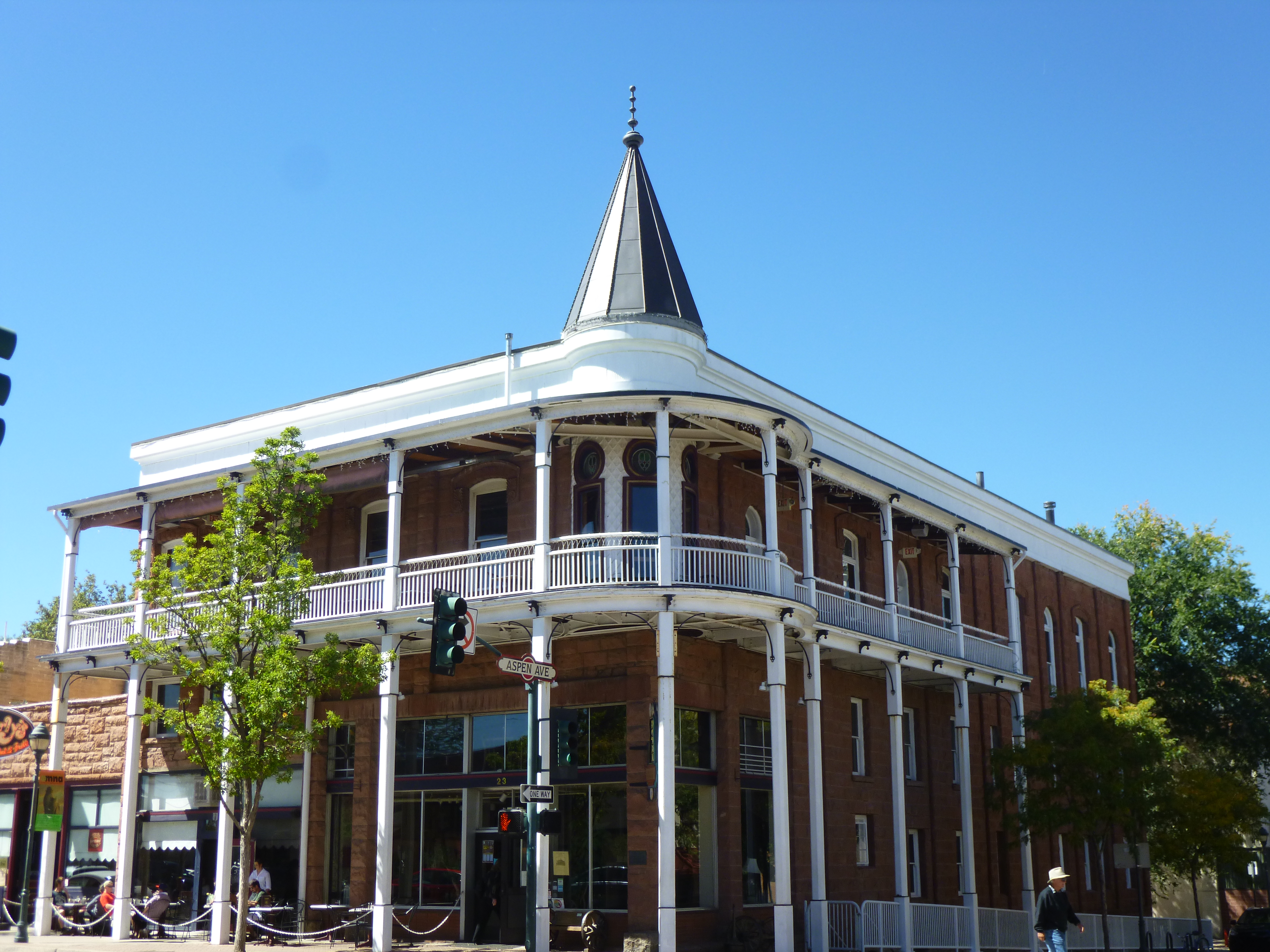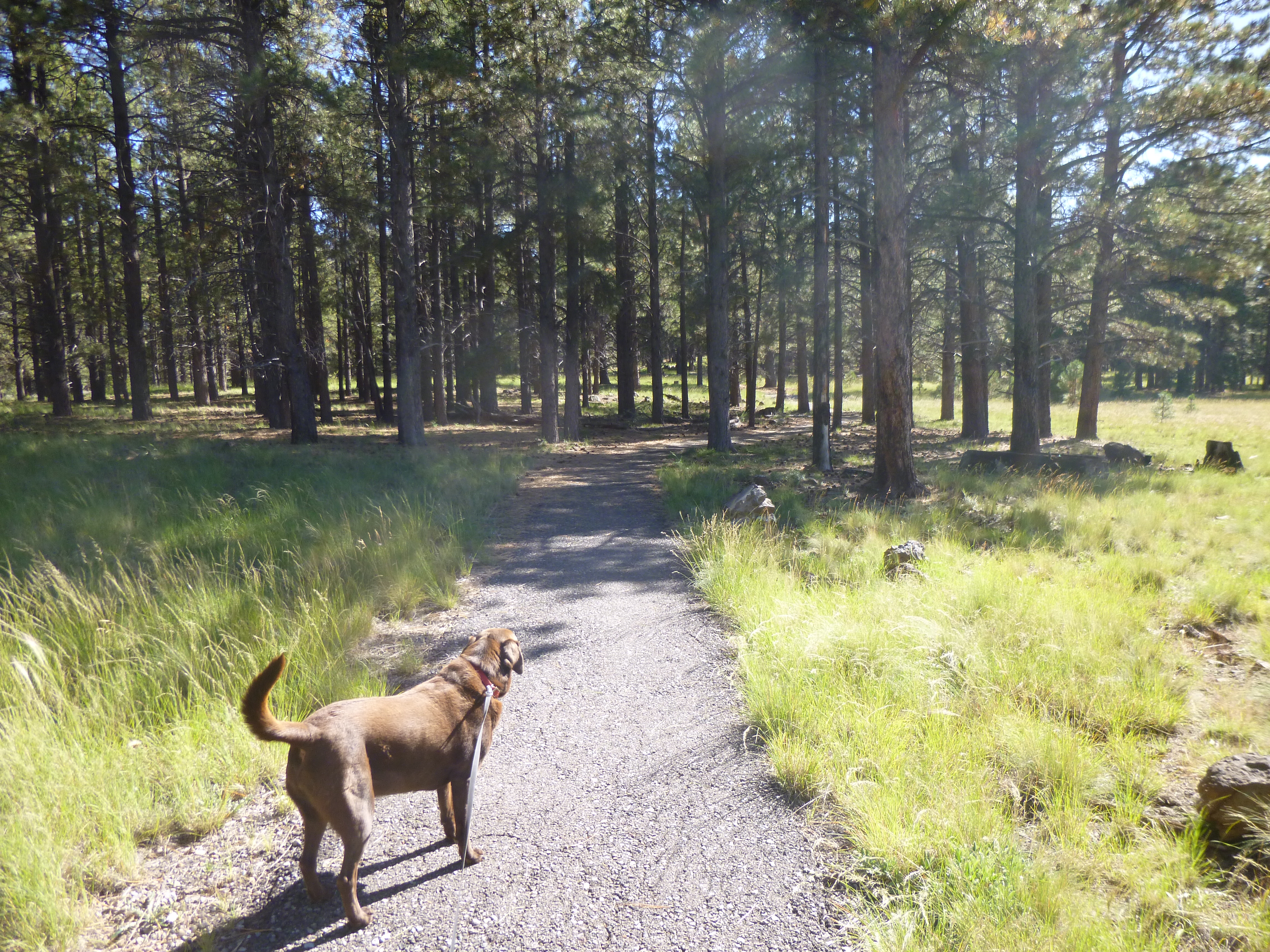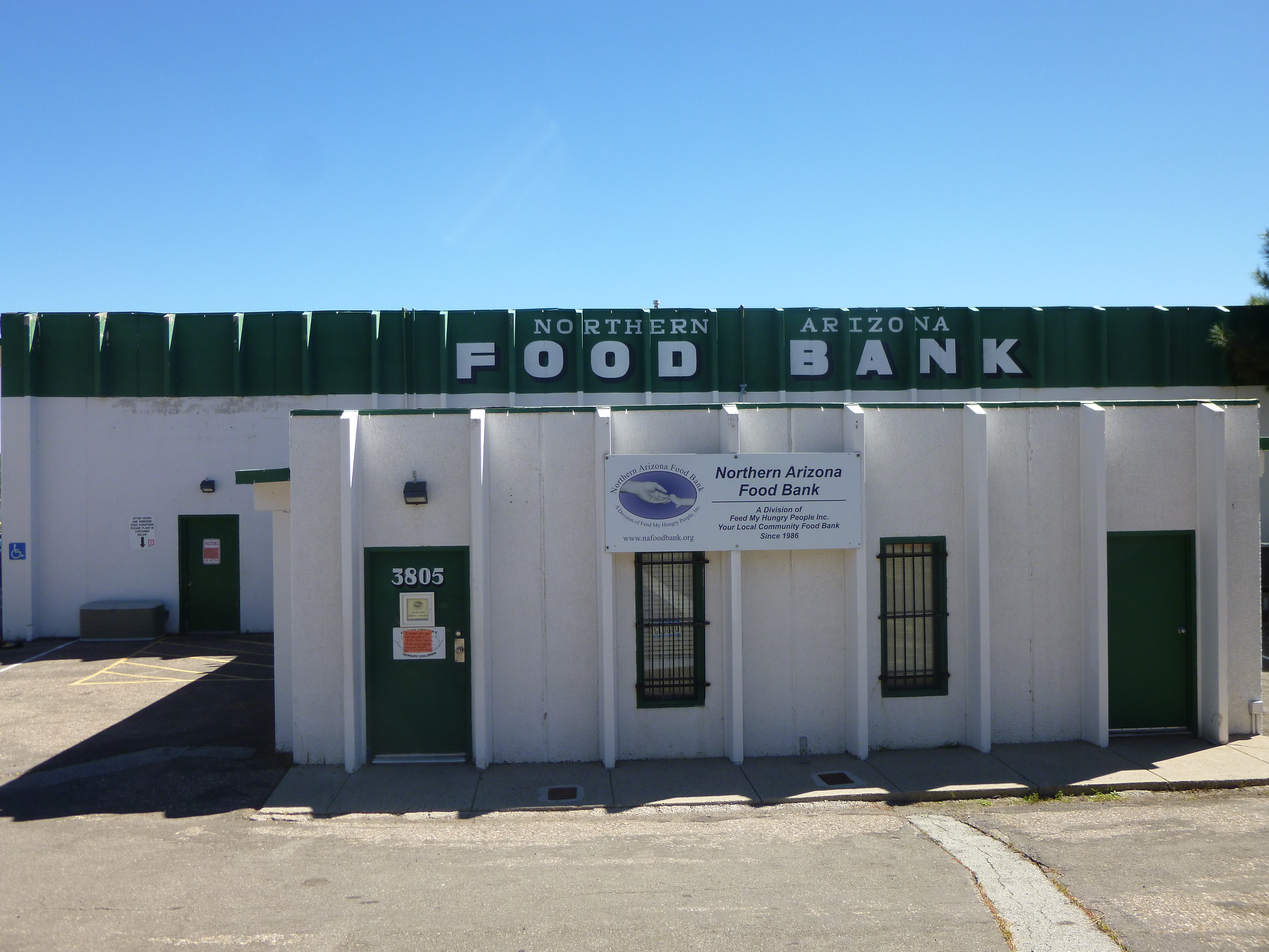 I drove down to Flagstaff last night, and this morning we set out to explore. I headed for the historic part of downtown Flagstaff, along the old Route 66. I stopped at the visitor center, which is right in the old train station, and is still used by passenger trains. A lot of freight trains come through too. Tula and I set out for a walk, and when she’d had enough, I continued on a bit more, and ended up covering 3 miles. Then I stopped for a big hotdog from a street vendor that had lots of people lined up his cart. I stopped by the post office and wrote out another set of post cards, and by then it was 1:00, and the Northern Arizona Food Bank in Flagstaff opened.