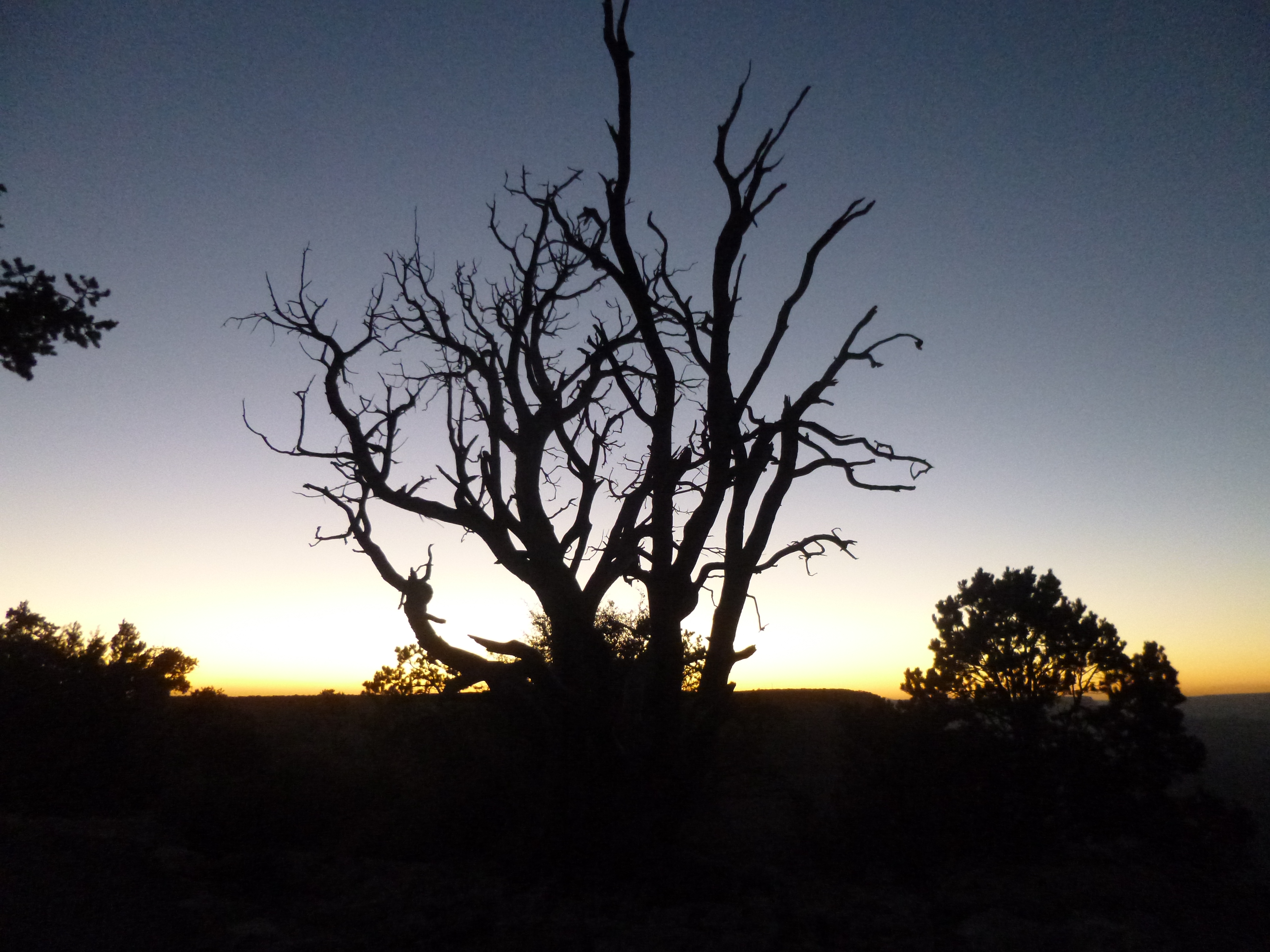 And then I was off to the Grand Canyon. It was about an hour and a half away, and I stopped along the way to walk Tula along a mile-long wildlife path out in all the pine trees. This part of Arizona is really pretty with meadows and lots of big ponderosa pine trees. On the other side of the road from the wildlife trail was a tiny little chapel in the woods – they’re always so unexpected and peaceful to run across. It was late afternoon by the time I got to the Grand Canyon, but at least by then the crowds had begun to thin. As I went through the entry station (it costs $25 to get in – my annual national park pass has been a wonderful thing to have!) there were flyers posted urging people to use caution while visiting the park. The rangers have to rescue an average of 250 people from the depths of the canyon every year, and most of them are fit young men. I had just enough time to stop in the visitor center to ask about good walks, and the ranger said the rim walk would be a good one. And Tula could go on part of that one. We headed over to the rim, and the first view of the canyon just about takes one’s breath away – it’s awesome. And it was fun to hear similar reactions from other people coming up behind me. There were lots of foreign people there – I heard a lot of people speaking French, and others speaking eastern European languages. There are a couple big observation areas that are fenced in, and Tula and I went down to those to admire the view. After a while I put her back in the van, and started off along the rim trail. Beyond the initial observation areas, there were no fences or guard rails or anything, and there were quite a few outcroppings to step out and get good views, yet it never seemed scary or dangerous. My photos just can’t do it justice. People were starting to find good perches to watch the sunset, and I stopped to watch the sunset too. I didn’t know which way to look – to the west to see the sun go down, or to the east where the setting sun turned the canyon rocks fiery red. Once the sun was down, I continued my way along the rim walk in the pretty post-sunset light. After I’d walked a couple miles, it was time to turn around so I could get back before it was totally dark. By then, there were only a few people still out walking, and I had long stretches of the rim walk all to myself – it was just me and the canyon and the wind, and then the stars began to come out. It was spectacular. There was a little sign that explained how the Colorado River continues to carve out the canyon – at the rate of one thickness of paper a year. That description really helps make one sort of understand how long it’s taken to make the canyon as deep as it has. It was an incredible thing to see, and I’m so glad I had the time to drive up and see it. Altogether I walked 4 1/2 miles there. The Grand Canyon “village” was a mile or 2 away, and I drove over there and stopped by the cafeteria to get a dinner to go, which I enjoyed as I started the drive back to Flagstaff.
