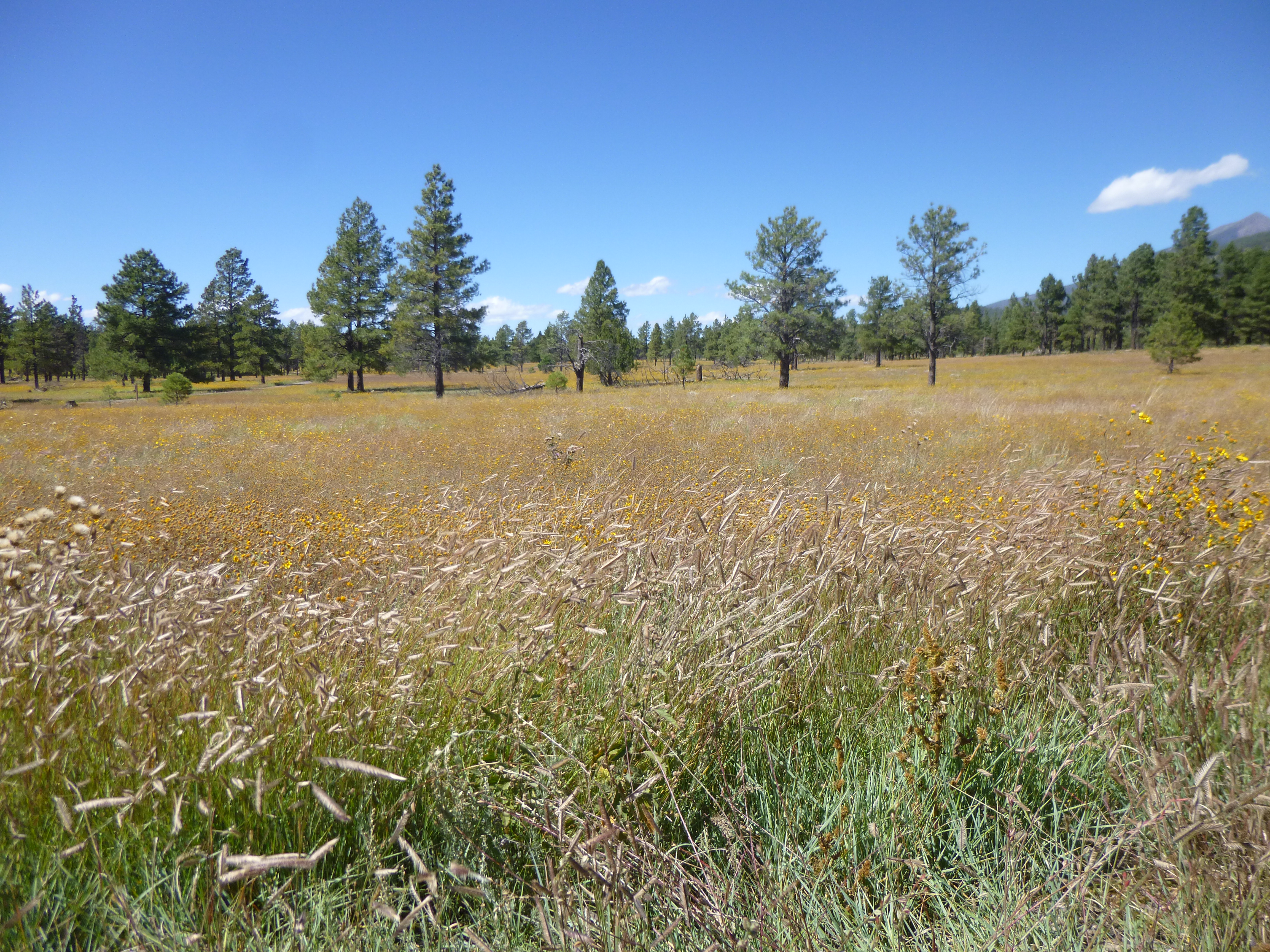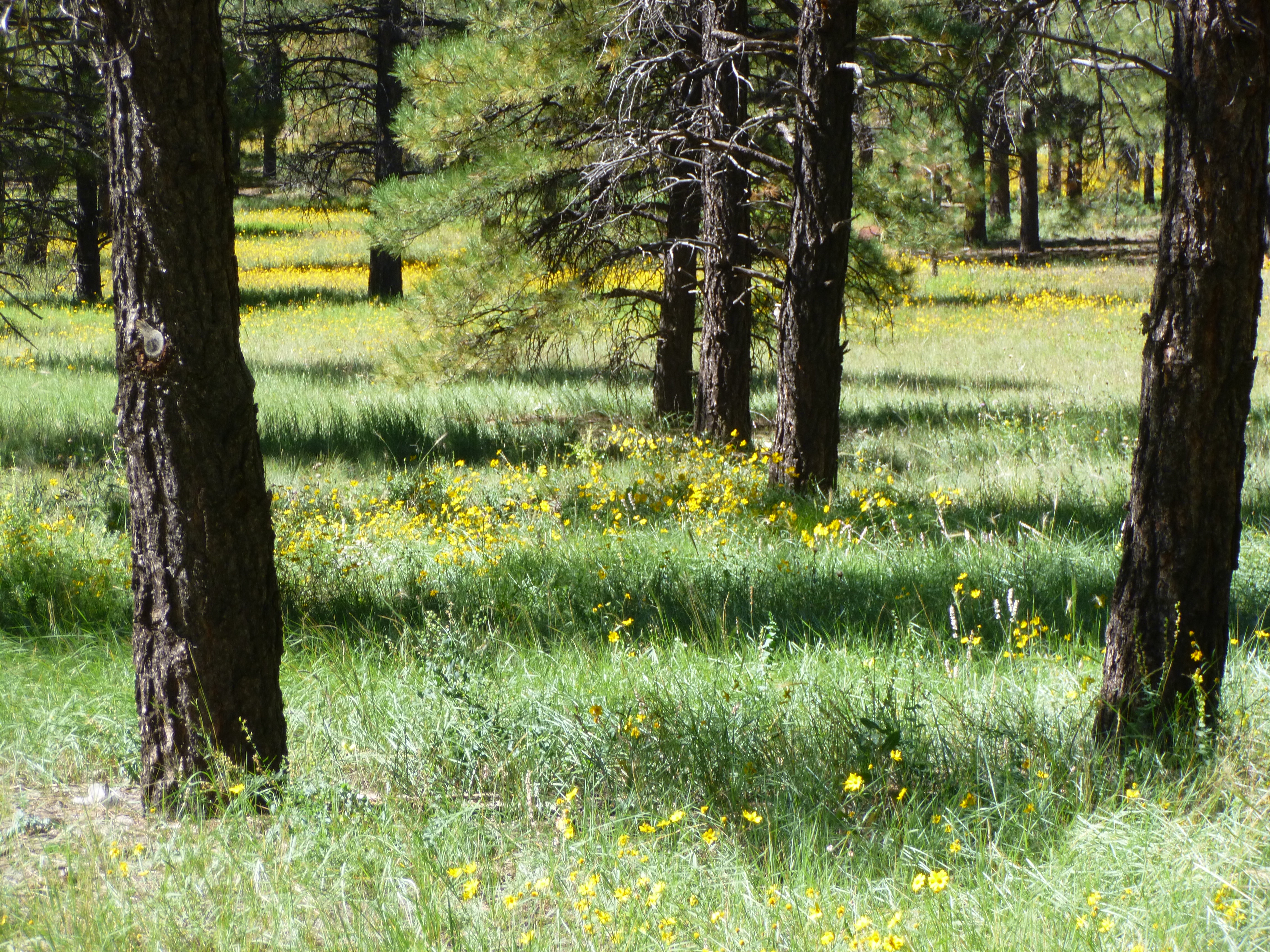 After a good breakfast at a Route 66 diner just down the street, I headed over to some trails just outside of town. Tula and I walked a couple miles on the Arizona Trail, and that led us to Buffalo Park, where we headed out on the McMillan Mesa Trail for another mile and a half. It was really pretty with all the long grasses and pine trees – very different from some of the other desert-like areas of Arizona. Then I headed back into town to walk on the Route 66 bike trail for a bit.
