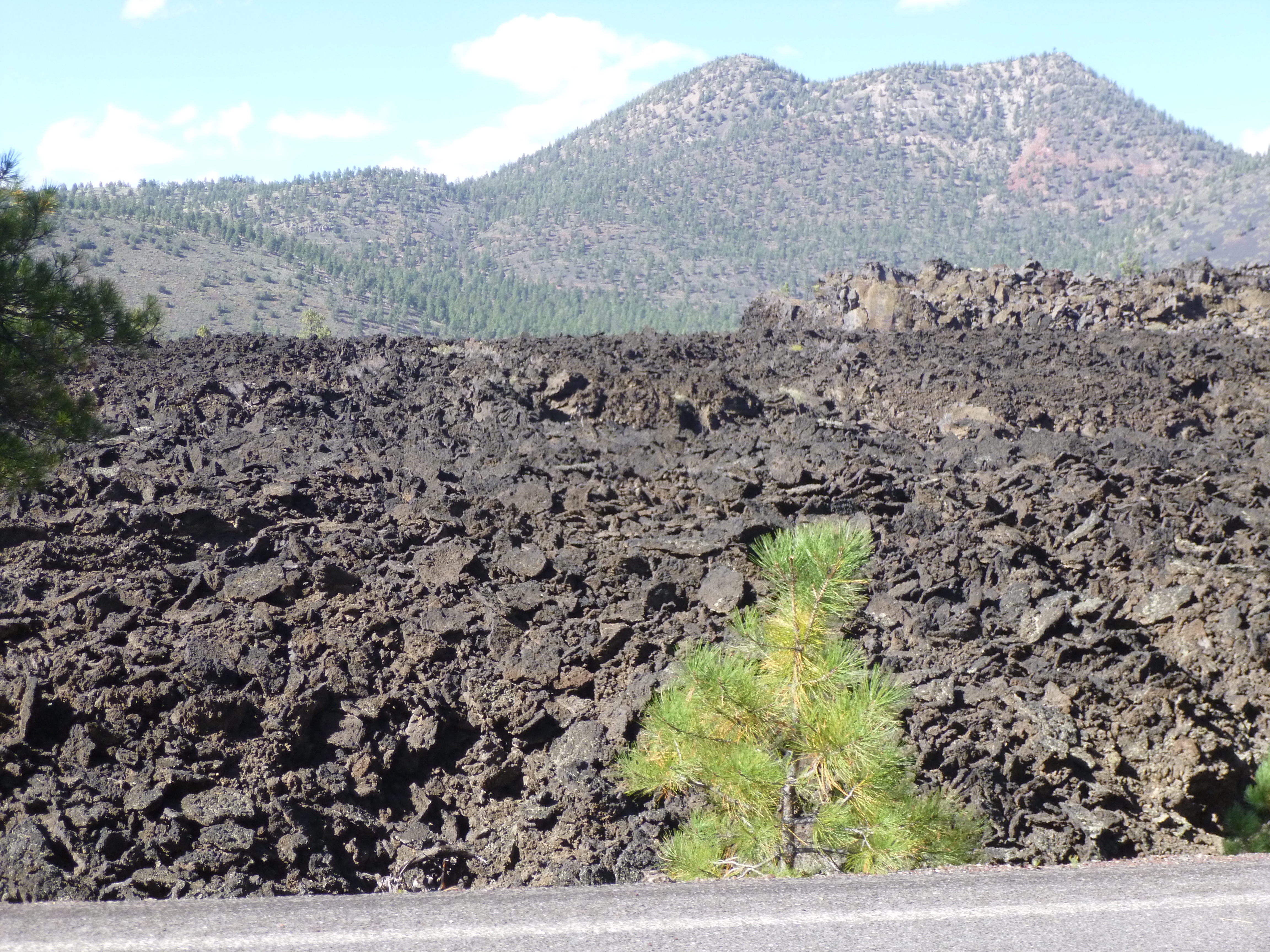 By then I had walked 5 miles and was ready to sit in the van for a while to head toward Sedona. But first, I was going to backtrack about 12 miles to the Sunset Crater National Monument. I was surprised to see the hardened black lava all over the place! The volcano erupted about 900 years ago – and the lava flow covered a good 6 miles of the surrounding countryside. I followed a trail up one of the old cinder cones in the park, and it was like walking uphill on black sand. Then I walked along the Lava Flow Trail through all the old lava – there are numerous cinder cones in the park. I couldn’t help but think that the first explorers walking through this part of Arizona must have been astonished to suddenly come across a big lava field, and then another 60 miles or so away, they would come across the Grand Canyon. The countryside is indeed full of unexpected, beautiful surprises.
