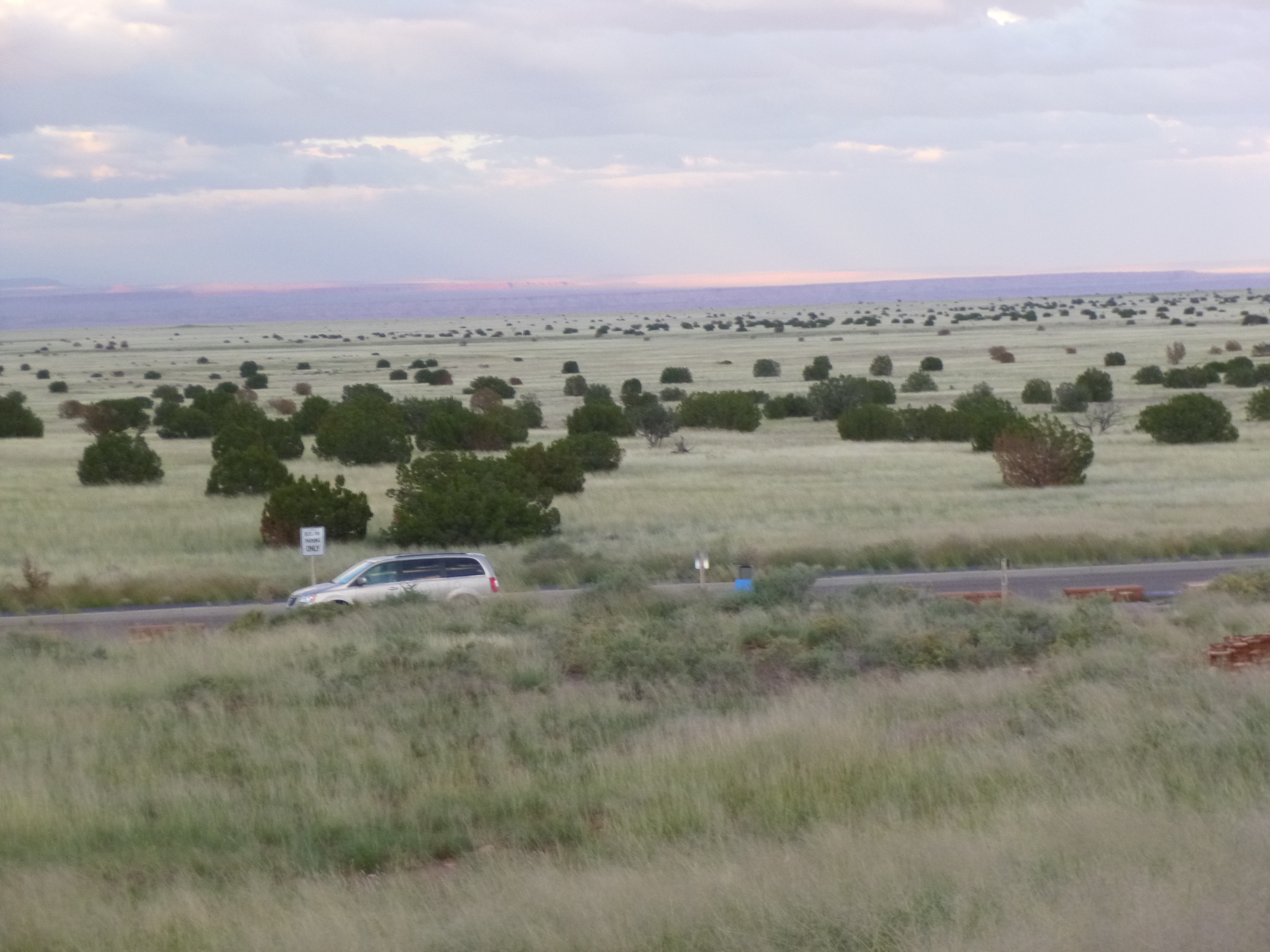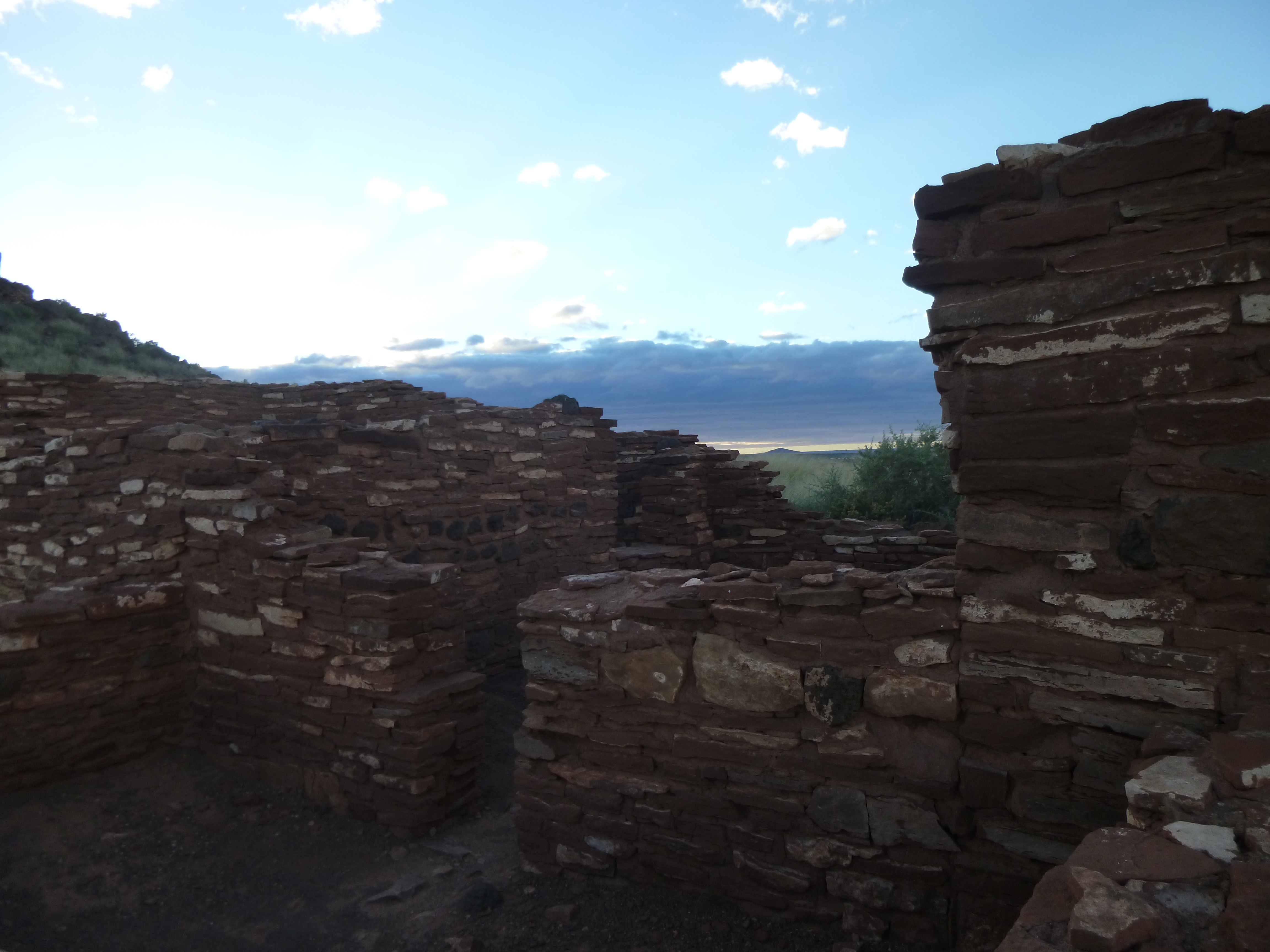 Then I drove a ways down the road to The Citadel ruins. This old structure had been built on a rock base high above the surrounding countryside, which, with all the grasses blowing, looked something like the African savanna. It’s unknown why the pueblo was built so high – whether to catch breezes, or for defense, or to not use up good farmland. I was able to walk inside these ruins, and it was kind of amazing to walk among bricks that were made 1000 years ago. The sun set while I was in the ruins high above the ground, and it was gorgeous. Watching the same sun set that the ancient Indians would have watched is pretty amazing. I sort of wished I could just haul my air mattress up the hill and sleep right in the ruins!