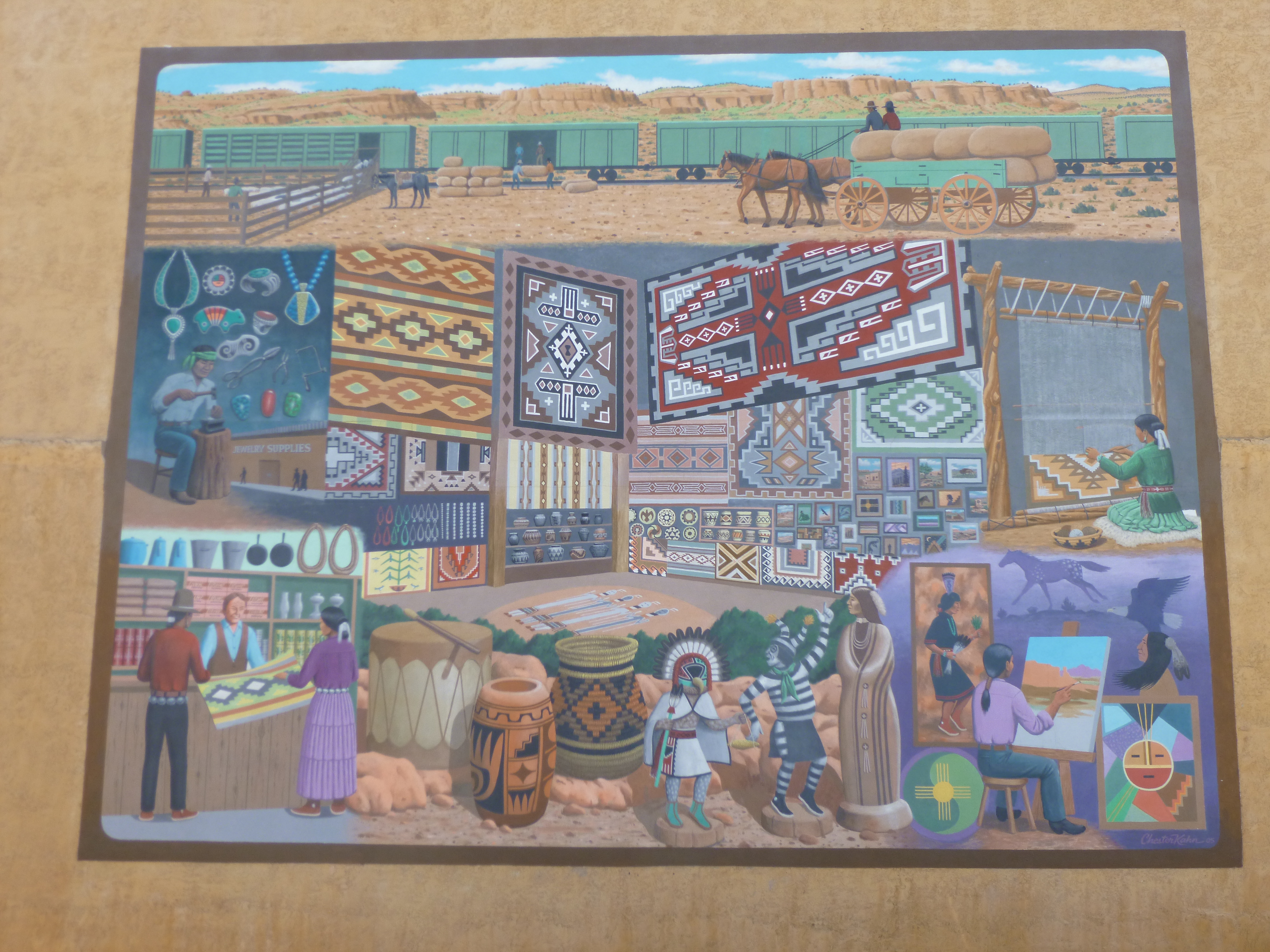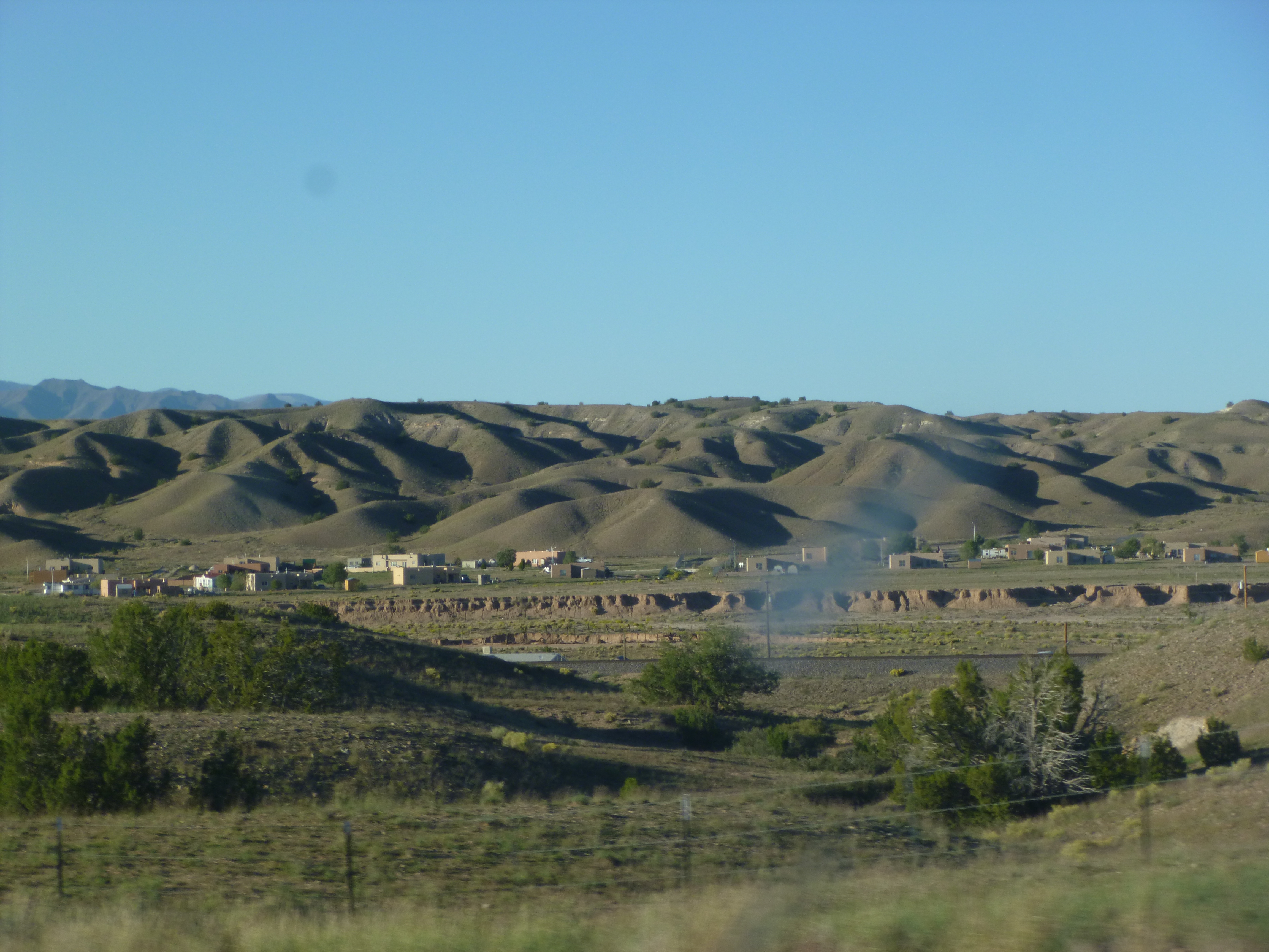 Tula and I walked a little more in Gallup, and then we stopped at a park on the way out of town and walked another mile before heading east. I drove for a while, and came to the town of Grants, where I would have turned off to go visit one of the many national parks (it’s hard to see the signs for them and know they’re not open) but Tula and I just walked a mile and a half in town instead. I was headed for Santa Fe – a pretty long drive from Gallup, but then there wouldn’t be much driving for the next few days. So I spent some more hours driving, and I wanted to stop off in a couple other little towns like San Felipe Pueblo and Santo Domingo Pueblo for some walking, but that didn’t really work out. There were big Welcome signs, but then they added notices that all visitors must check in with the governor’s office (probably closed by that time of day) and no photos were allowed, and I felt like I was trespassing. I had driven into one of the towns before seeing all the signs and there weren’t sidewalks anyway, and I think they’re trying to preserve a traditional way of life. The houses all seemed to be adobe, and there were big outdoor adobe ovens in many yards and that’s about all I noticed before leaving. I read later that one particular tribe only welcomes visitors to 2 special events a year. I’m glad they’re trying to preserve their rich culture.